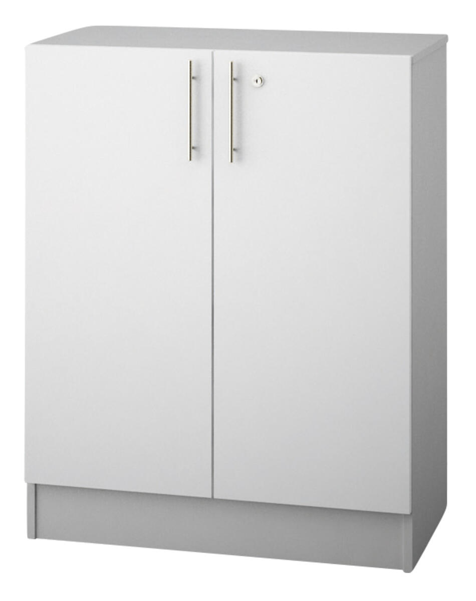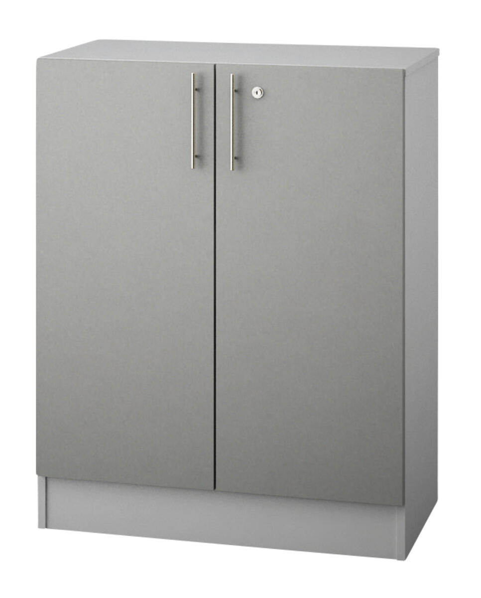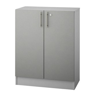 Låsbart (inkl. 2 nycklar). 2 hyllor. Mått: B80xD42xH101 cm. Grå stomme i melamin. Dörrar i högtryckslaminat.