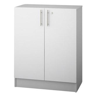 Låsbart (inkl. 2 nycklar). 2 hyllor. Mått: B80xD42xH101 cm. Vit stomme i melamin. Dörrar i högtryckslaminat.