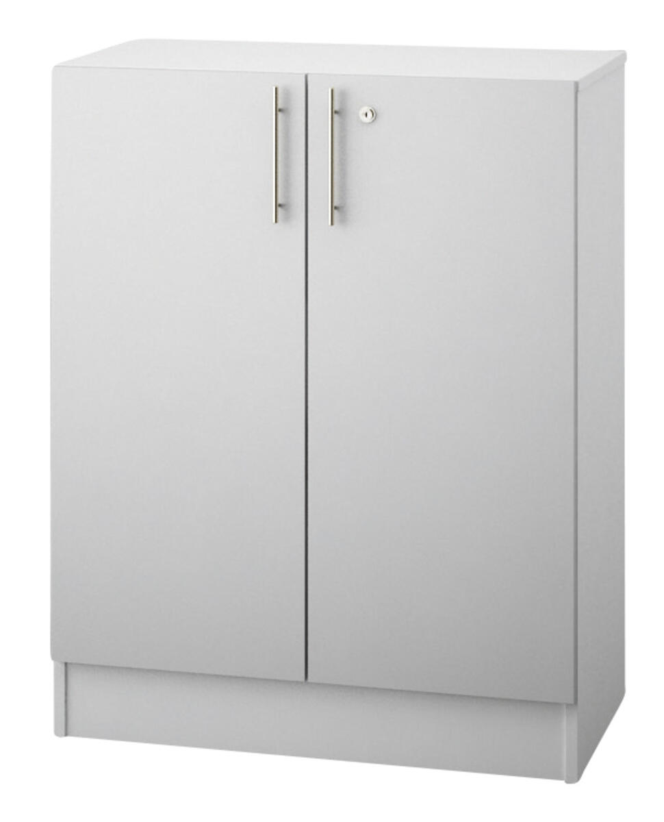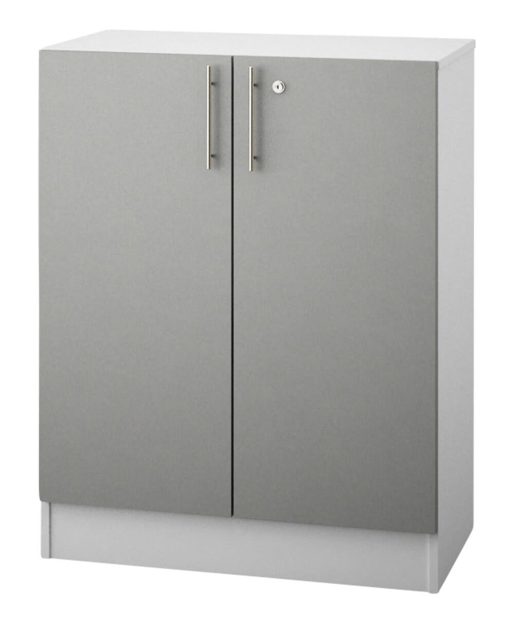 Låsbart (inkl. 2 nycklar). 2 hyllor. Mått: B80xD42xH101 cm. Grå stomme i melamin. Dörrar i högtryckslaminat.