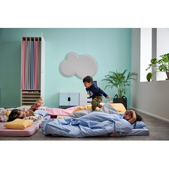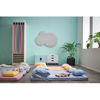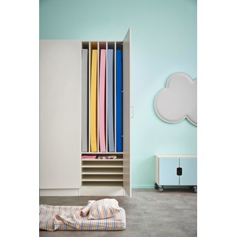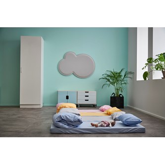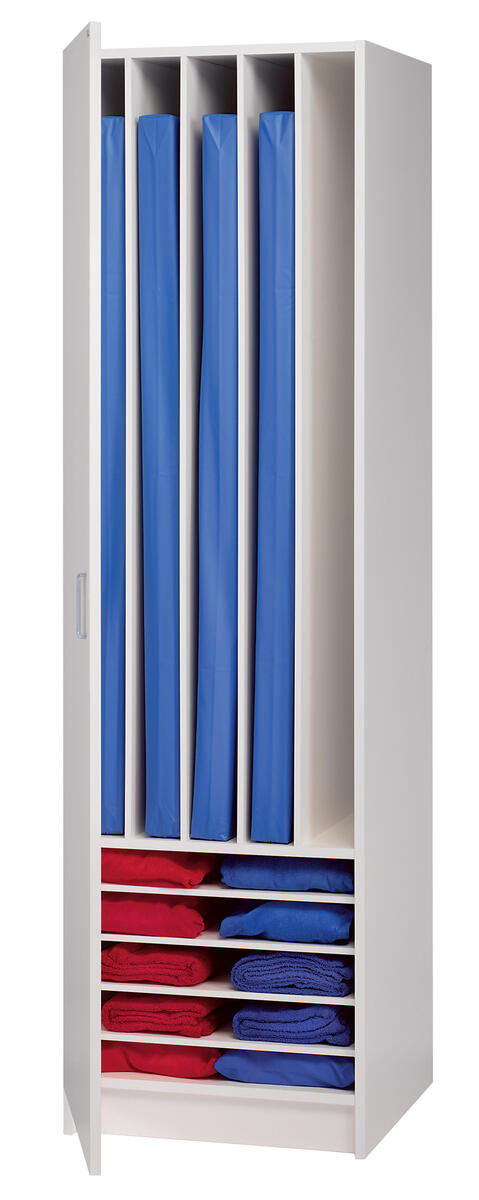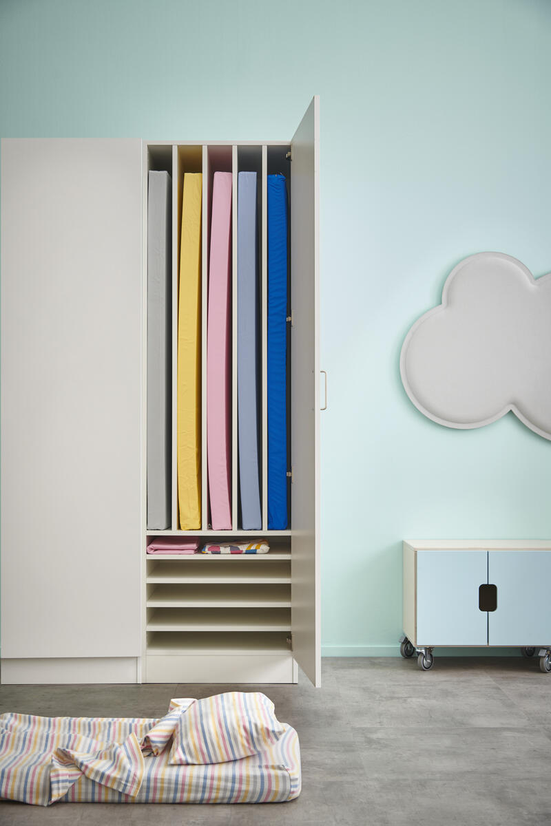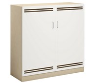 Komplett madrasskåp på sockel med plats för 18 vilmadrasser eller 12 vilsängar. Stomme i direktlaminat, dörrar i högtryckslaminat. Ventilation i ovan- och nederkant på dörrarna. Lättstädat och välventilerat.