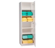 Komplett linneskåp med plats för 18 bäddset. Passar ovanpå madrasskåpet. Stomme i direktlaminat. Dörrar i högtryckslaminat. Ventilation i mitten på dörrarna. Lättstädat och välventilerat.