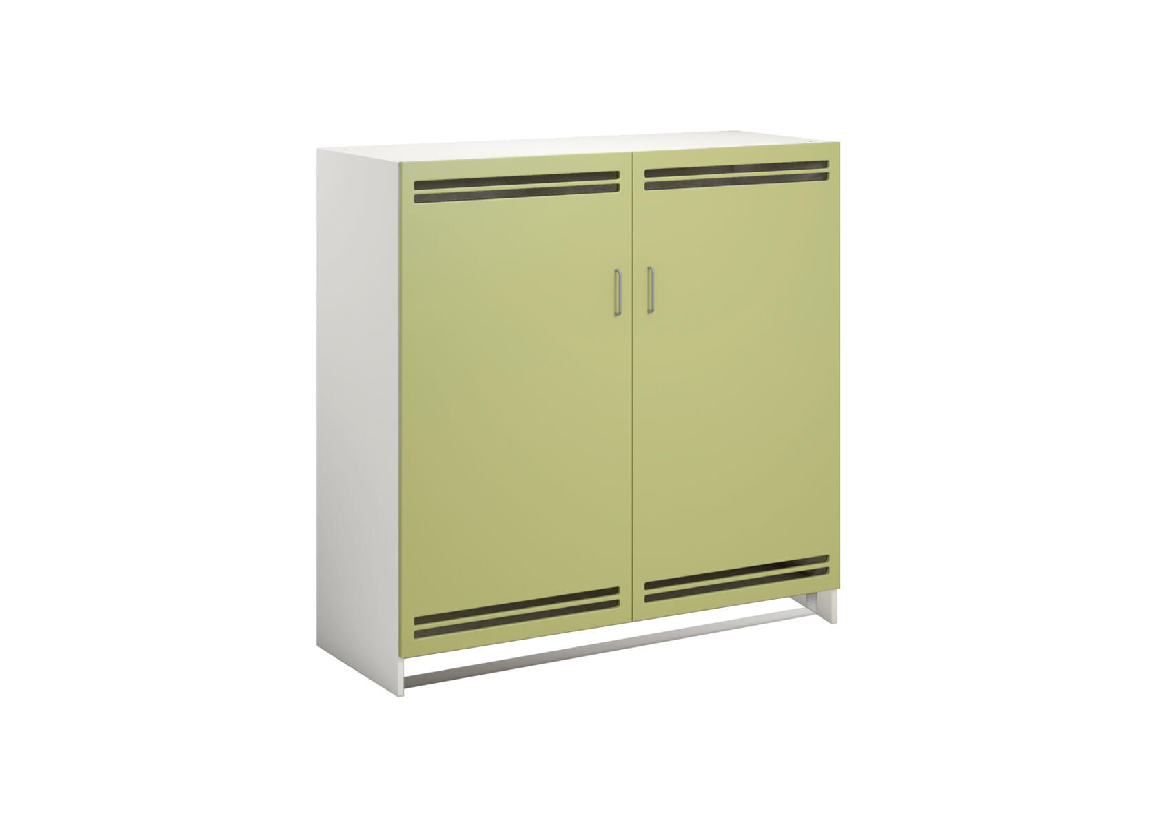 Komplett madrasskåp utan sockel med plats för madrasser och vilsängar. Stomme i direktlaminat, dörrar i högtryckslaminat. Ventilation i ovan- och nederkant på dörrarna. Lättstädat och välventilerat.