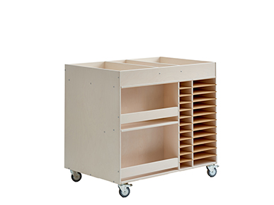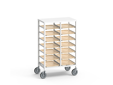 Dessa vagnar är utrustade med lösa brickor och är perfekta för olika miljöer. Vagnarna underlättar servering och transport av mat i matsalen. De är utmärkta för att förflytta och förvara pågående projekt, som tex målningar och pärlplattsarbeten. Brickorna kan även användas för att presentera förberedda aktiviteter, vilket gör det enkelt för barnet eller eleven att hämta och använda dem självständigt.