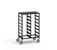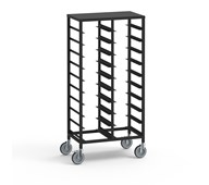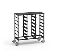 Förvaringsvagn med plats för 14 brickor eller backar. Välj mellan att köpa endast vagn, vagn med backar eller vagn med brickor. Förvaringsvagn i metall med hjul, varav två är låsbara. Montering av hjul, gärna med låsbara på varsin kortsida.