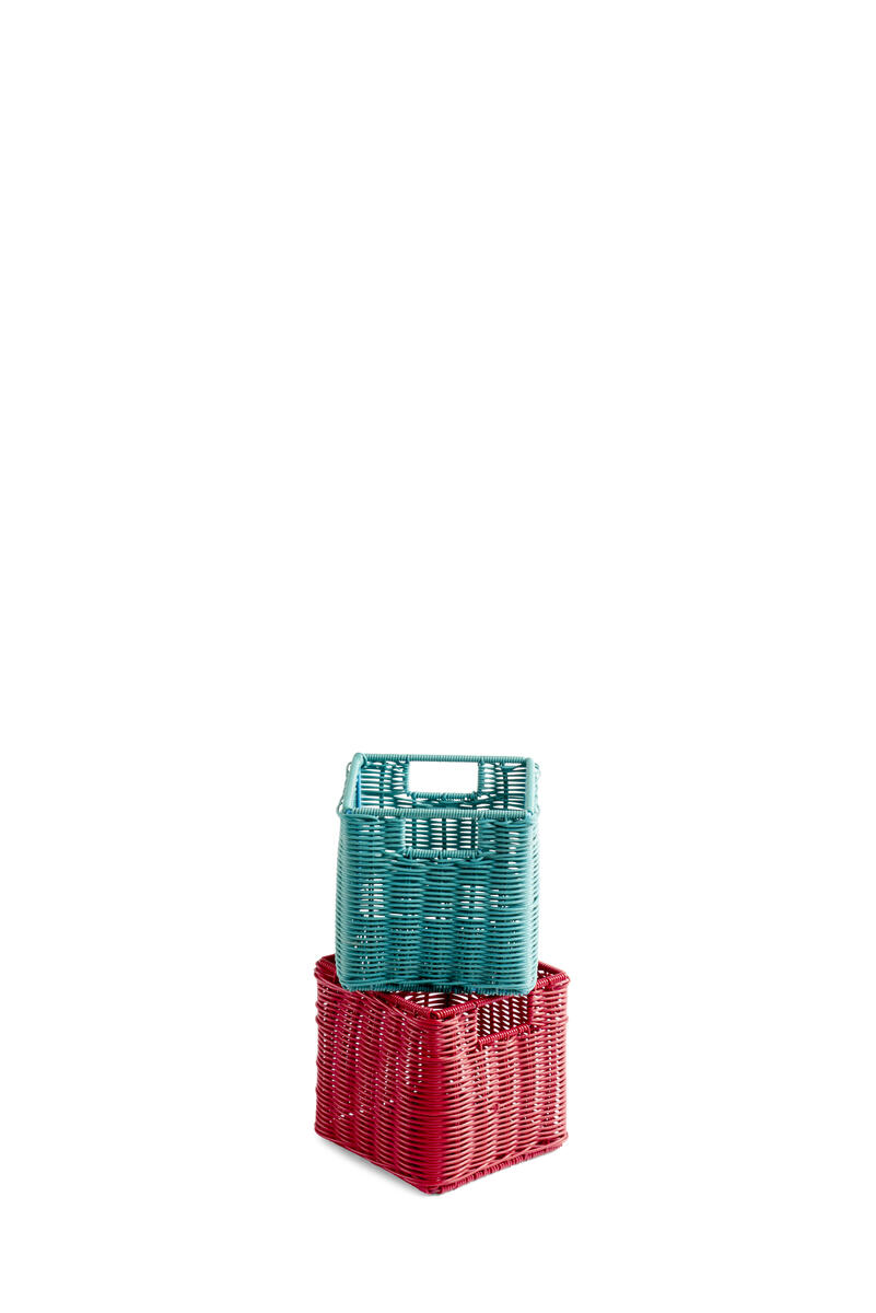 Vävd korg i plastrotting. Måtten är anpassade till Fixa men kan med fördel användas till alla övriga förvaringssystem och hyllor. Torka med fuktig trasa eller spola av.