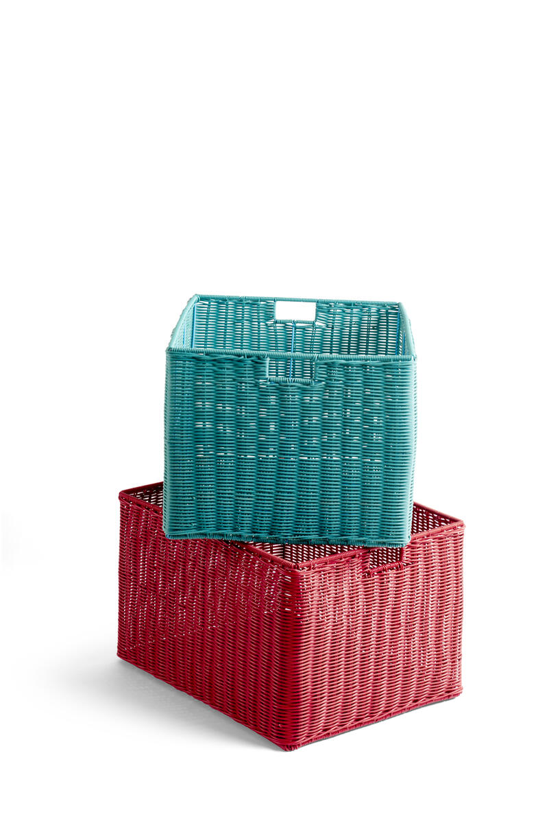 Vävd korg i plastrotting. Måtten anpassade till Fixa men kan med fördel användas till alla övriga förvaringssystem och hyllor. Torka med fuktig trasa eller spola av.