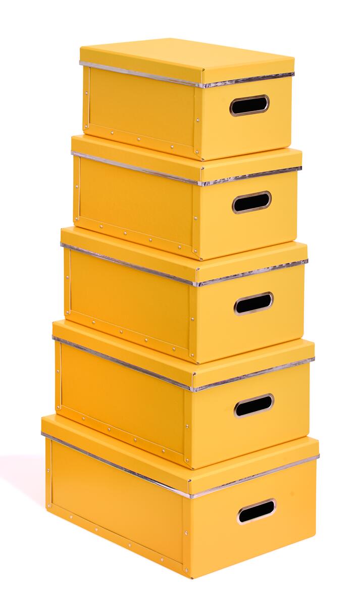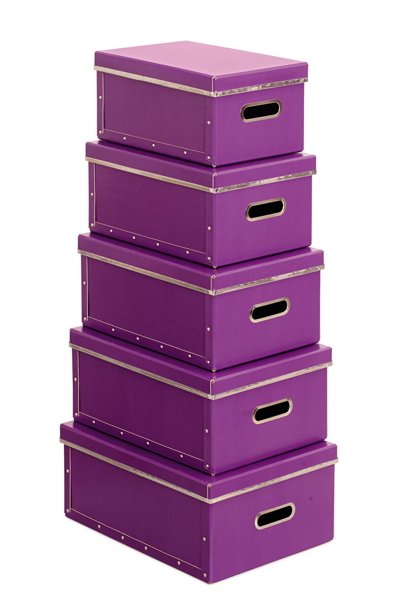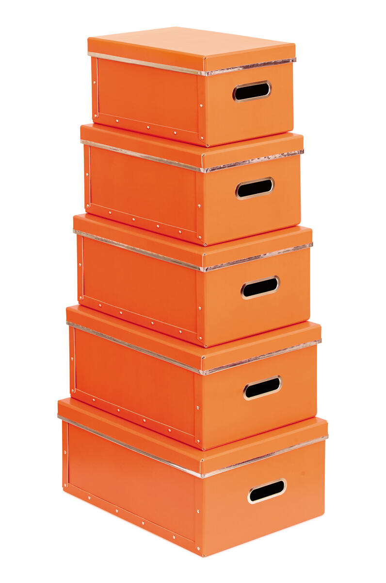 Förvaringslådor i återvunnen FSC-märkt papp i 5 storlekar. Passar bra i alla våra förvaringssytem. Mått (LxBxH): 28,7x39,6x17 cm, 26,6x37,6x16,6 cm, 24,5x35,3x16 cm, 22,5x33,4x15,2 cm, 20,4x31,6x14,9 cm.