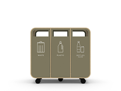 Återvinningskärl i lackad metall. Vitt lock med öppning i folierad MDF och grått screentryck. Finns flera olika öppningar och symboler att välja mellan. Passar också att göra sin egen kombination med flera tunnor.