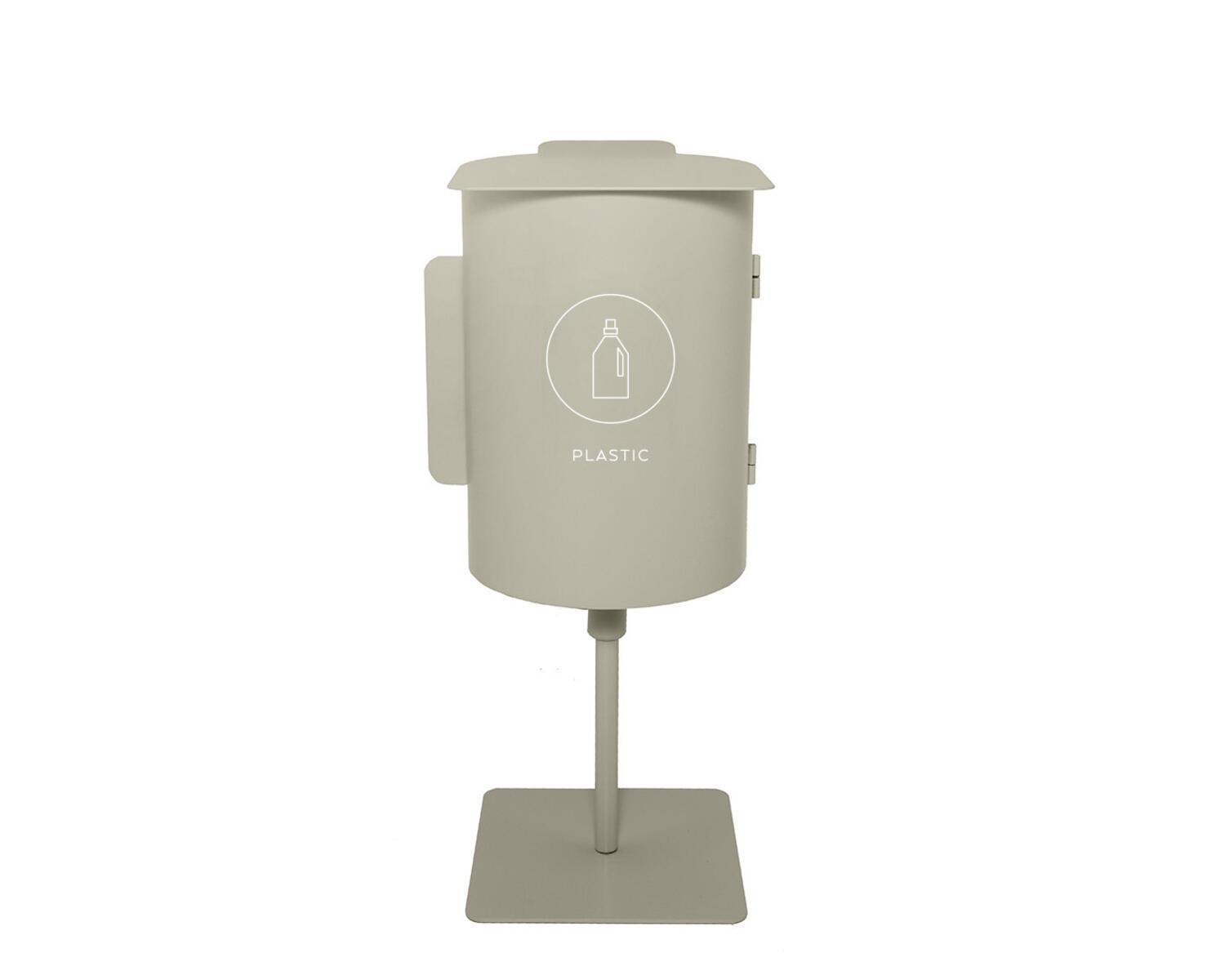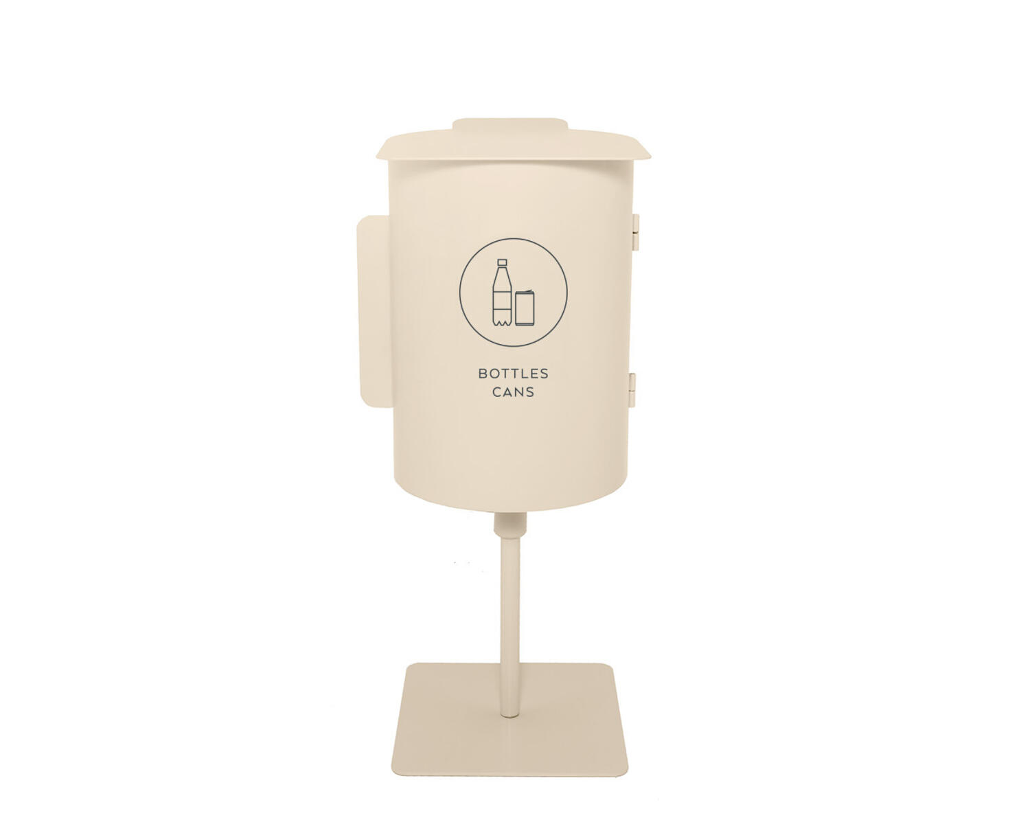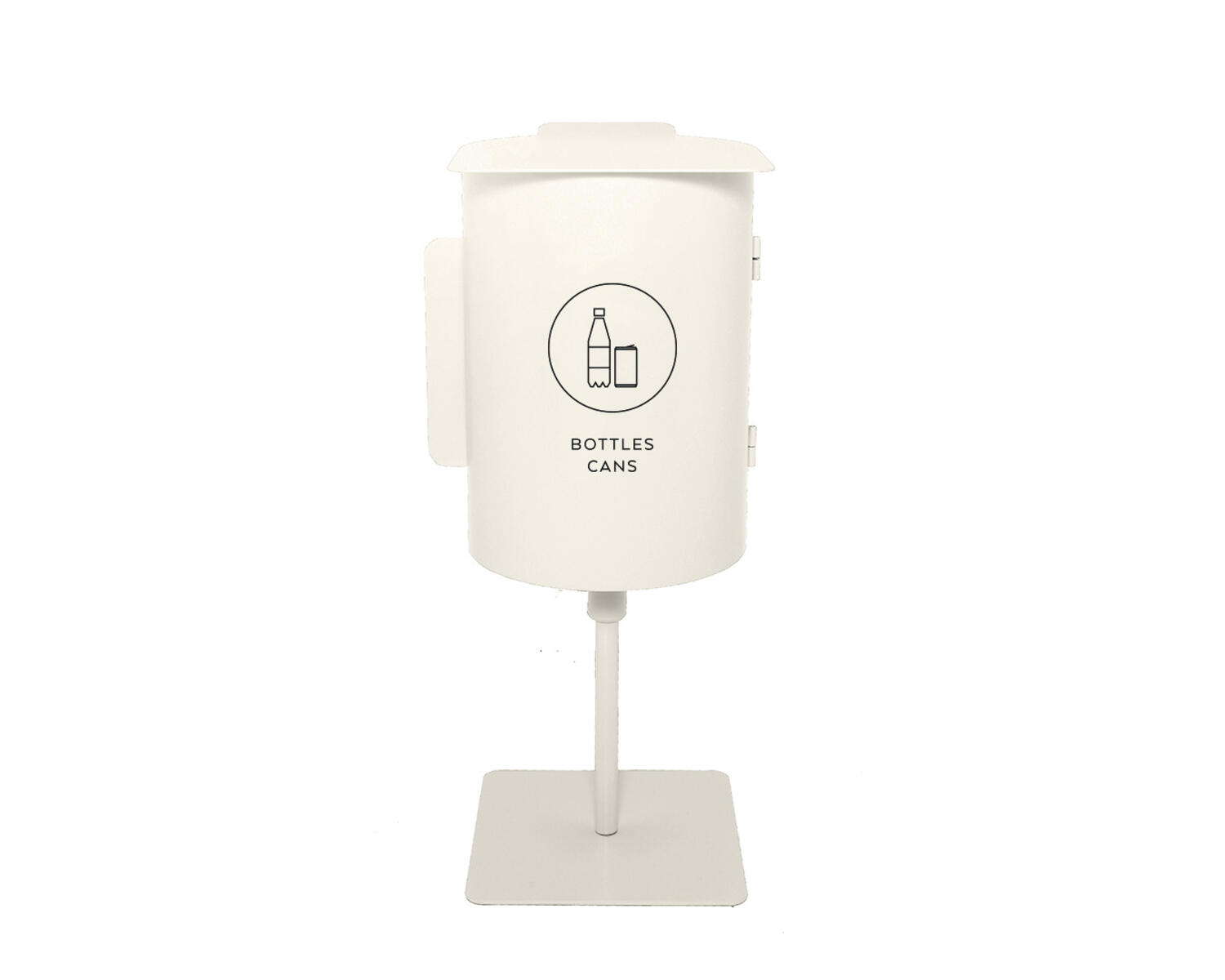 Återvinningskärl i lackad metall. Vitt lock med öppning i folierad MDF och grått screentryck. Finns flera olika öppningar och symboler att välja mellan. Passar också att göra sin egen kombination med flera tunnor.
