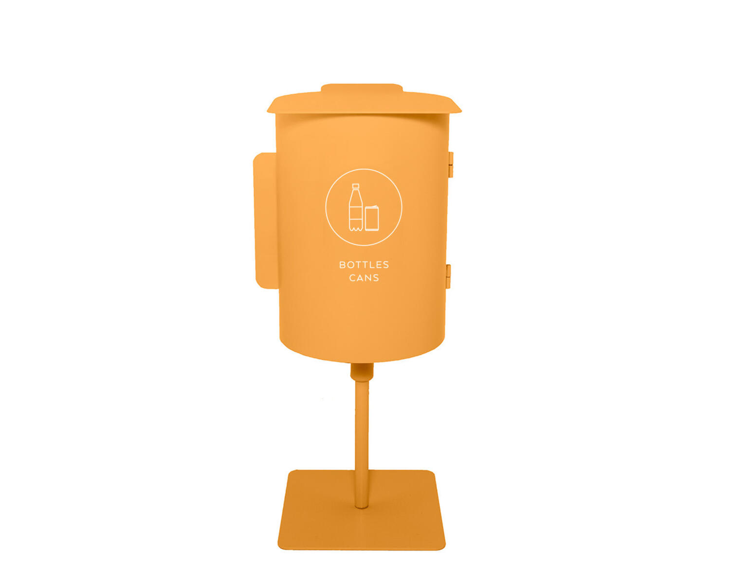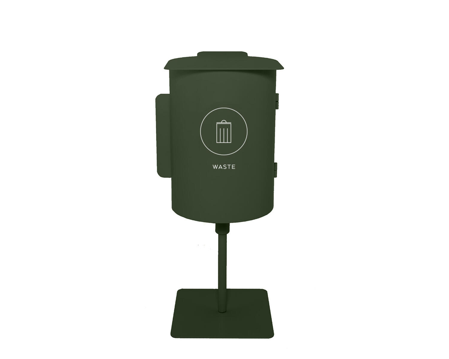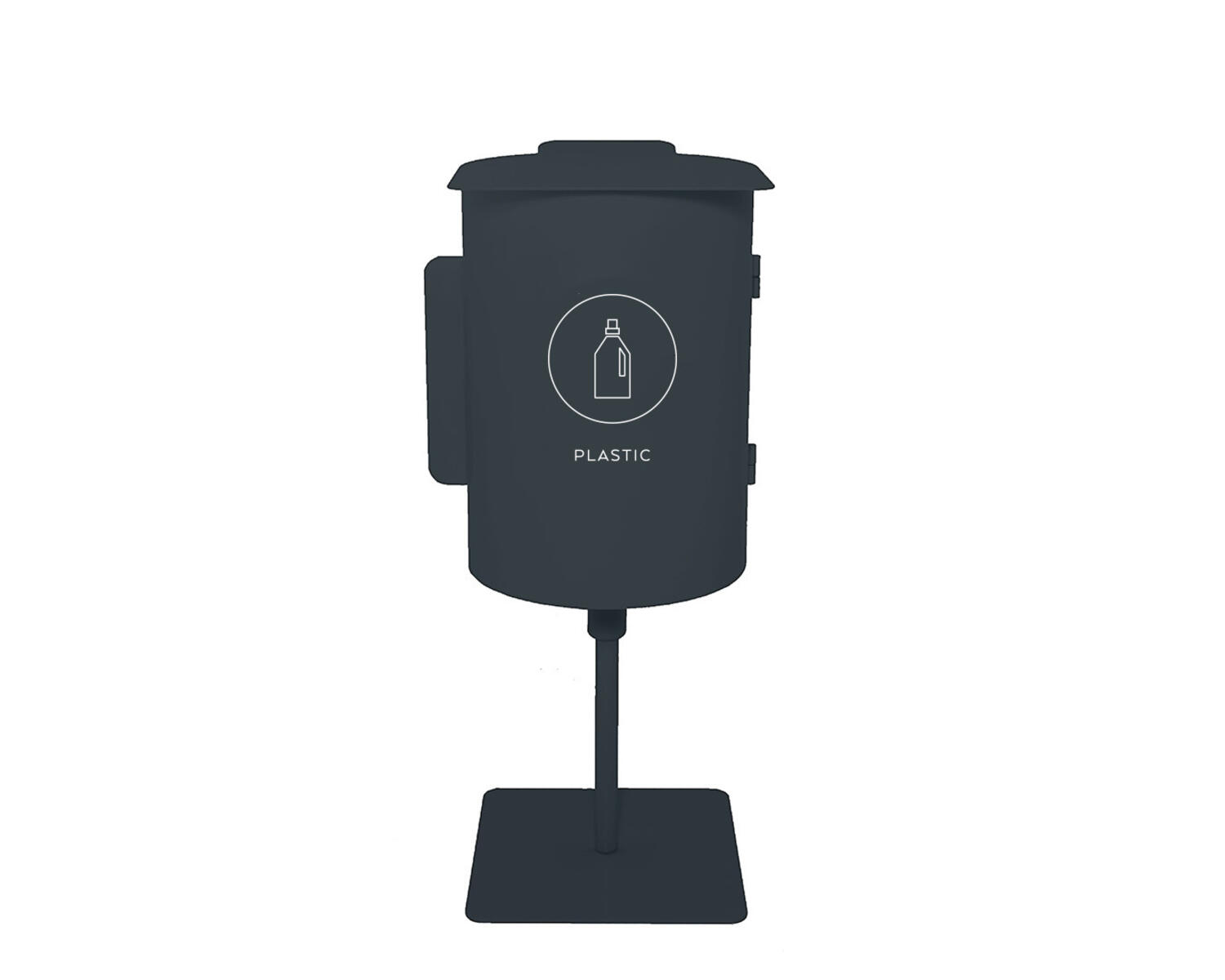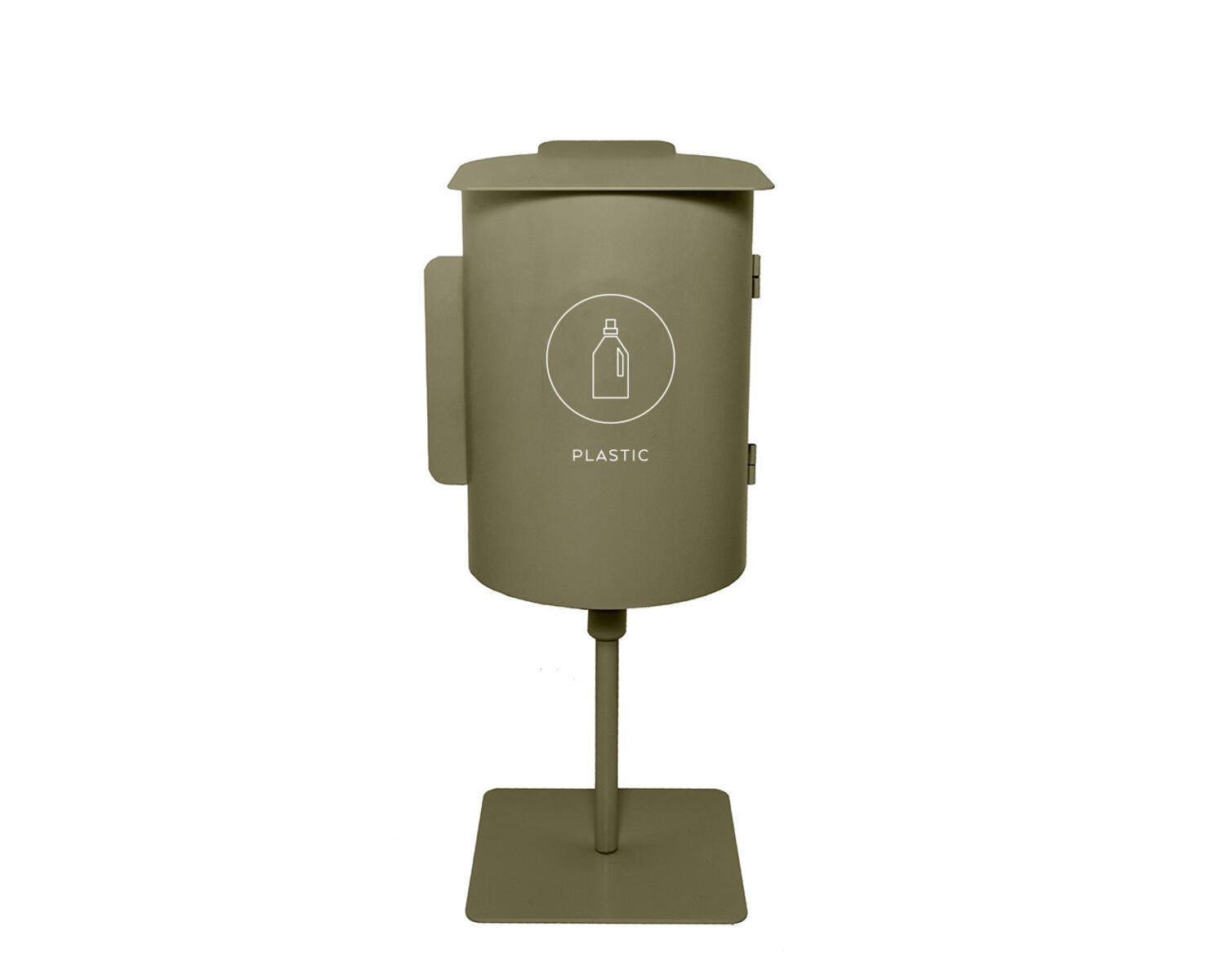 Återvinningskärl i lackad metall. Vitt lock med öppning i folierad MDF och grått screentryck. Finns flera olika öppningar och symboler att välja mellan. Passar också att göra sin egen kombination med flera tunnor.