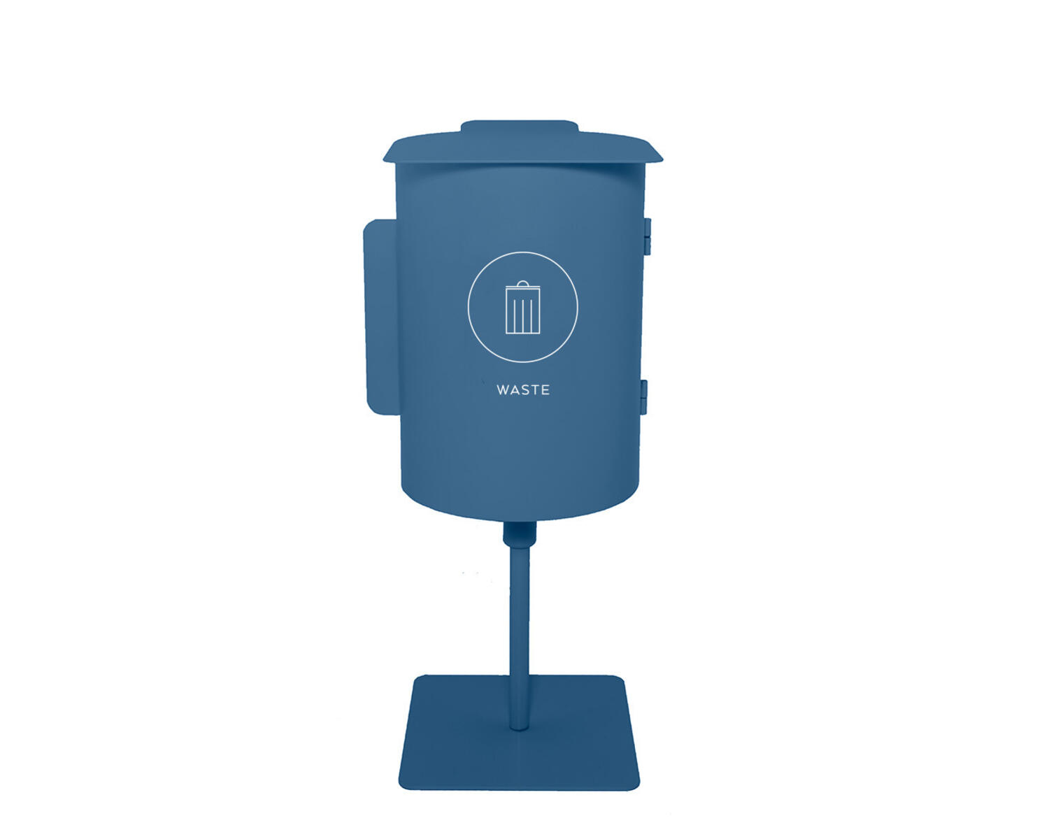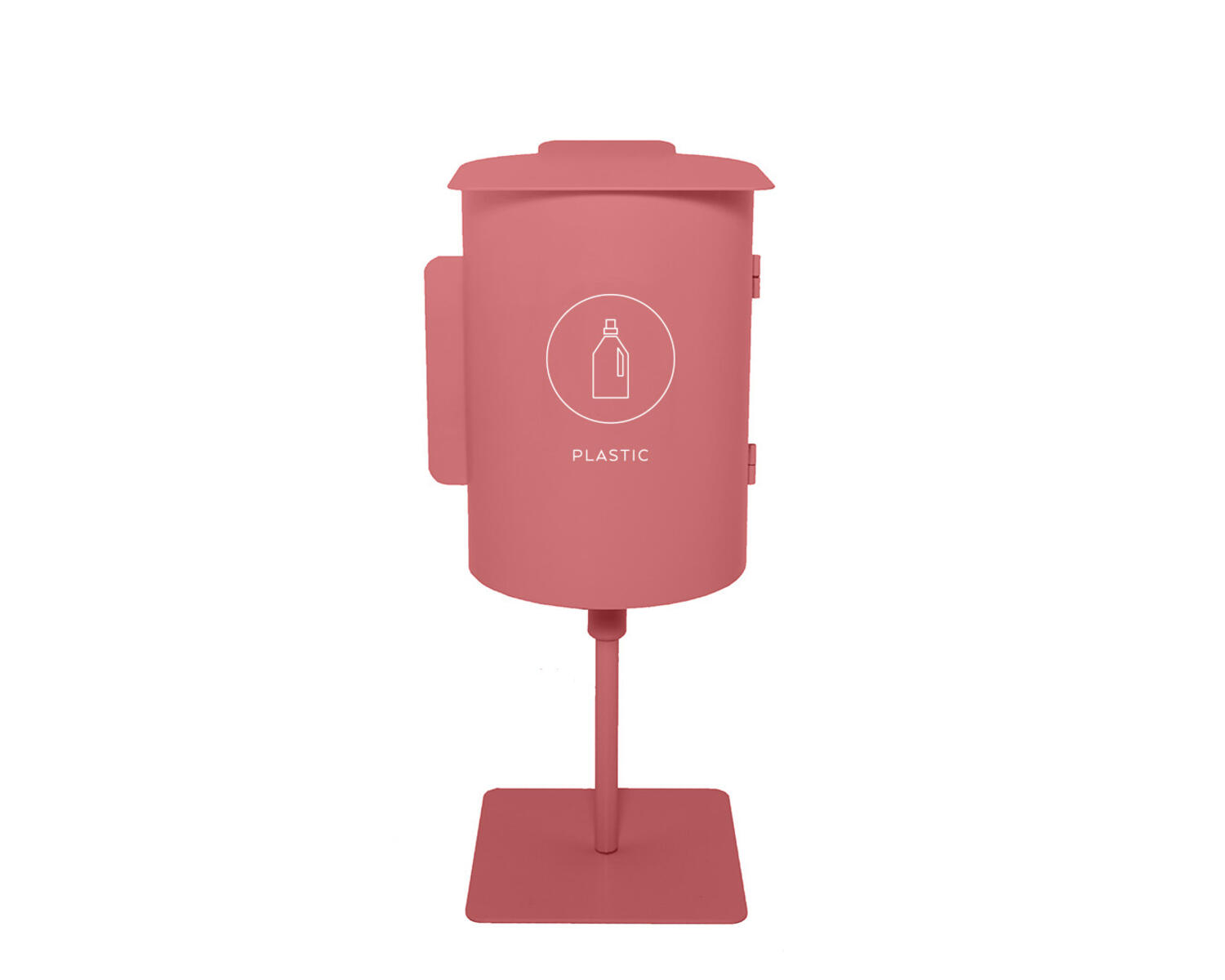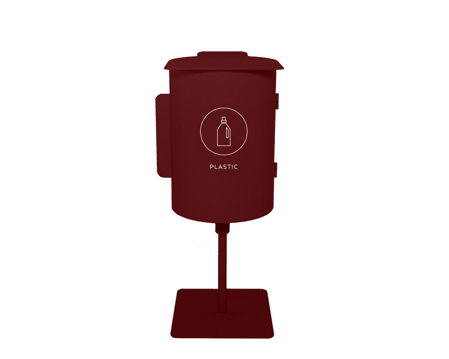 Mobil källsortering i klarlackad MDF med fem hjul varav två låsbara. Soft close med magnet i varje dörr. Säckhållare och gummimatta ingår. Välj färg på dörrar. Dörr i metall (3 mm tjocklek). Symboler waste, plastic och bottles cans. Passande sopsäckar 85-125 liter.
