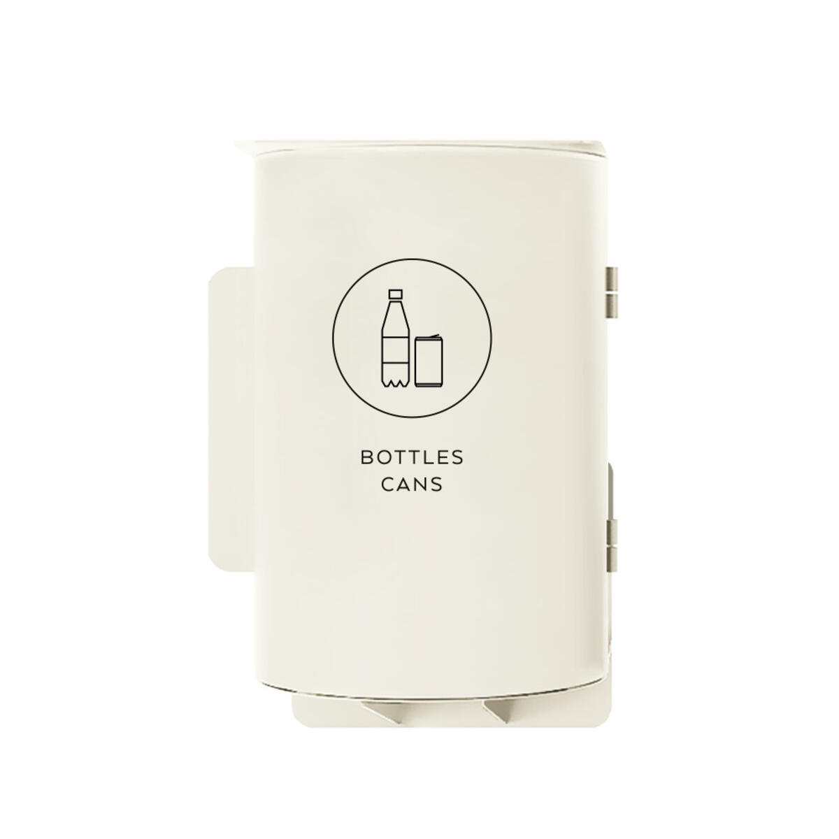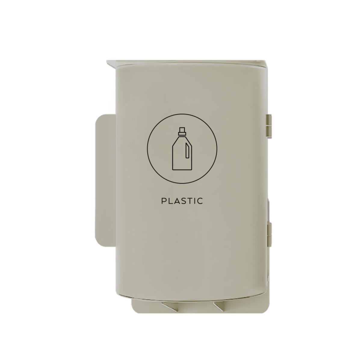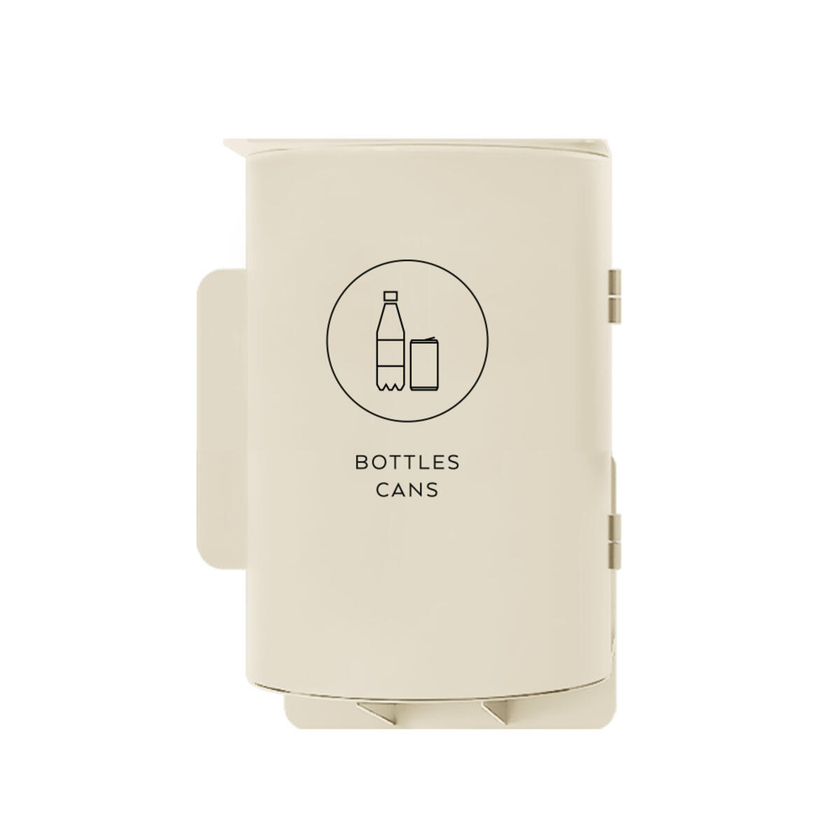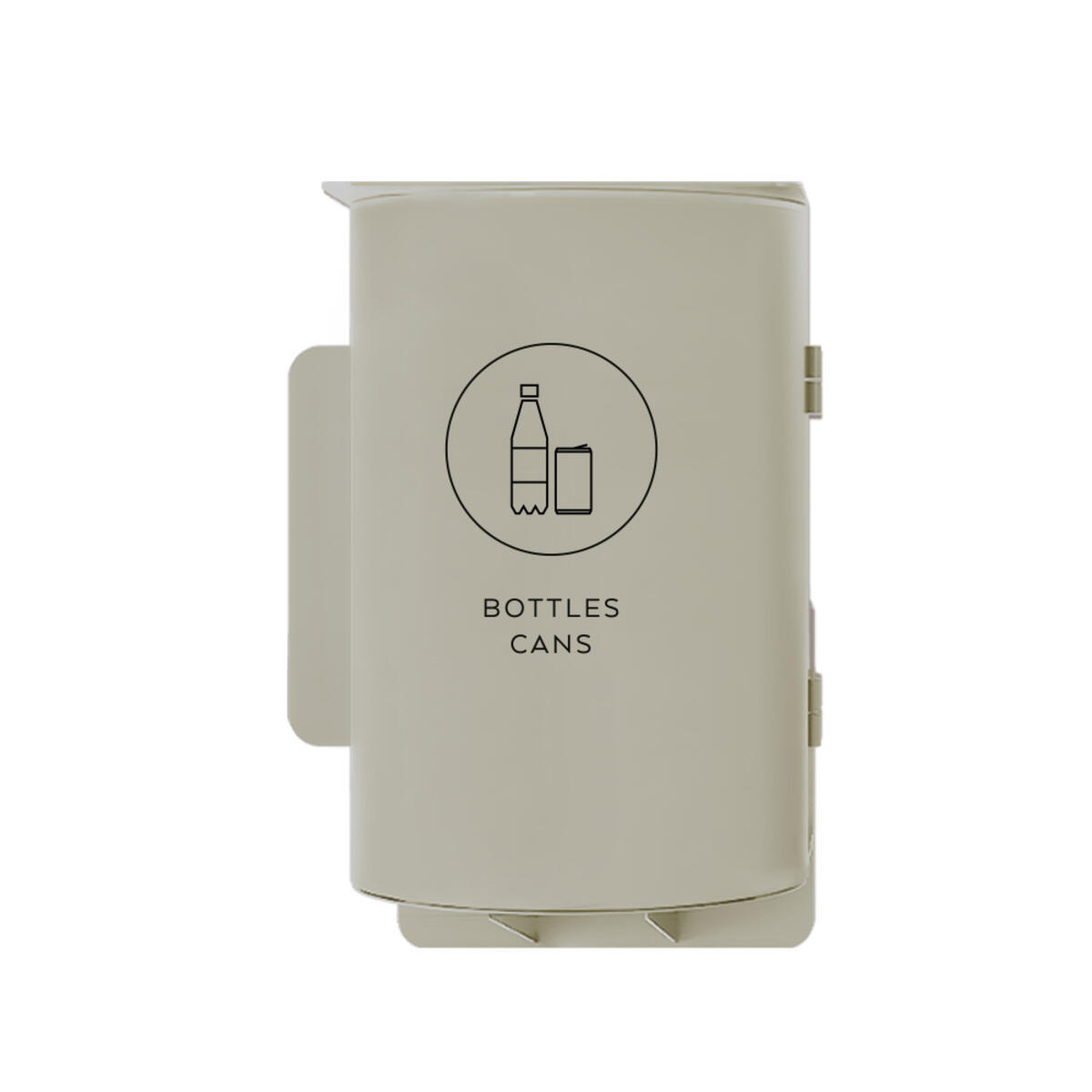 Mobil källsortering i klarlackad MDF med fem hjul varav två låsbara. Soft close med magnet i varje dörr. Säckhållare och gummimatta ingår. Välj färg på dörrar. Dörr i metall (3 mm tjocklek). Symboler waste, plastic och bottles cans. Passande sopsäckar 85-125 liter.