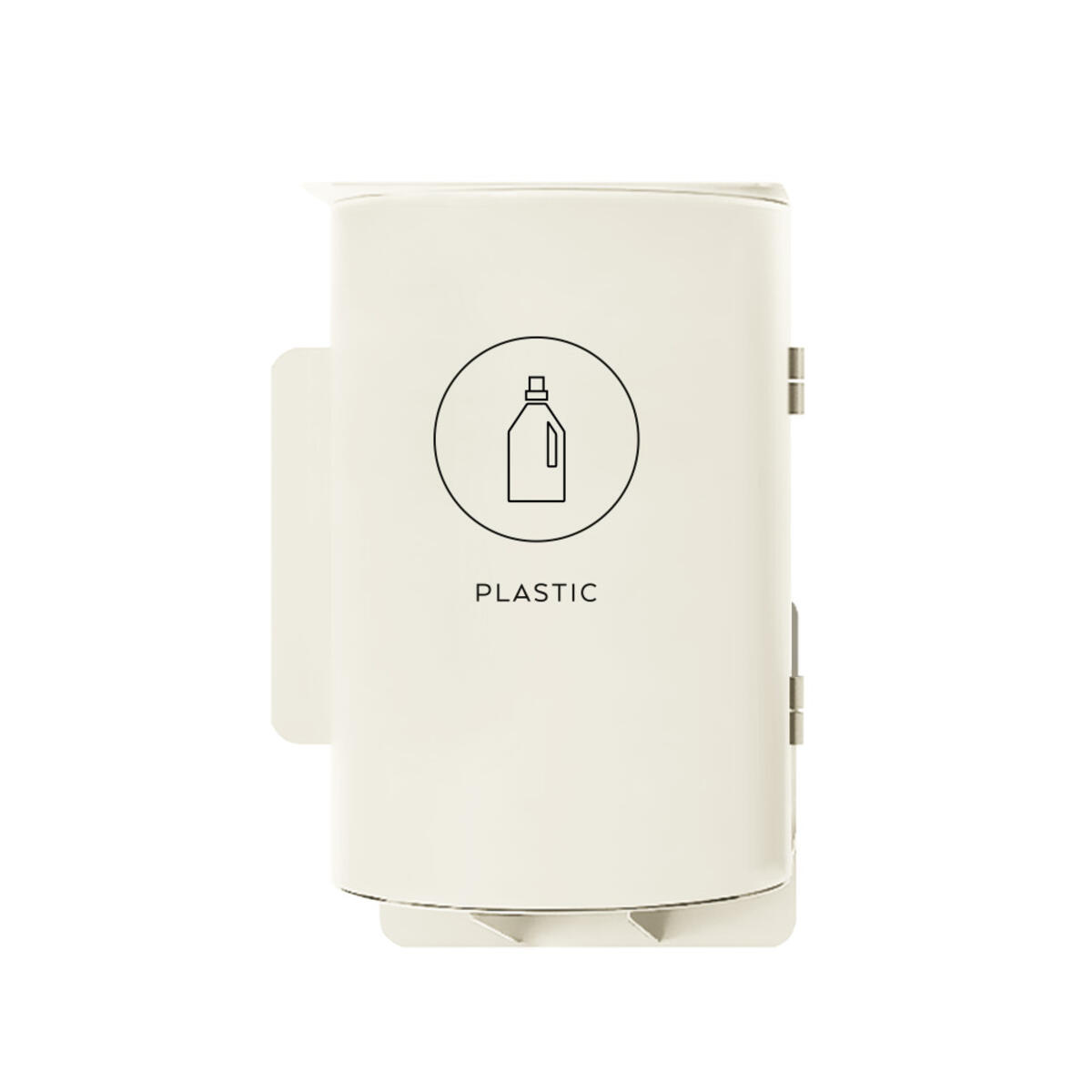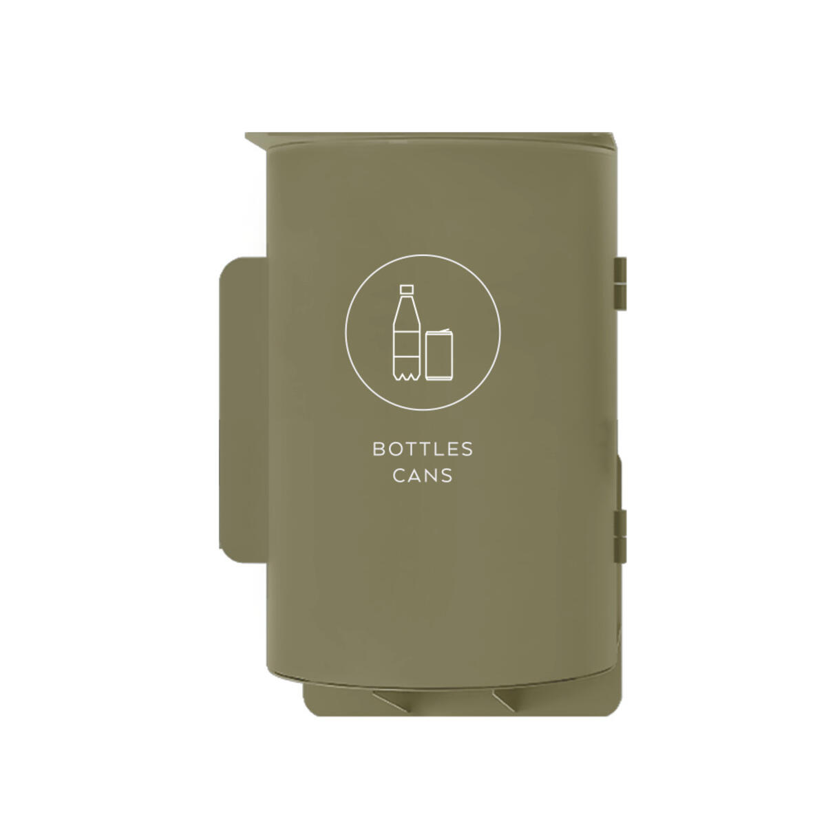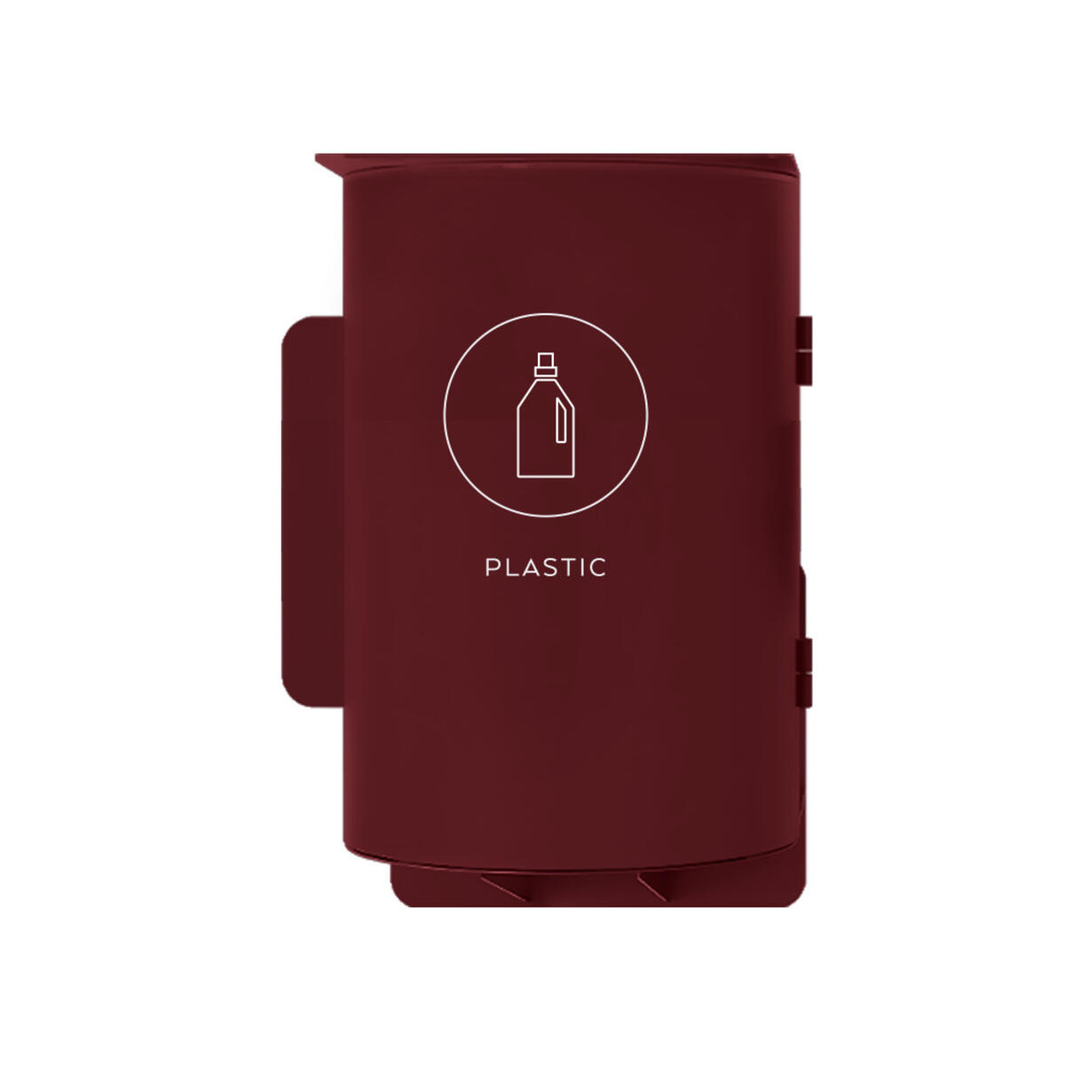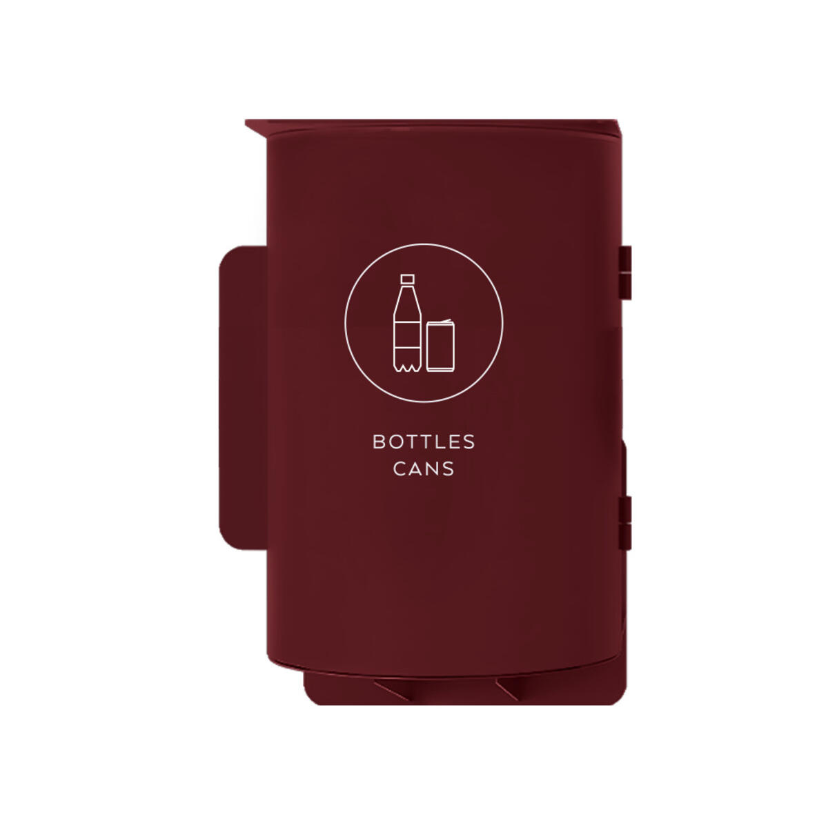 Mobil källsortering i klarlackad MDF med fem hjul varav två låsbara. Soft close med magnet i varje dörr. Säckhållare och gummimatta ingår. Välj färg på dörrar. Dörr i metall (3 mm tjocklek). Symboler waste, plastic och bottles cans. Passande sopsäckar 85-125 liter.