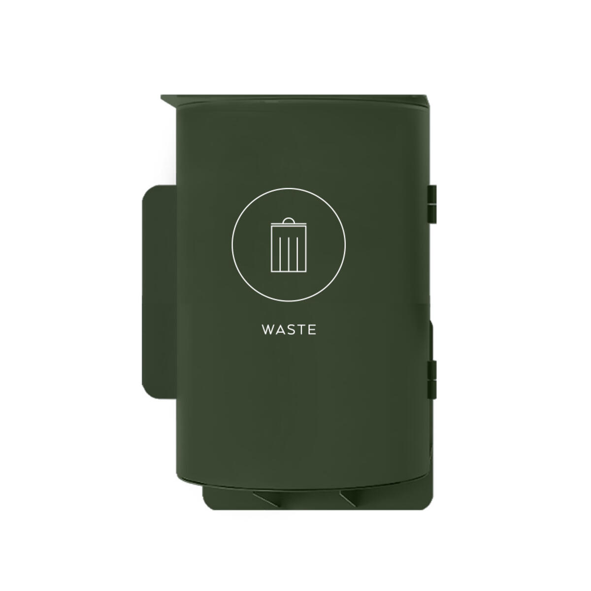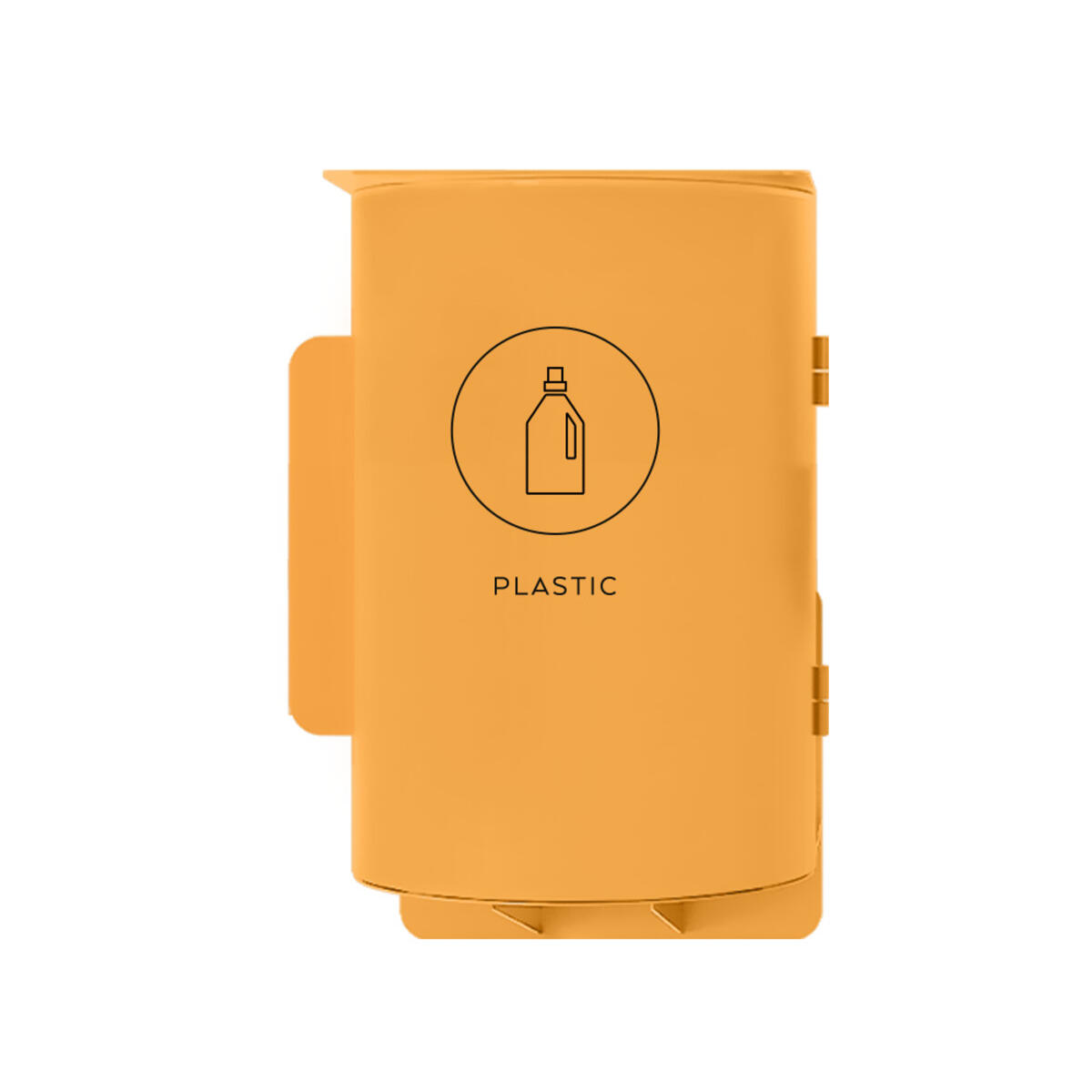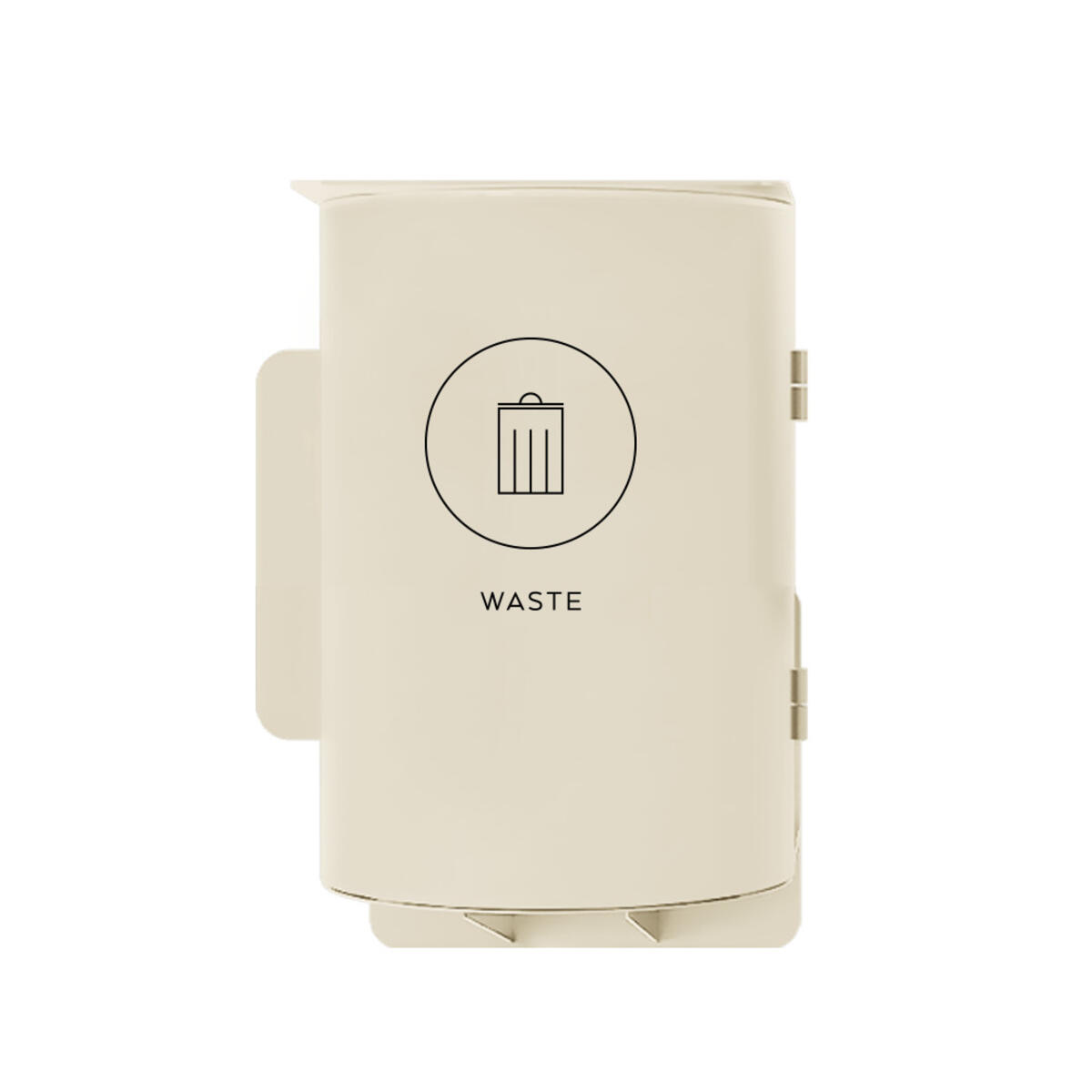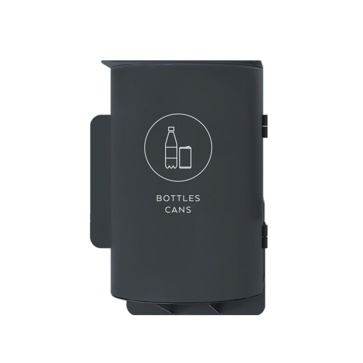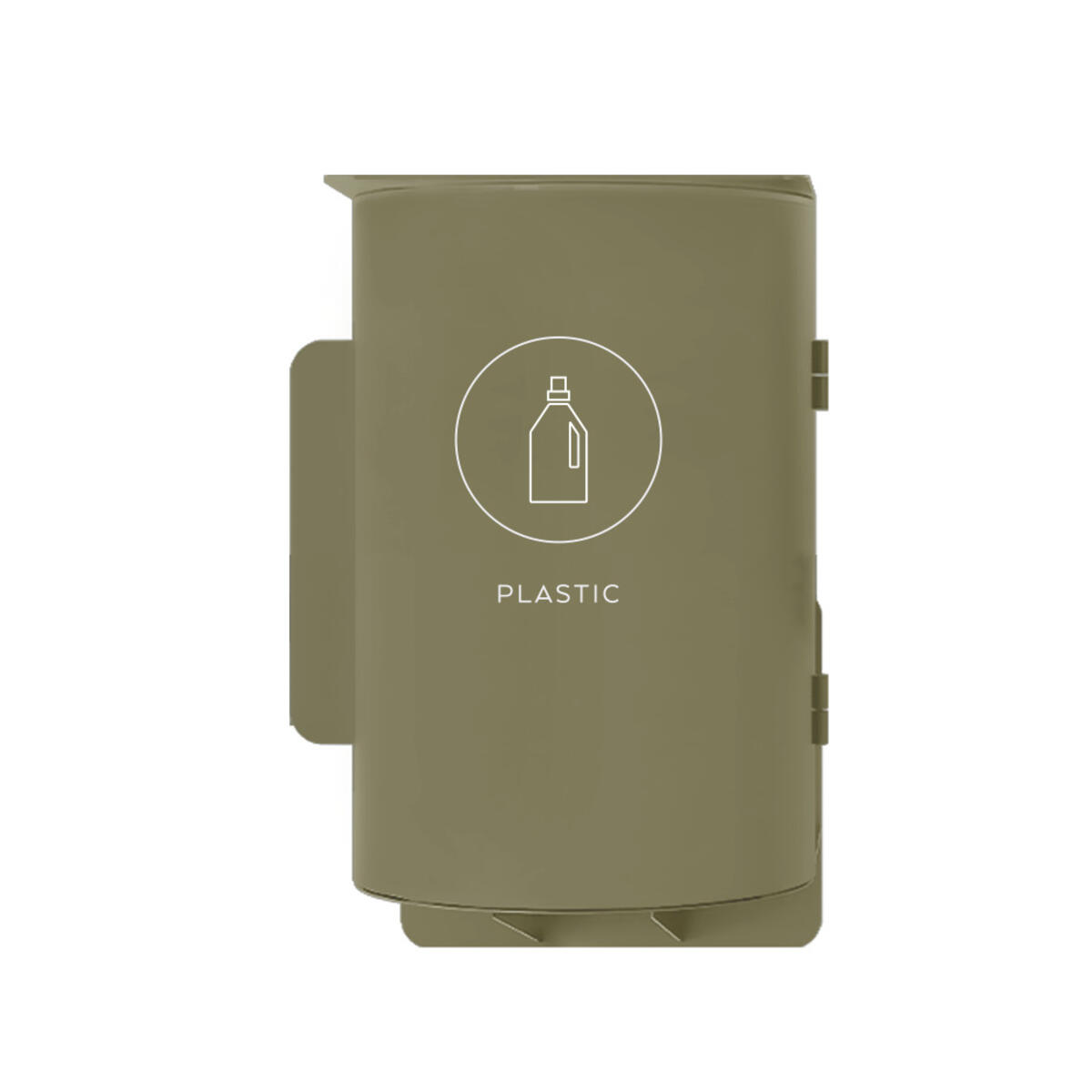 Mobil källsortering i klarlackad MDF med fem hjul varav två låsbara. Soft close med magnet i varje dörr. Säckhållare och gummimatta ingår. Välj färg på dörrar. Dörr i metall (3 mm tjocklek). Symboler waste, plastic och bottles cans. Passande sopsäckar 85-125 liter.
