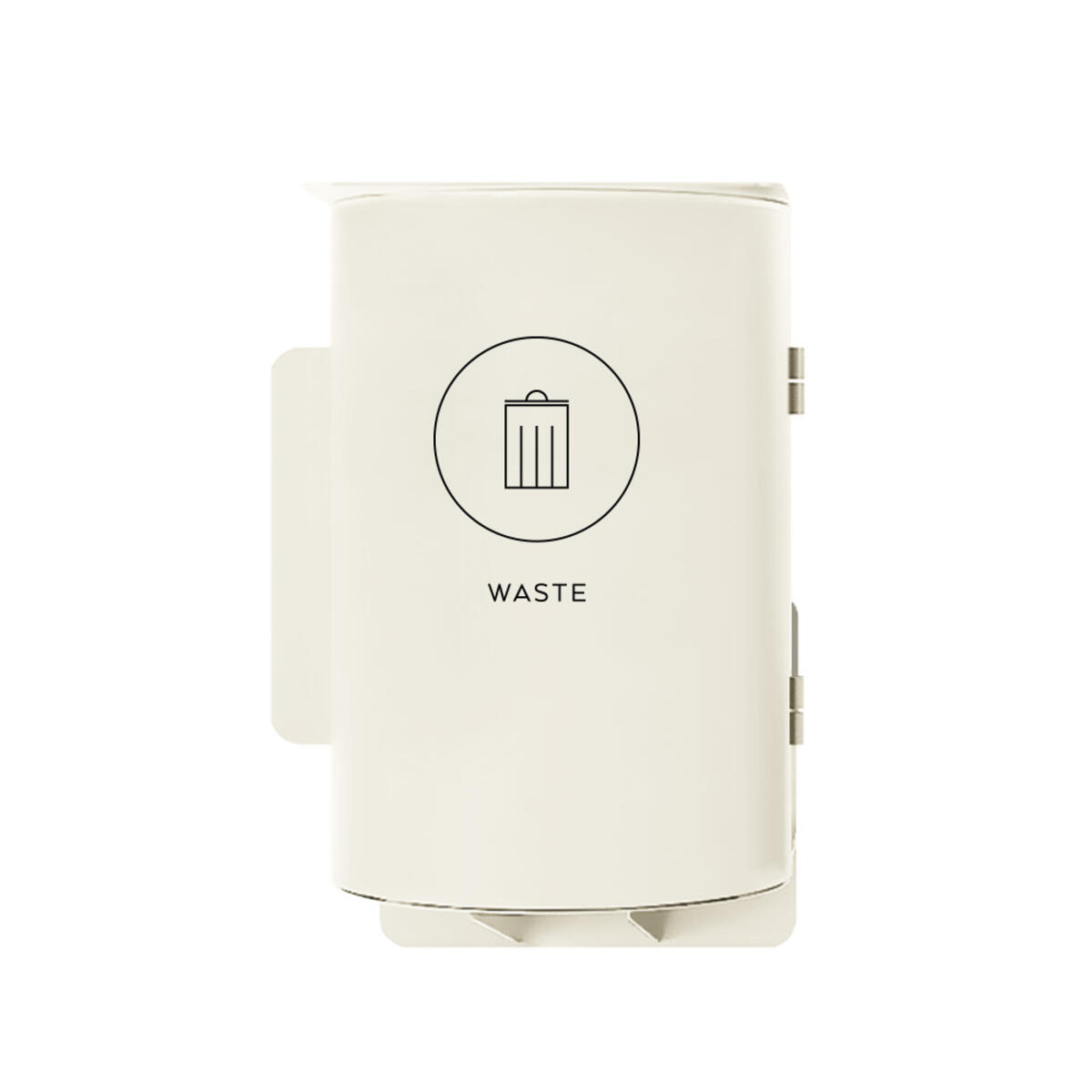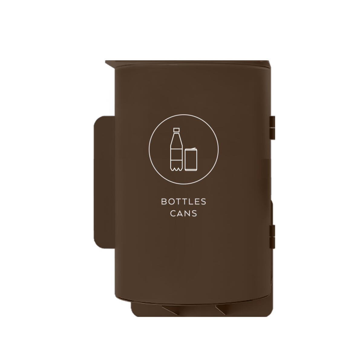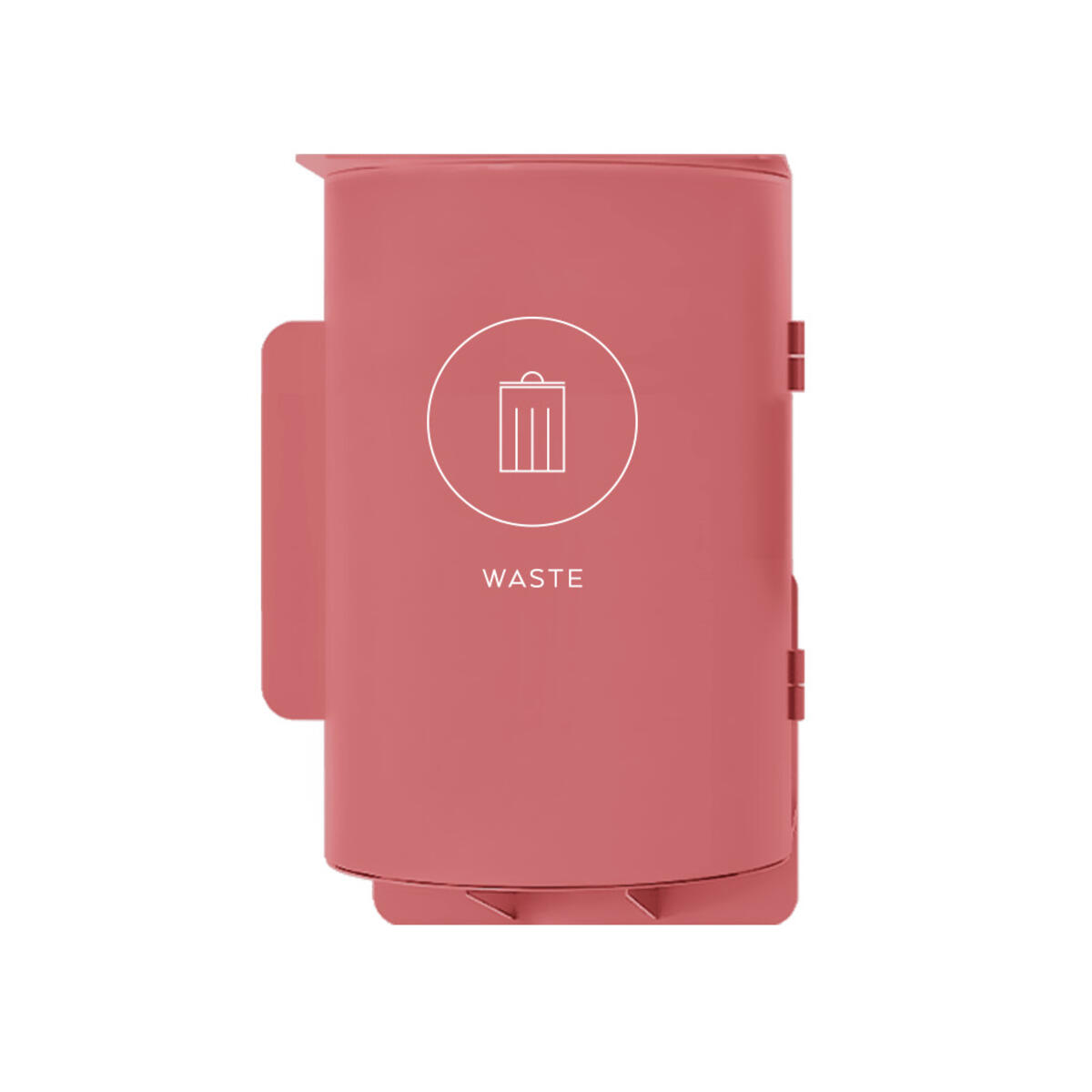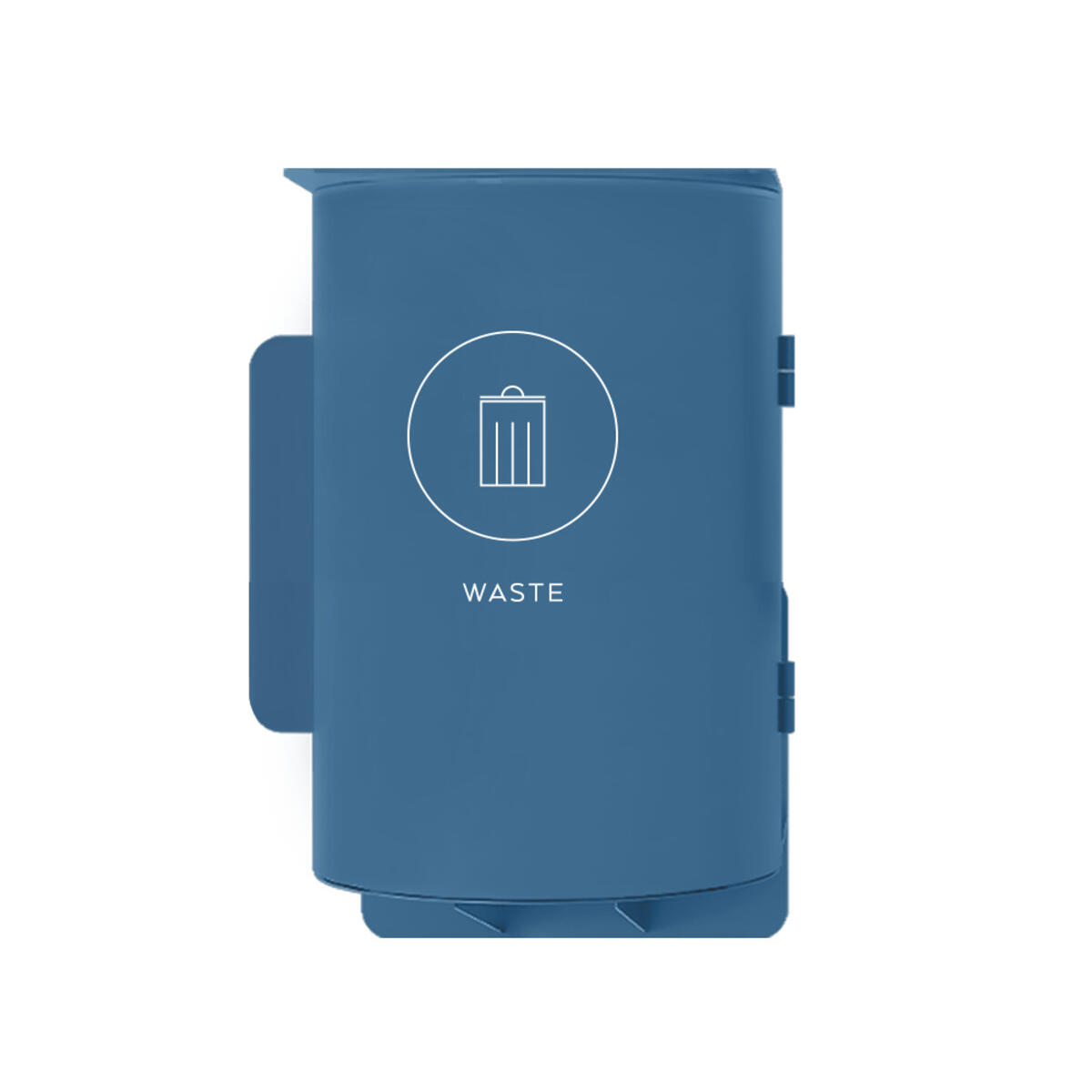 Mobil källsortering i klarlackad MDF med fem hjul varav två låsbara. Soft close med magnet i varje dörr. Säckhållare och gummimatta ingår. Välj färg på dörrar. Dörr i metall (3 mm tjocklek). Symboler waste, plastic och bottles cans. Passande sopsäckar 85-125 liter.