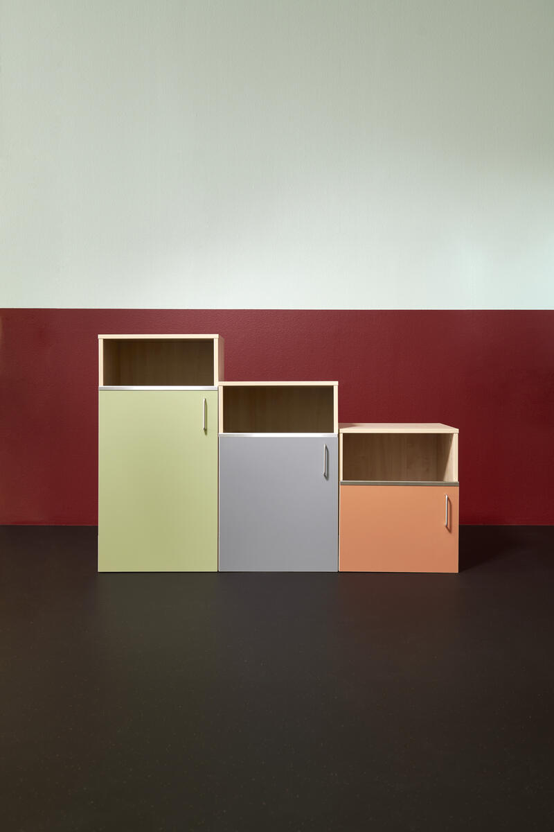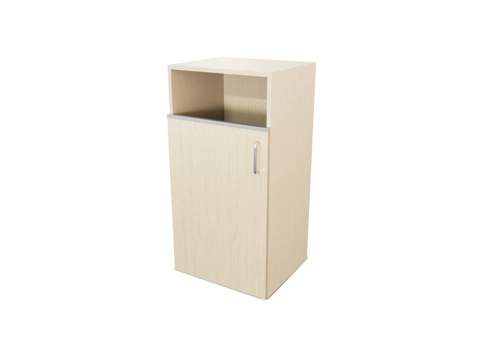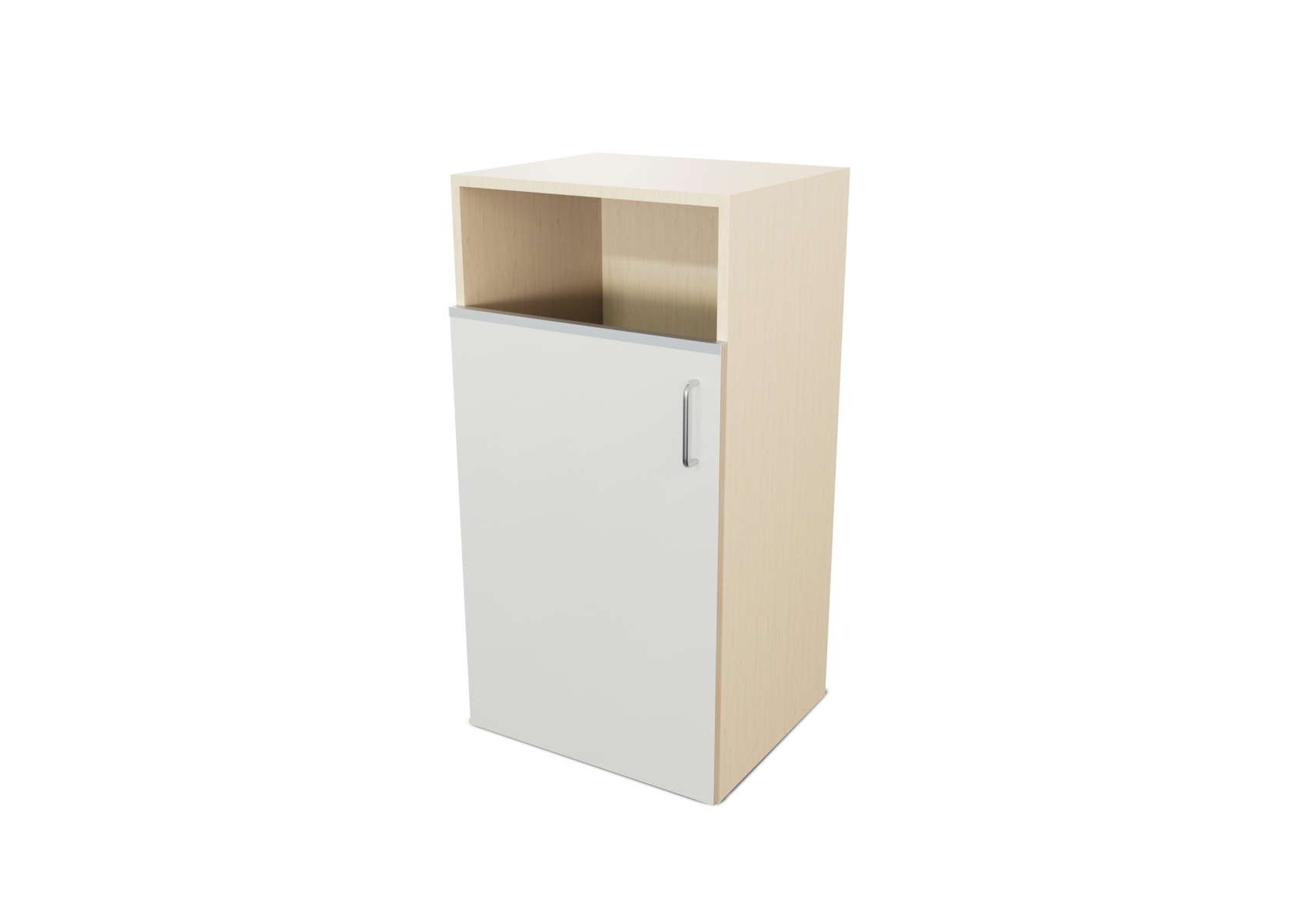 Miljöstation i laminat med dörr och handtag. Topplatta på stomme med hål i för avfall. Hålet har ø 20 cm. Välj mellan laminat och högtryckslaminat på dörr.