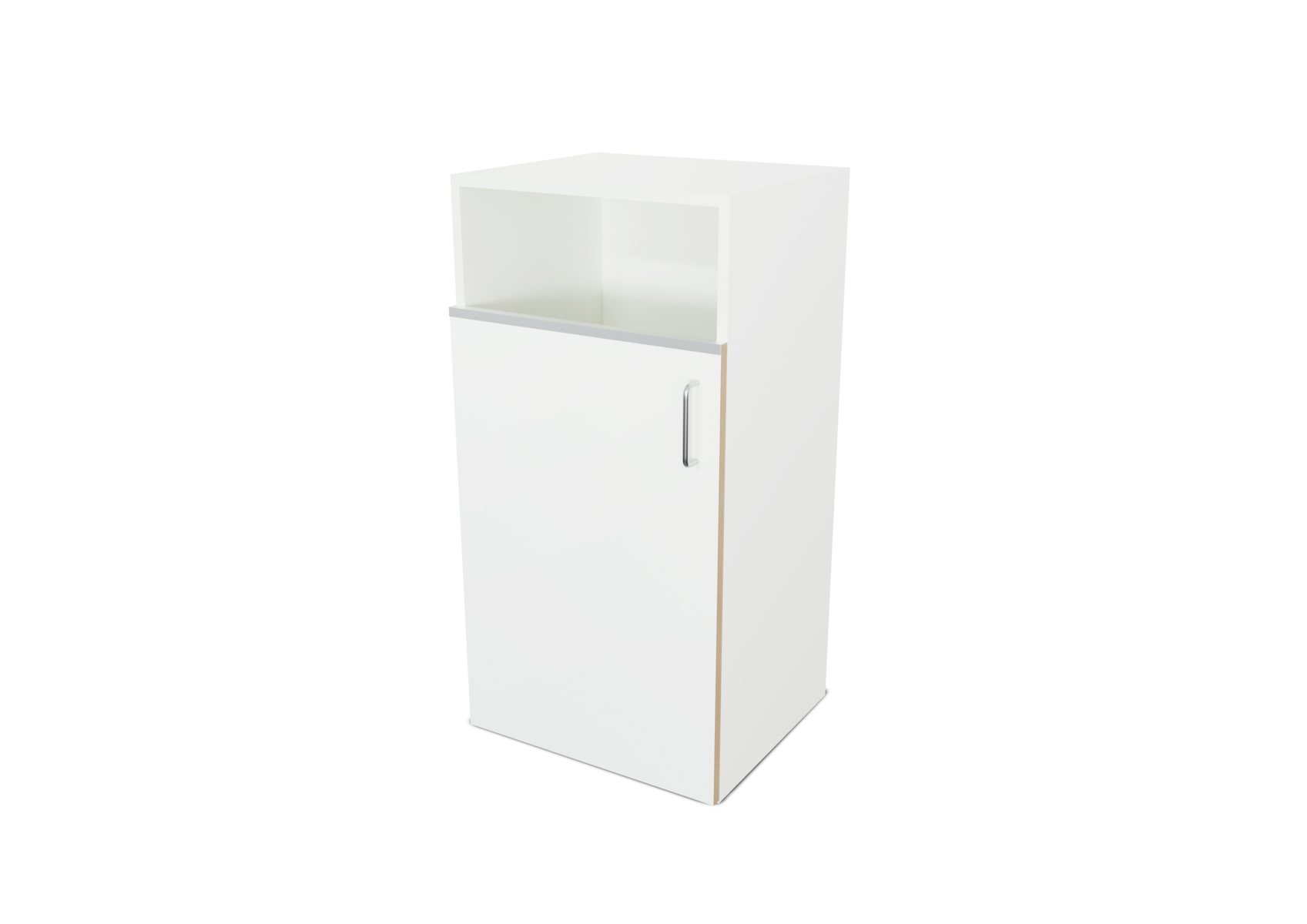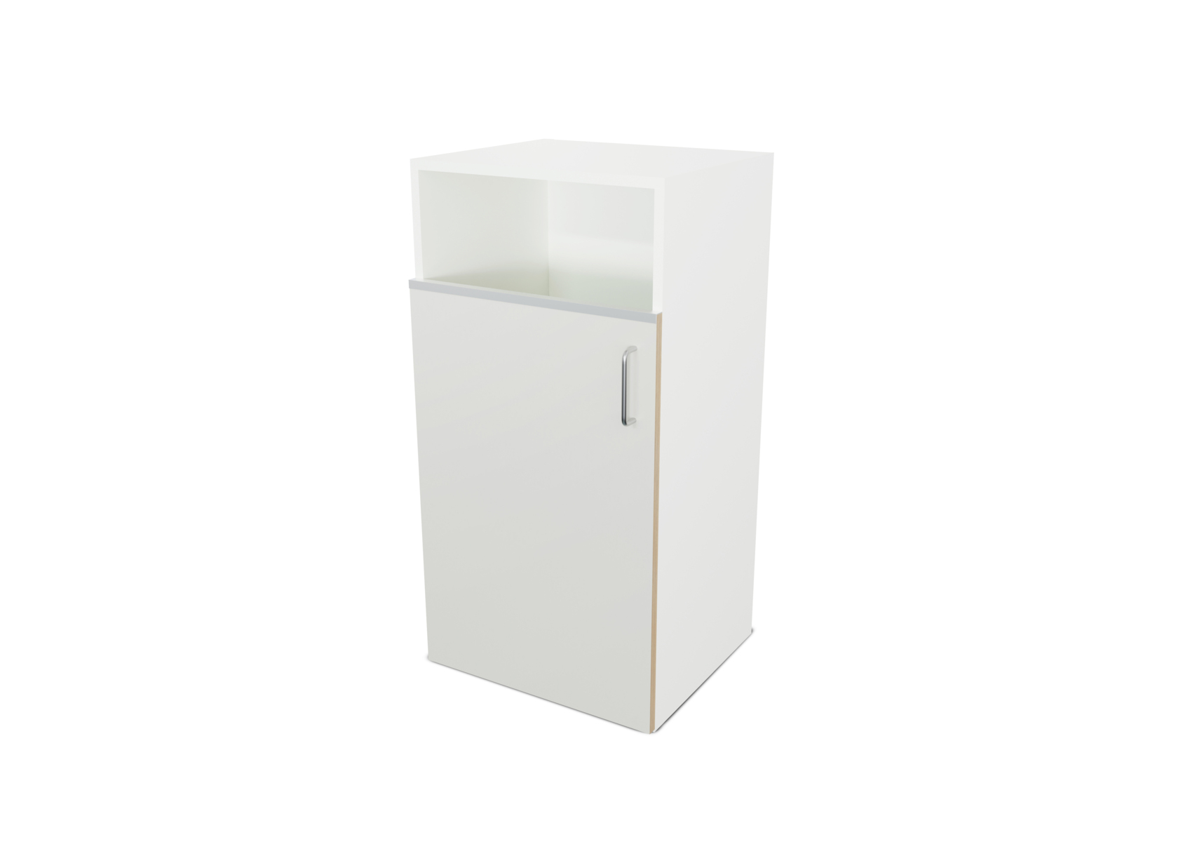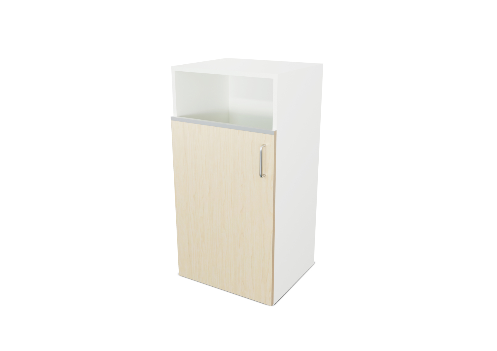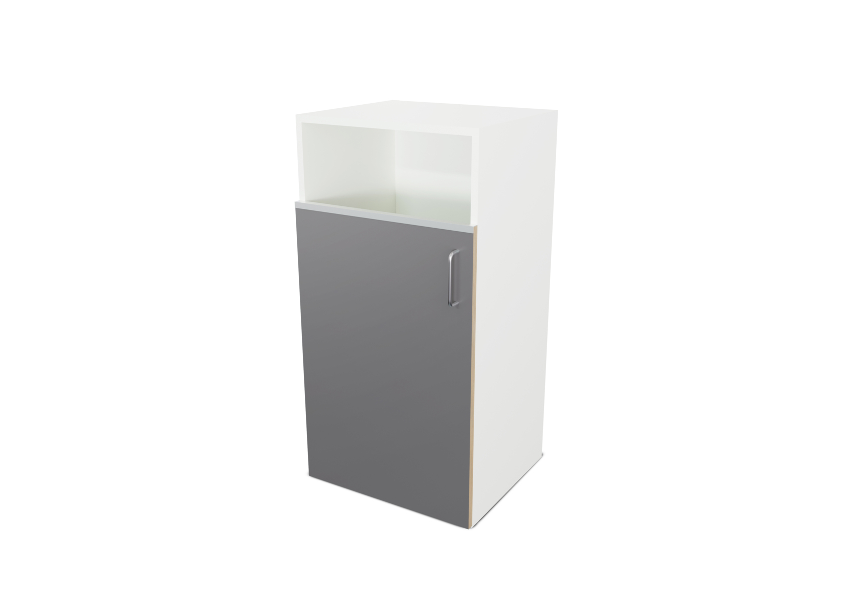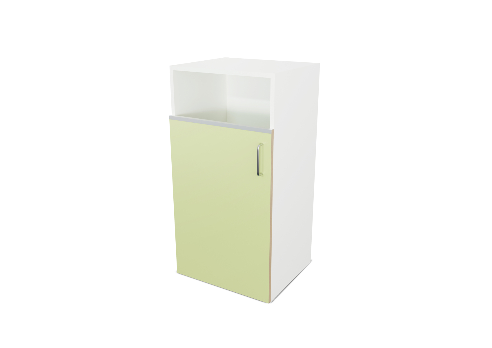 Miljöstation i laminat med dörr och handtag. 22 cm öppning fram på stomme för avfall. Välj mellan laminat och högtryckslaminat på dörr.