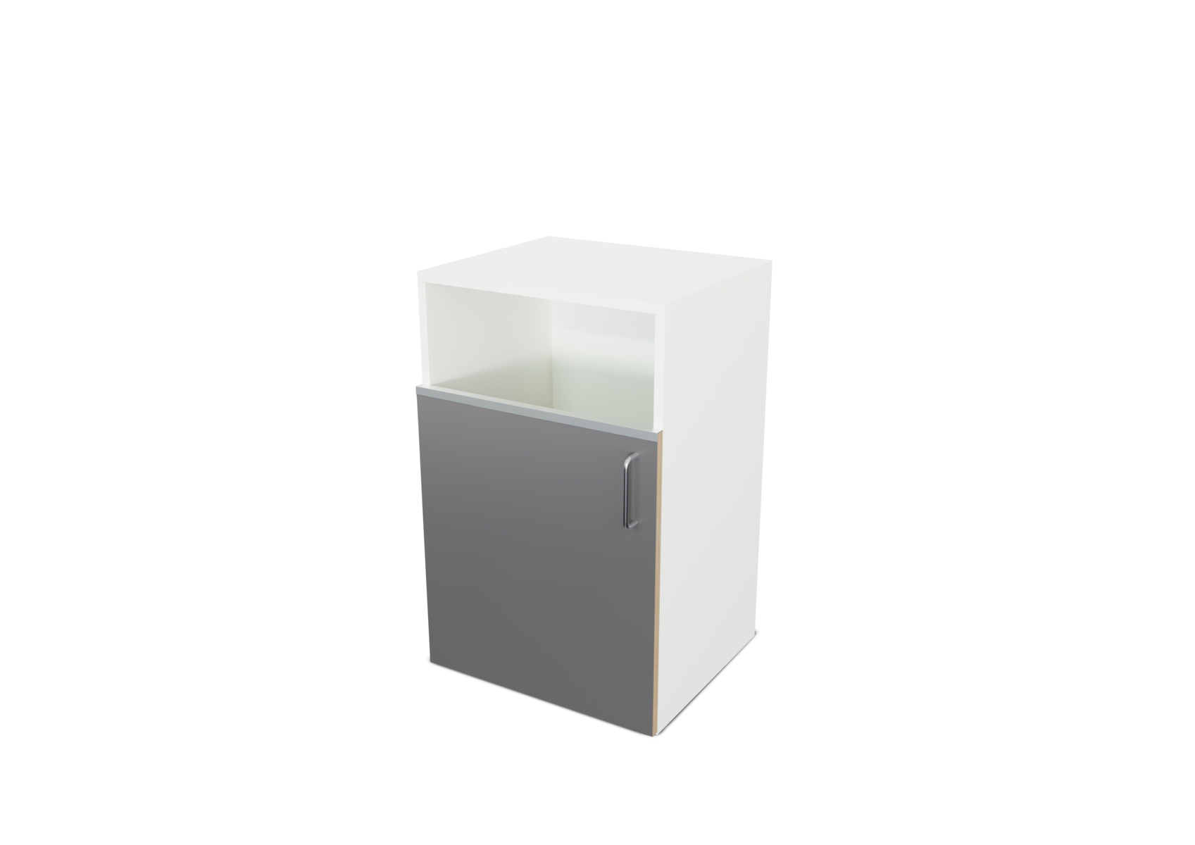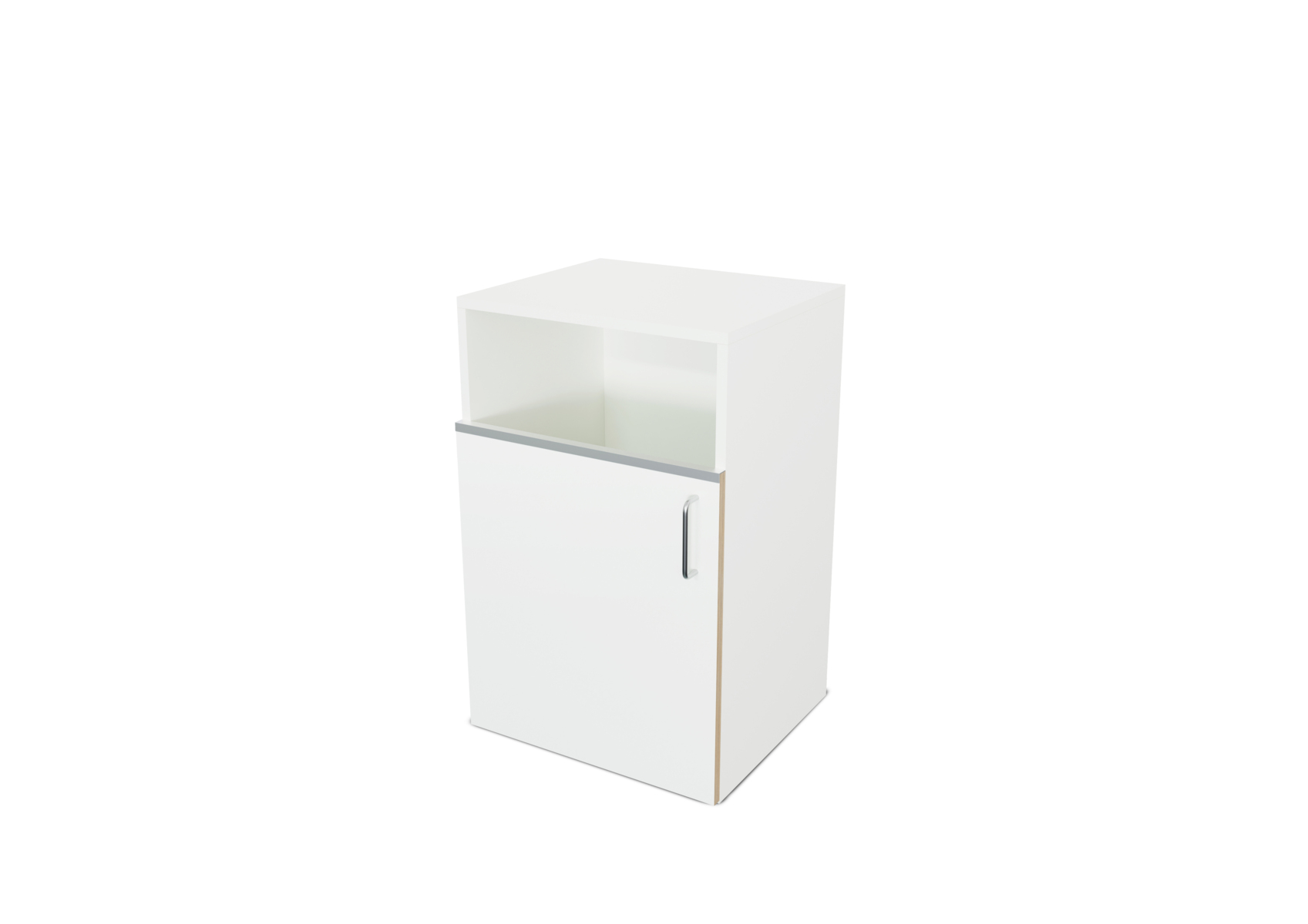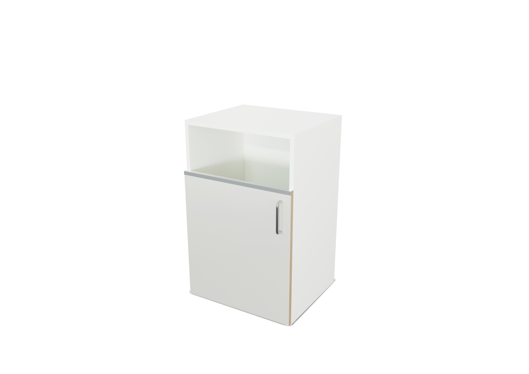 Miljöstation i laminat med dörr och handtag. Topplatta på stomme med hål i för avfall. Hålet har ø 20 cm. Välj mellan laminat och högtryckslaminat på dörr.