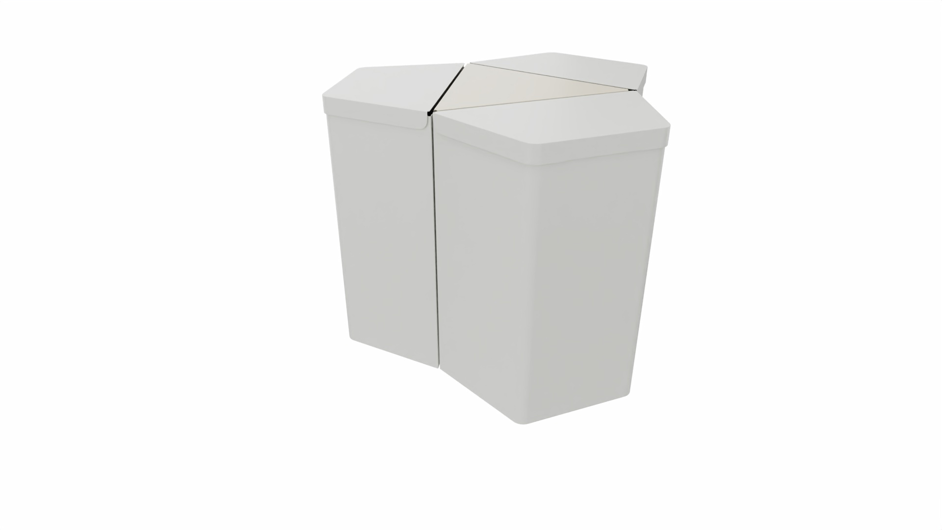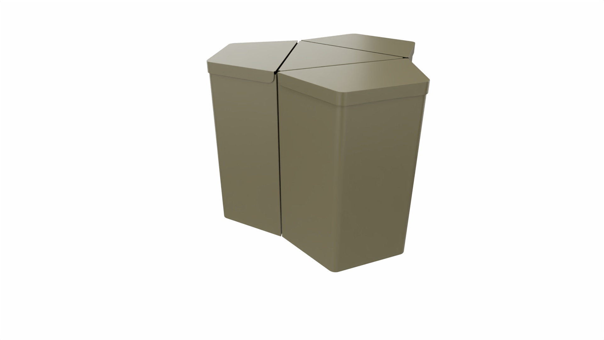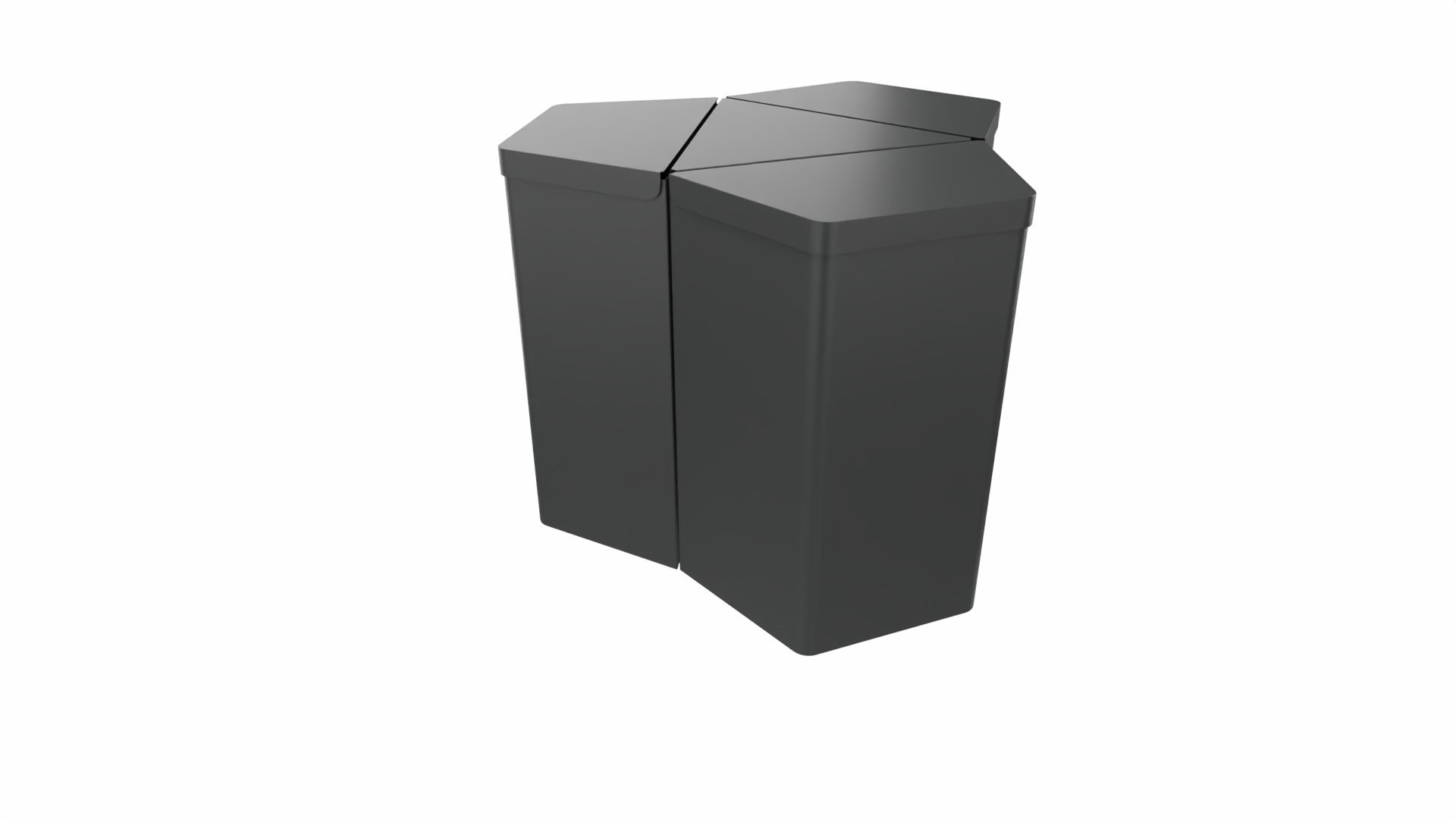 En flexibel återvinningsmodul i stålplåt som antingen monteras fristående, på vägg eller i en grupp om tre. Välj mellan ställbara fötter och låsbara hjul. Locken är utrustade med mjukstängande gångjärn. Anpassad för 125 l sopsäck. Dekal 18 cm (vit text/grå bakgrund) ingår. Vid sammansättning i grupp ihopkopplas modulerna med en mellantriangel och en toppskiva, antingen slät eller med hål för växt (dessa säljs separat).