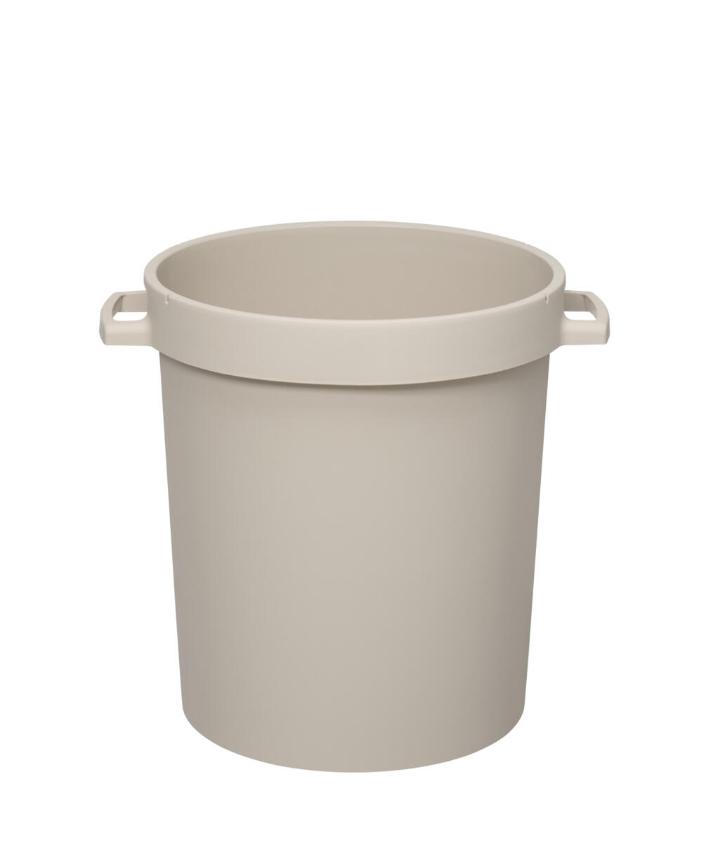 Stadig tunna för inom- och utomhusbruk. Tål stora temperaturvariationer (från -40 till +65 °C). Godkänd för livsmedel. Av PP. Mått: B42xD50xH69 cm. Lock säljs separat på 130922. PVC-fri.