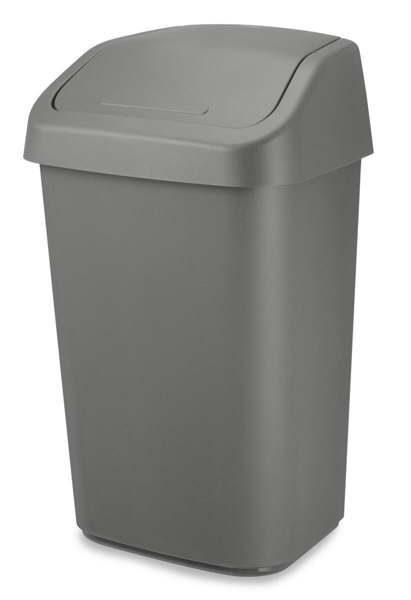 1 st/fp. Mörkgrå papperskorg med praktiskt vipplock. Anpassad för 50-60 l avfallspåsar. Kan även användas som tvättkorg. Yttermått: L40xB34xH66 cm. Tillverkad av återvinningsbar polyetenplast. Volym 50 liter.