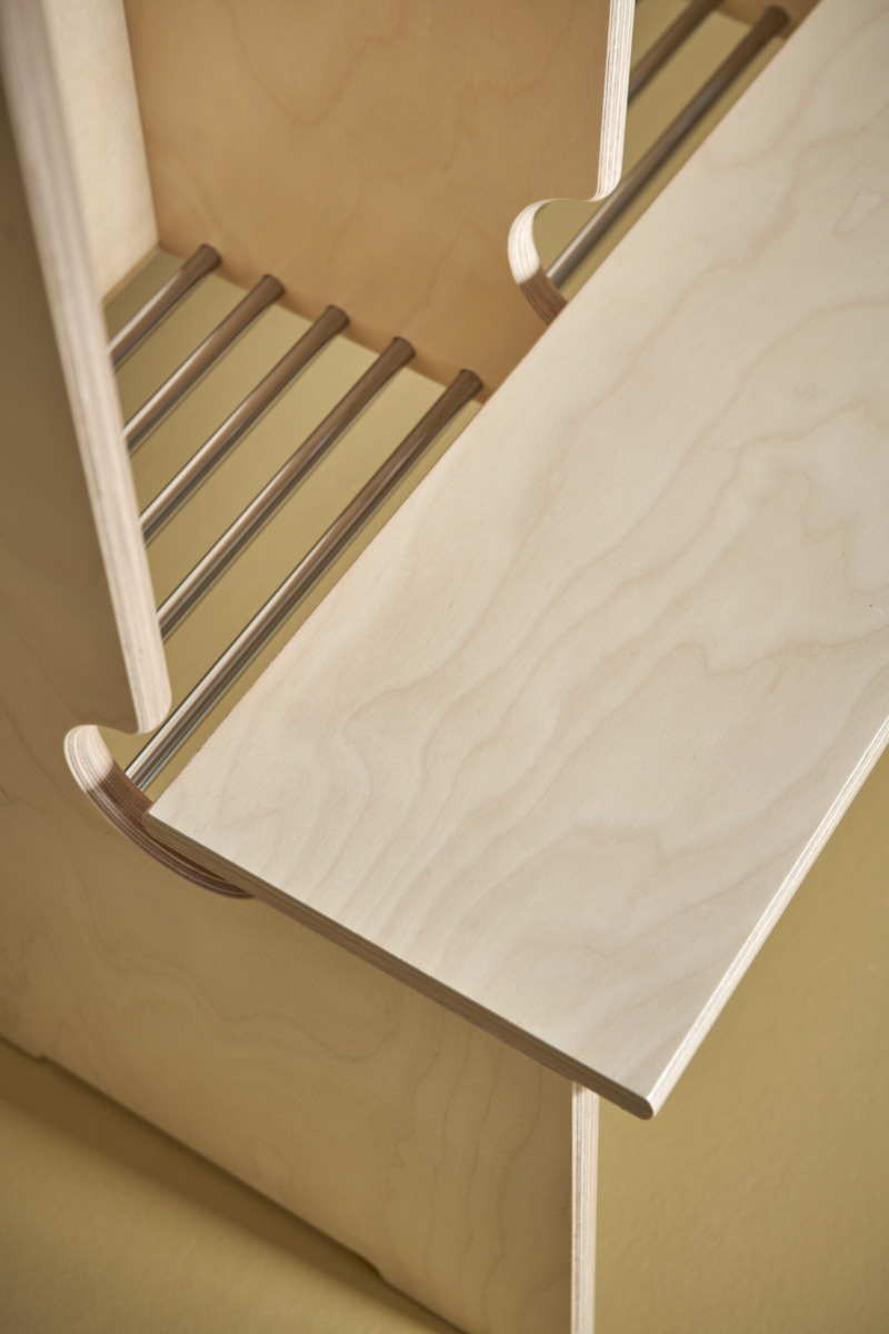 Flexiserien tillverkas i 18 mm björkkryssfaner. Skohylla med rör som släpper igenom smutsen från skor och stövlar. Dubbelkrok för kläd/väskkrok i varje fack. Luckor både uppe och nere kan väljas till i olika färger. Höjd: 168 cm. Djup 24 cm, vid sittbänk 44 cm. Avstånd från klädkrok till skohylla: 100 cm. Med sittbänk. Invändigt mått per plats 28 cm. Svanenmärkt, licensnummer 5031 0099.