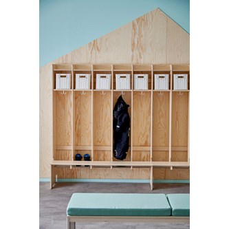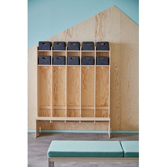 Tillval till sittbänk för 2 fack. Högtryckslaminat på sittbänkens översida förstärker slitytan och förenklar rengörningen. Svanenmärkt, licensnummer 5031 0099.