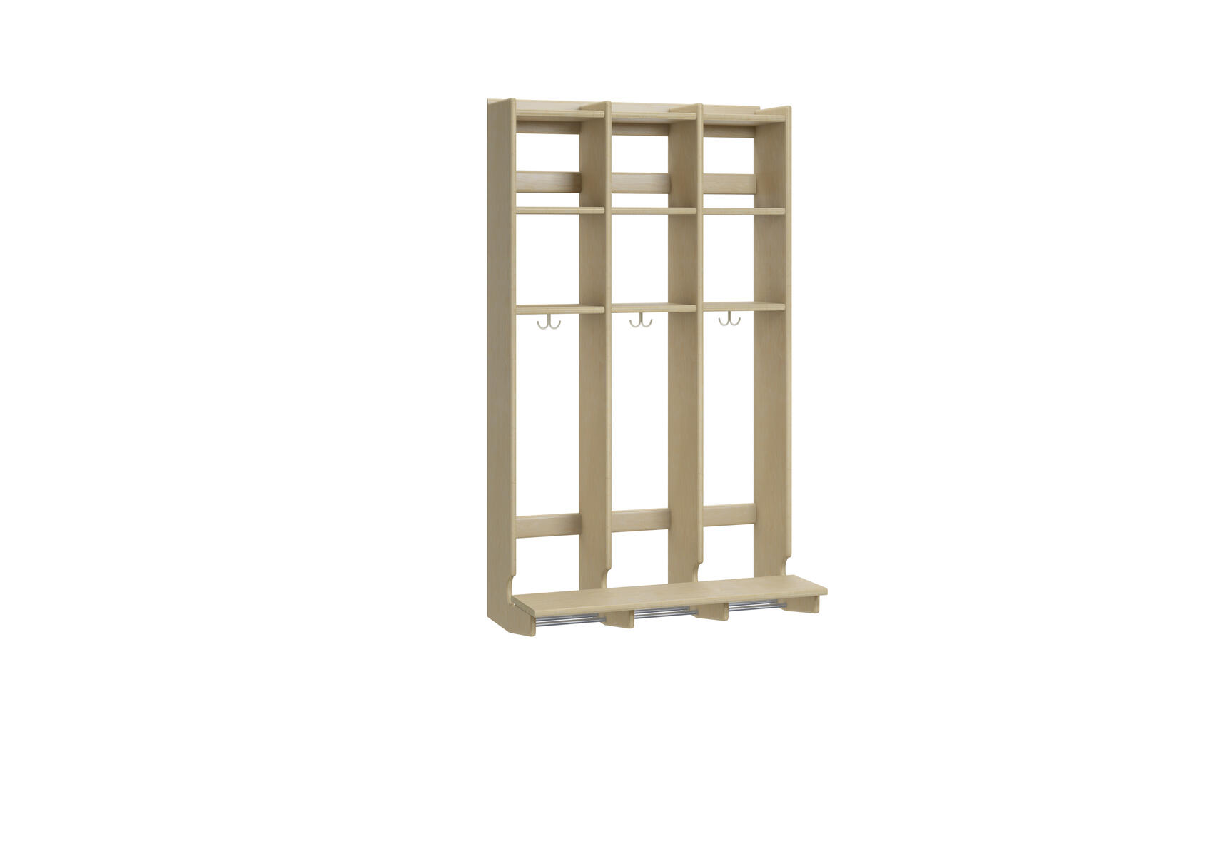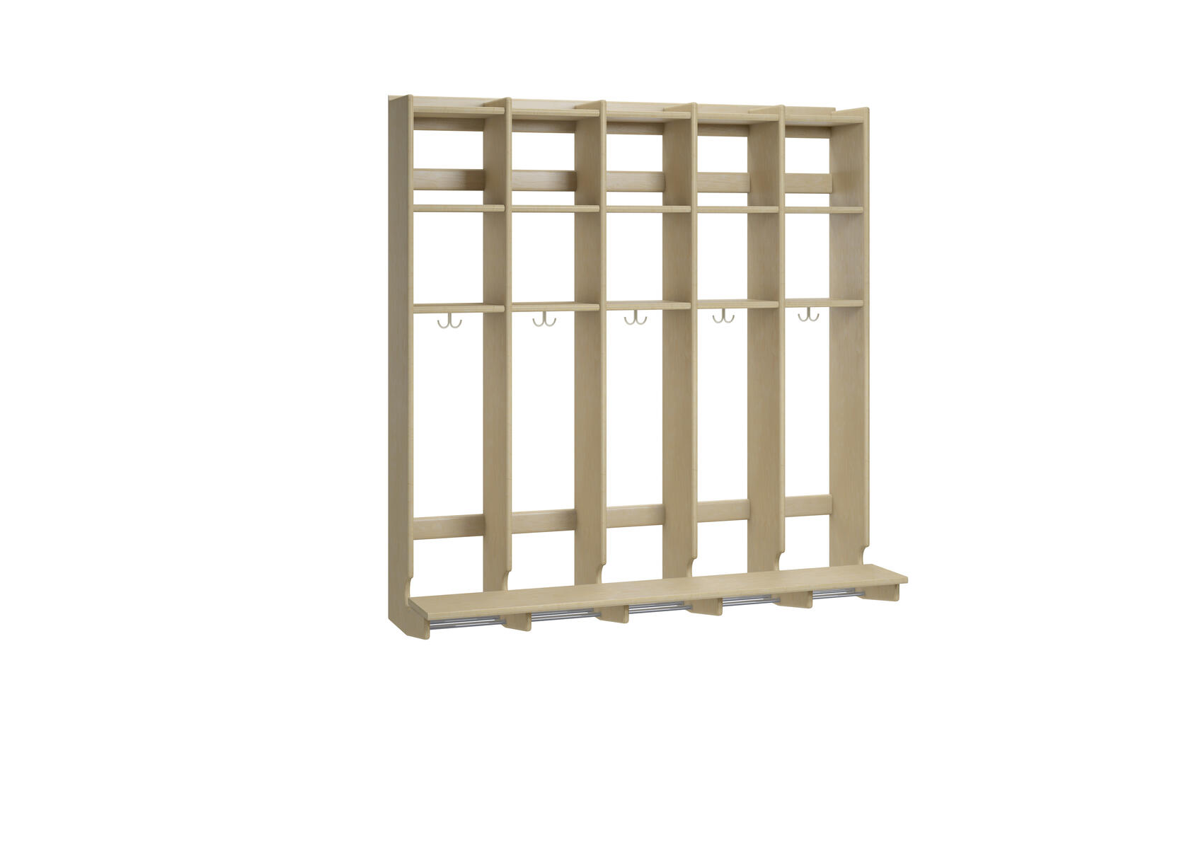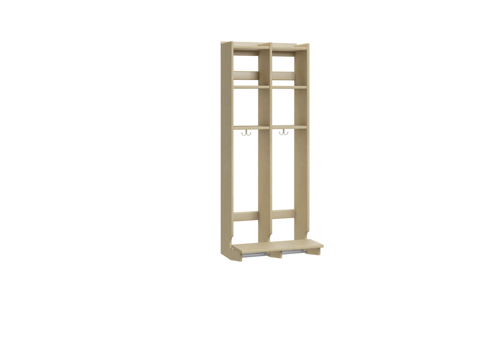 Flexiserien tillverkas i 18 mm björkkryssfaner. Hatthylla som kan kombineras med separat sittbänk och skohylla. Dubbelkrok för kläd/väskkrok i varje fack. Luckor kan väljas till i olika färger. Invändigt mått per plats 22 cm. Svanenmärkt, licensnummer 5031 0099.