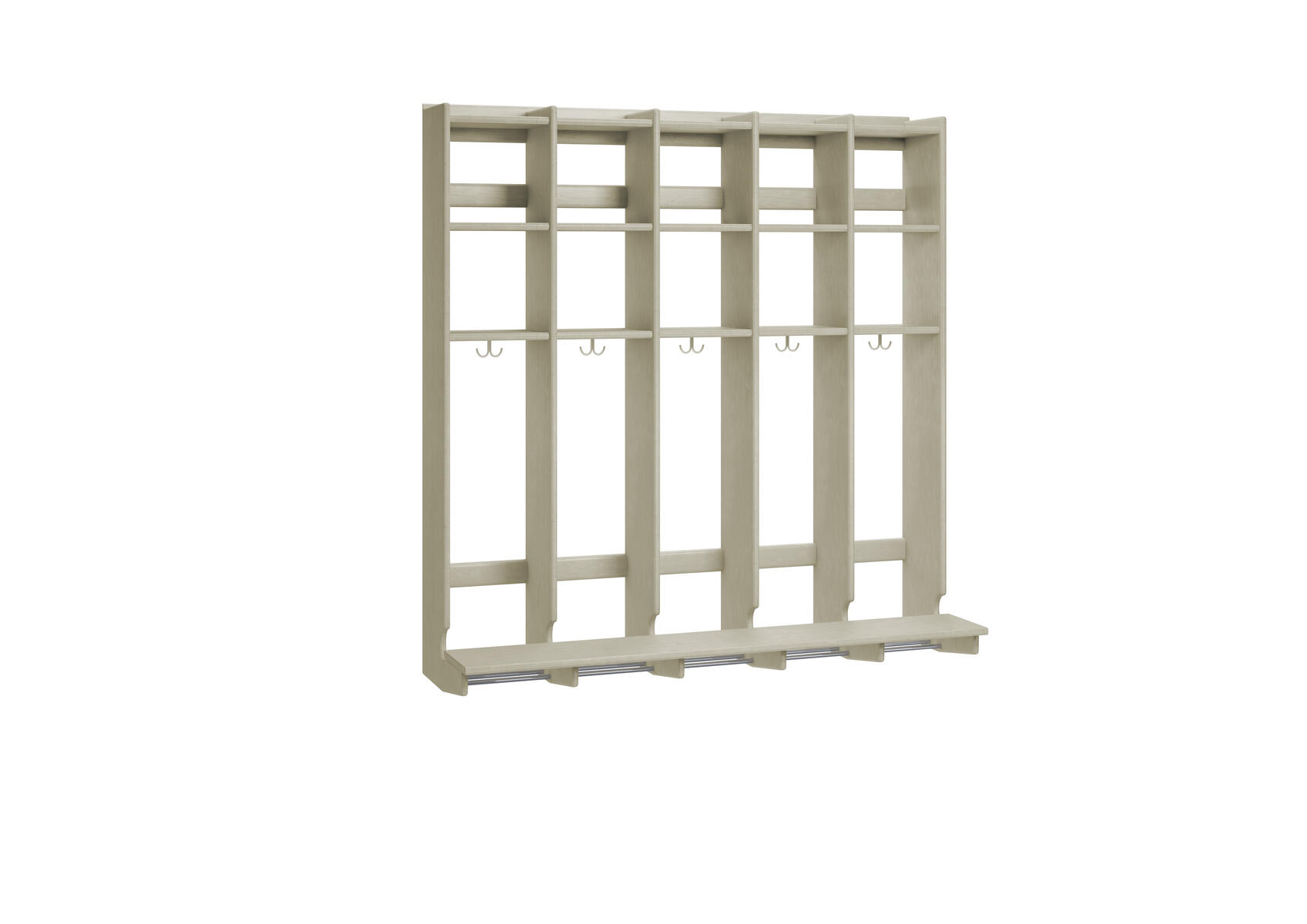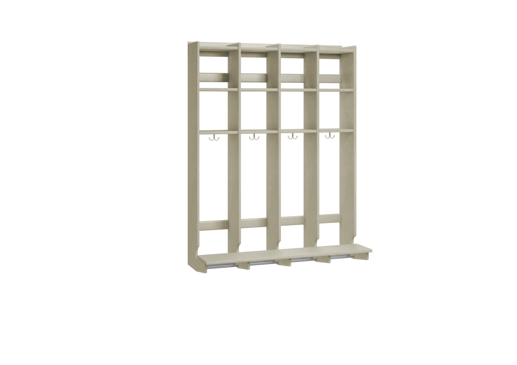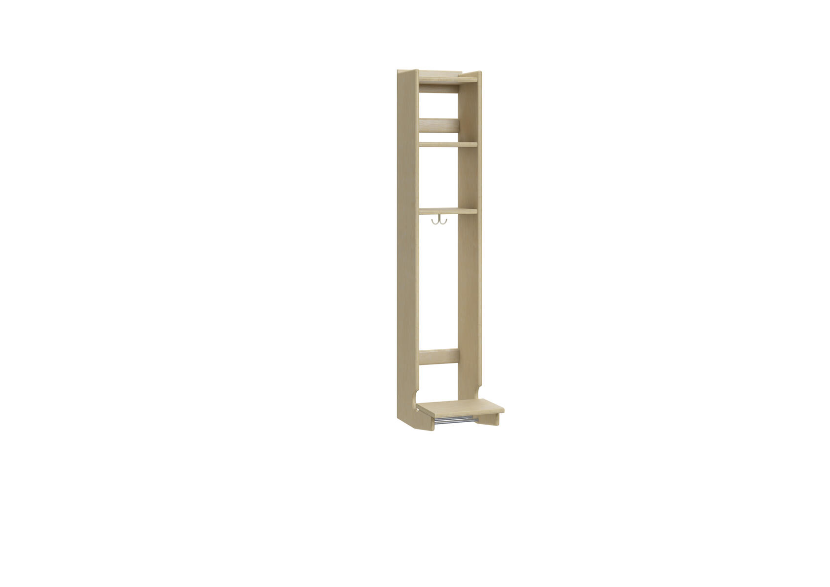 Flexiserien tillverkas i 18 mm björkkryssfaner. Hatthylla som kan kombineras med separat sittbänk och skohylla. Dubbelkrok för kläd/väskkrok i varje fack. Luckor kan väljas till i olika färger. Invändigt mått per plats 22 cm. Svanenmärkt, licensnummer 5031 0099.