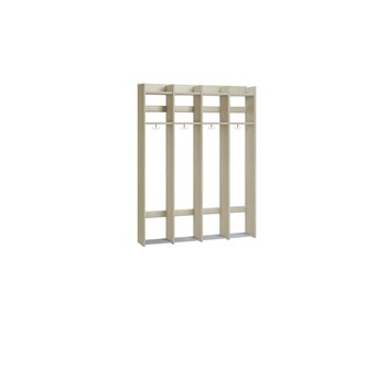 Flexiserien tillverkas i 18 mm björkkryssfaner. Skohylla med rör som släpper igenom smutsen från skor och stövlar. Dubbelkrok för kläd/väskkrok i varje fack. Luckor både uppe och nere kan väljas till i olika färger. Höjd: 143 cm. Djup 24 cm, vid sittbänk 44 cm. Avstånd från klädkrok till skohylla: 100 cm. Vägghängd med sittbänk. Invändigt mått per plats 28 cm. Svanenmärkt, licensnummer 5031 0099.