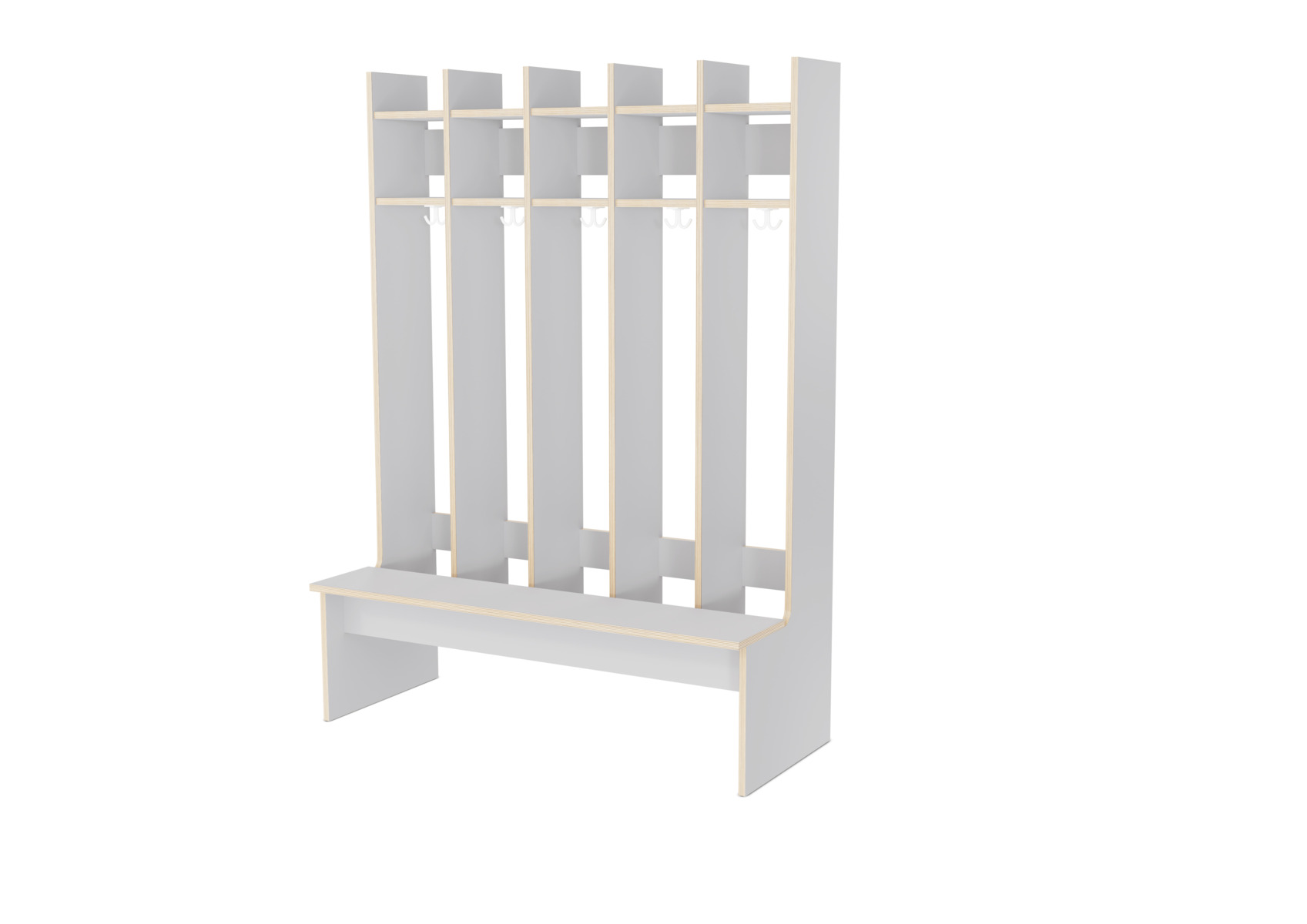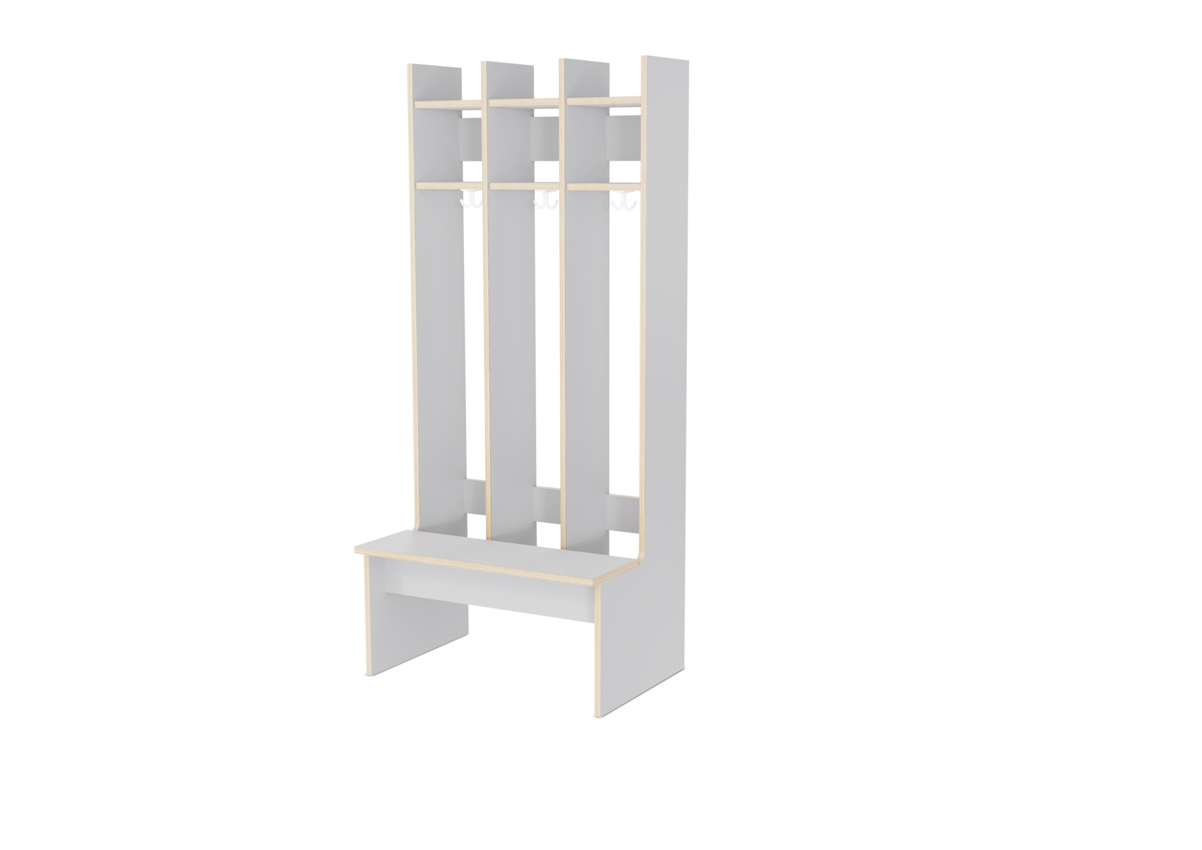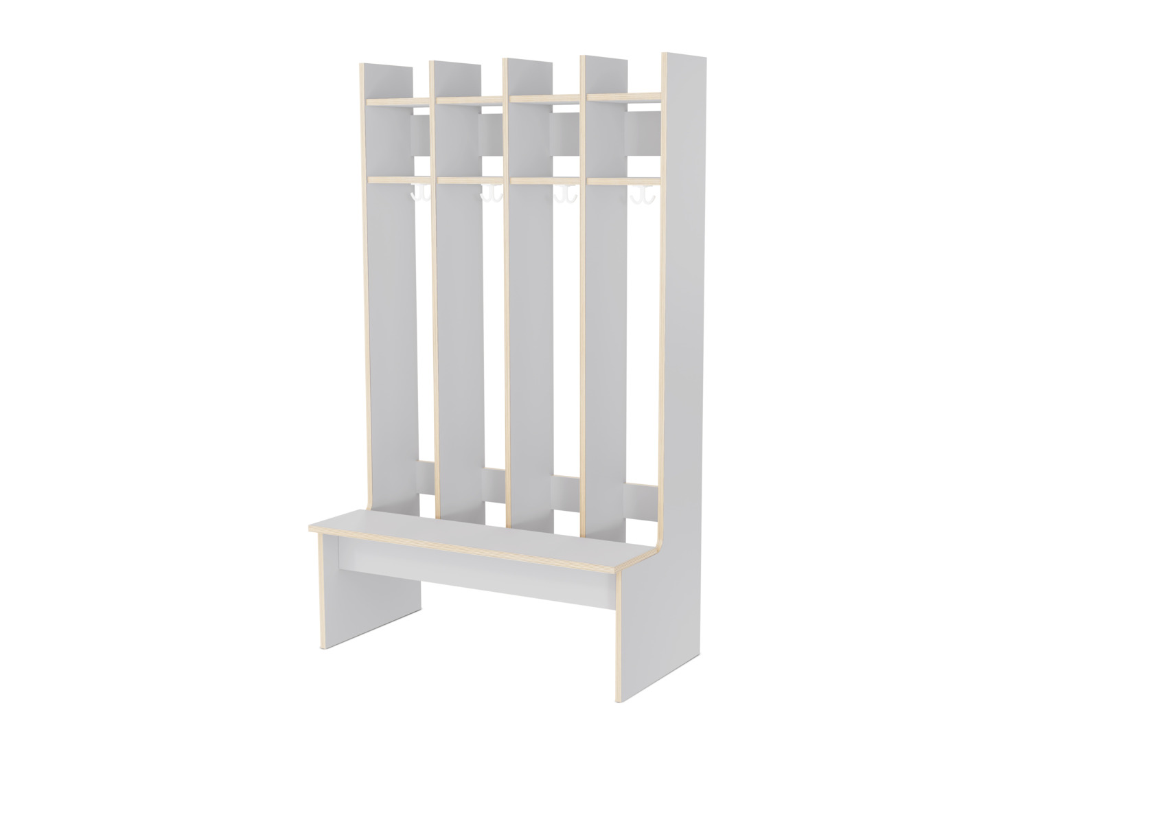 Flexiserien tillverkas i vitpigmenterad 18 mm björkkryssfaner. Skohylla med rör som släpper igenom smutsen från skor och stövlar. Dubbelkrok för kläd/väskkrok i varje fack. Luckor både uppe och nere kan väljas till i olika färger. Kan kombineras med separat klädfack. Invändigt mått per plats 28 cm. Svanenmärkt, licensnummer 5031 0099.