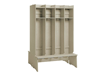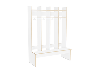 Radien är 2 m, d.v.s. ⌀ 4 m vid ihopsättning av 4 bänkar. Sittbänk belagd med högtryckslaminat. Stativ silverlackerat 9006. Sitthöjd 44 cm. Förberedd för golvmontering.