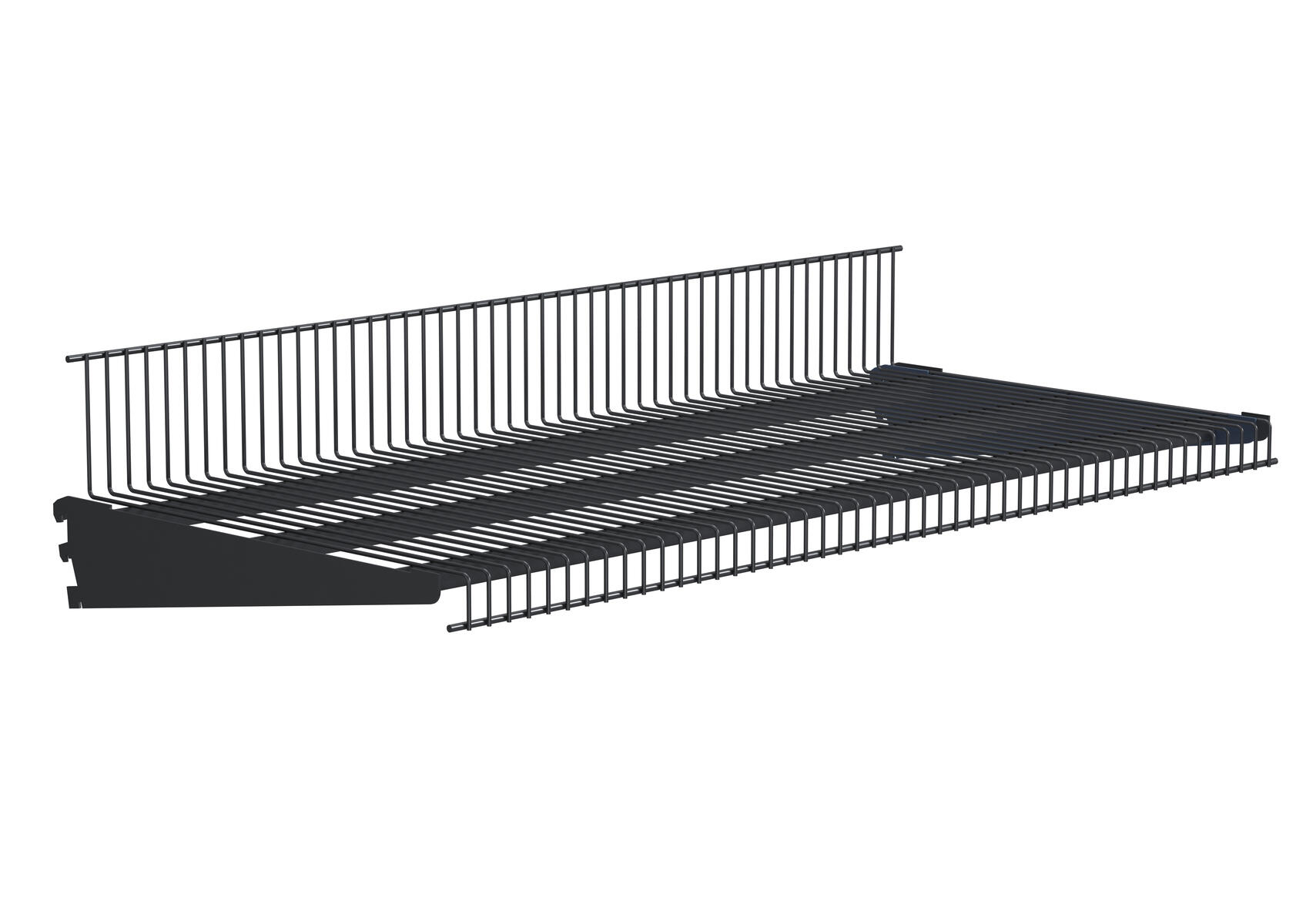 Använd till Wille skensystem. Passar till både vägghängda och fristående modeller. Enkel att justera i höjd. Det krävs montering av trådhyllplan och de inkluderade konsolerna. Kan användas rakt och i 23 graders vinkel. Vid vinkling använd den uppåtgående tråden som stopp. Vinklingen är 10 cm hög. Utmärkt som förvaring i alla utrymmen. Lätt att rengöra, torka med fuktig trasa.