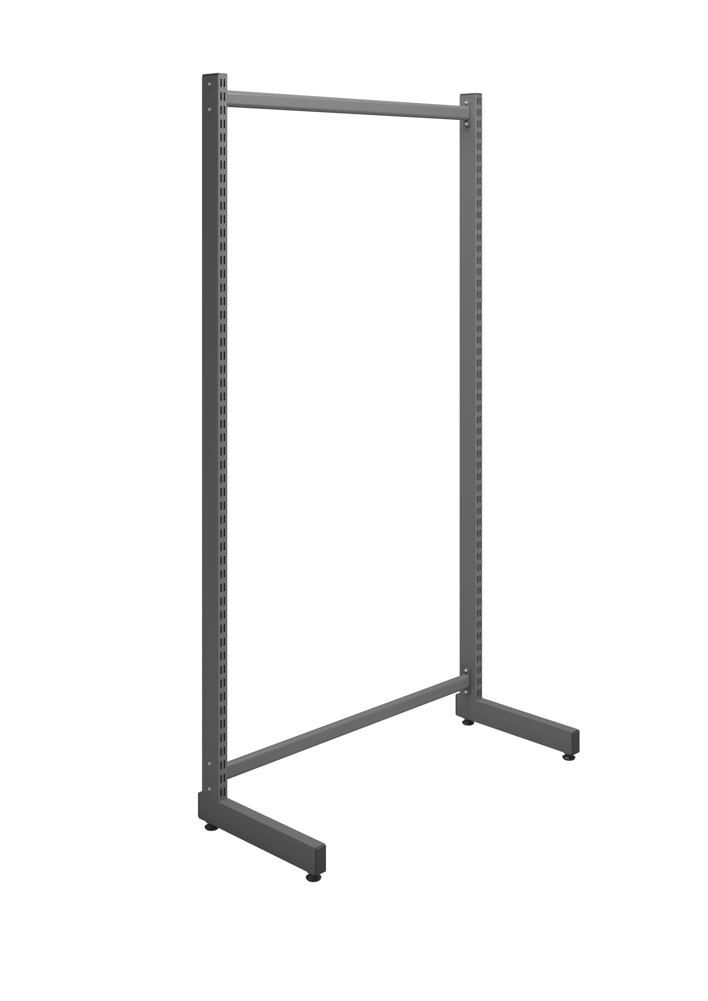 Använd till Wille skensystem. Placera mot vägg och bygg vidare med L-stativ påbyggnadssats när mer plats behövs. Innehåller 2 L-stativ 180 cm hög med 2 mellanstag 75 cm bred.