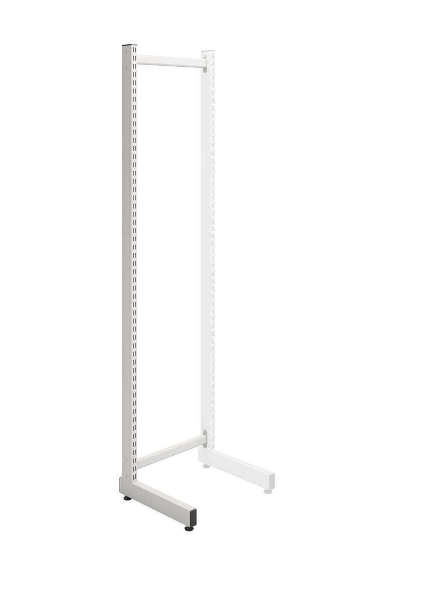 Använd till Wille skensystem. Placera mot vägg och bygg vidare med L-stativ påbyggnadssats när mer plats behövs. Innehåller 1 L-stativ 180 cm hög med 2 mellanstag 75 cm bred.