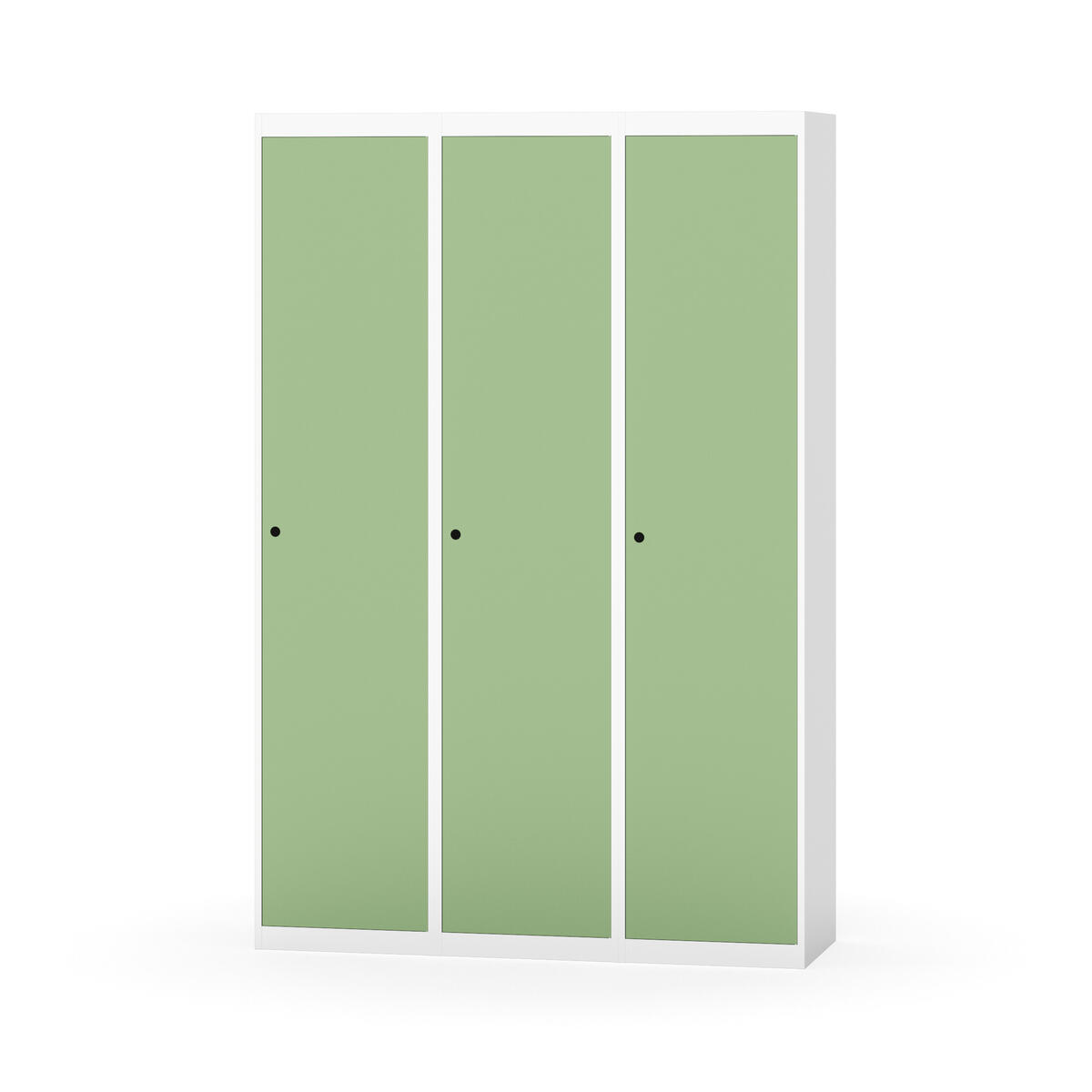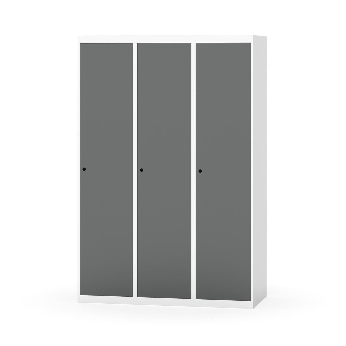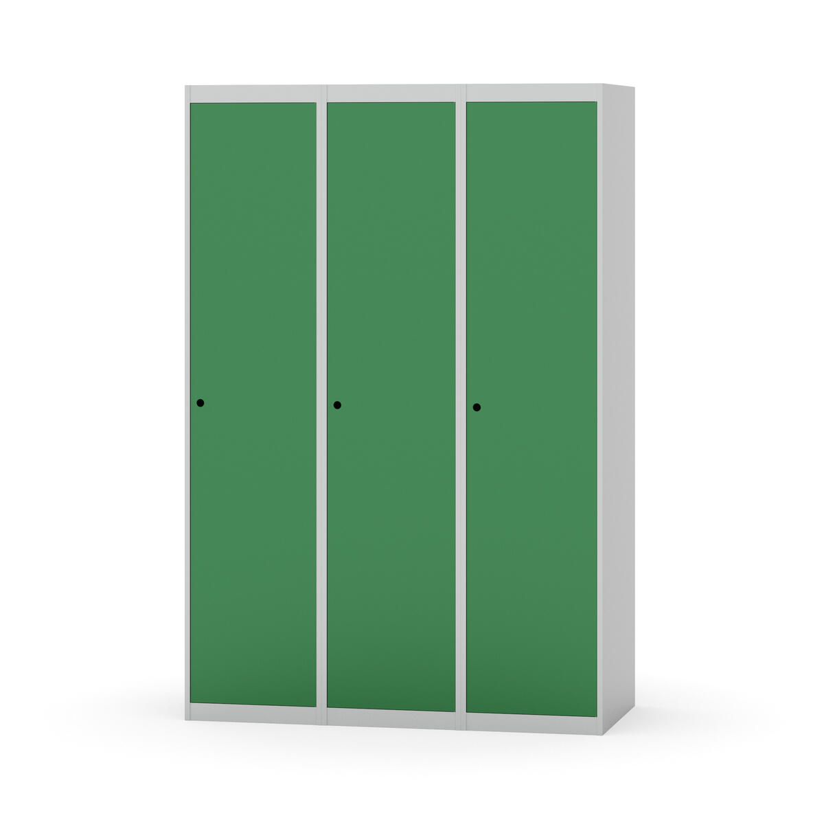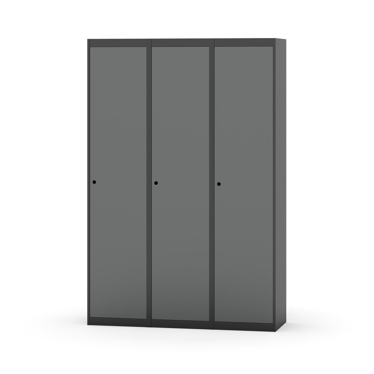 Klädskåp med helsvetsad stomme. Välj mellan plåt eller laminatdörr. Plåtdörren är försedd med dörrstopp i stål och infälld förstärkning kring låshålet. Laminatdörr infälld i stålram försedd med dörrstopp i stål. Dörrar är öppningsbara 90 grader. Inredning: Hyllplan och klädstång med två ankarkrokar. Slät golvyta utan tröskel. Ventilation genom hål i tak-/bottenplåt. Observera att lås och underrede beställs på separata artikelnummer. Lås kommer att vara monterade på skåp vid leverans. Valt underrede monteras på plats.