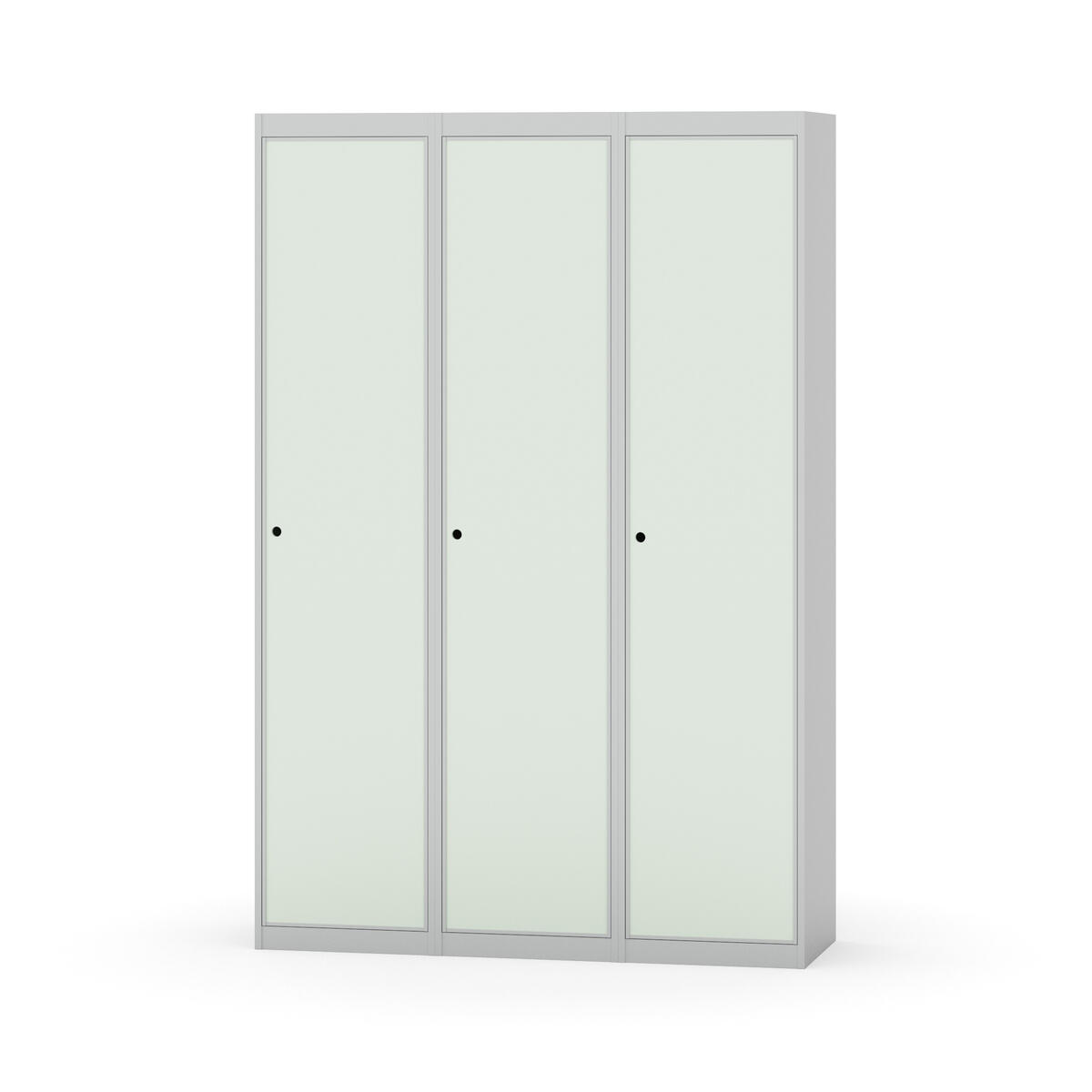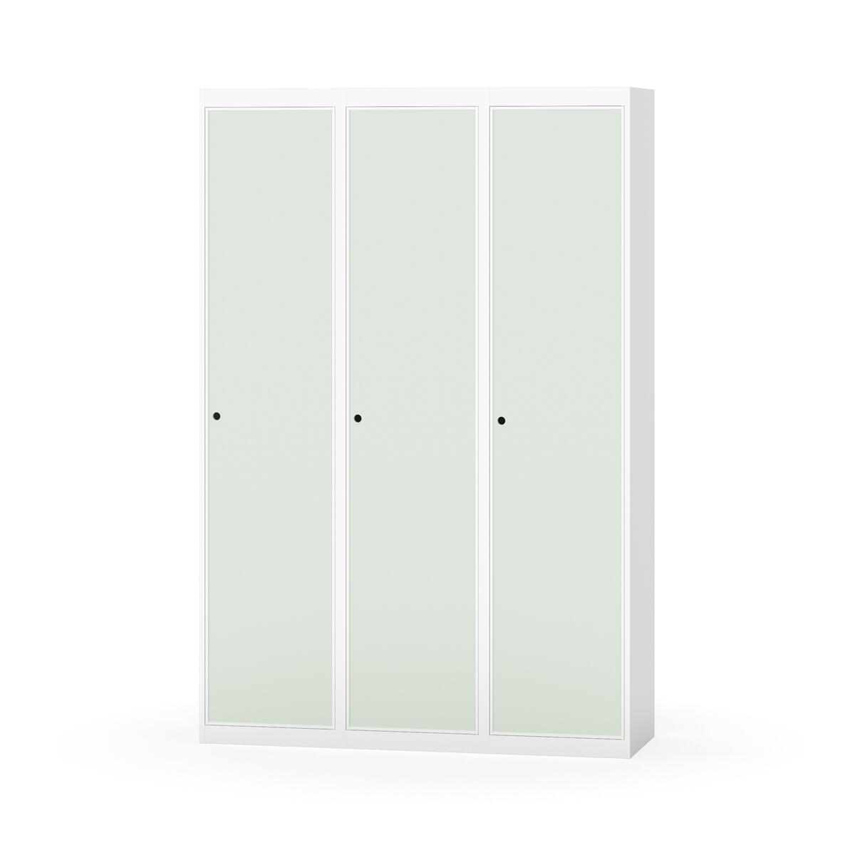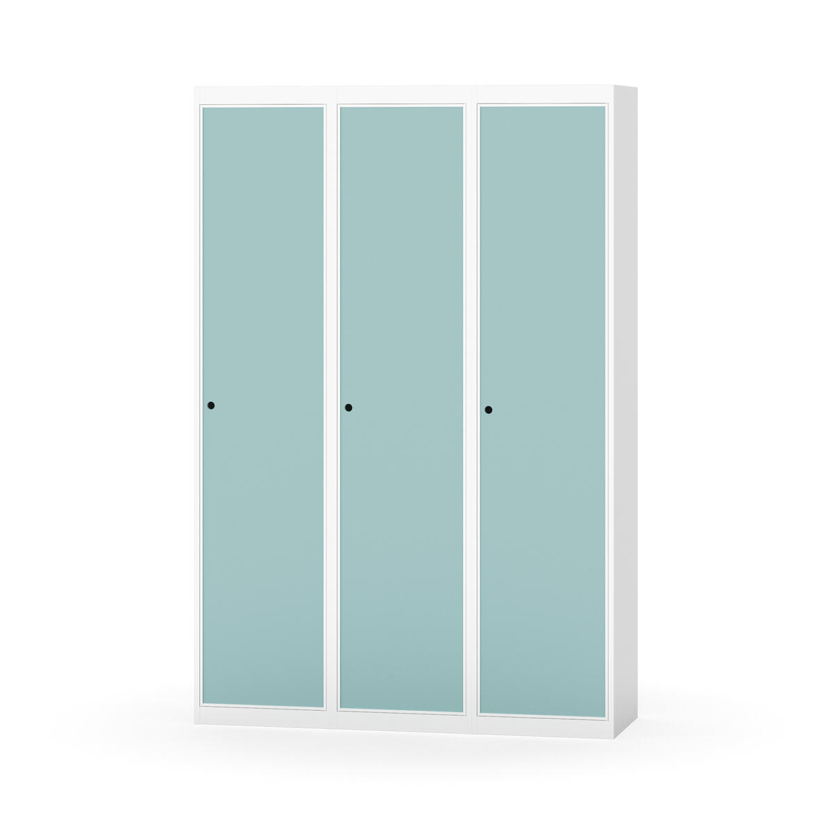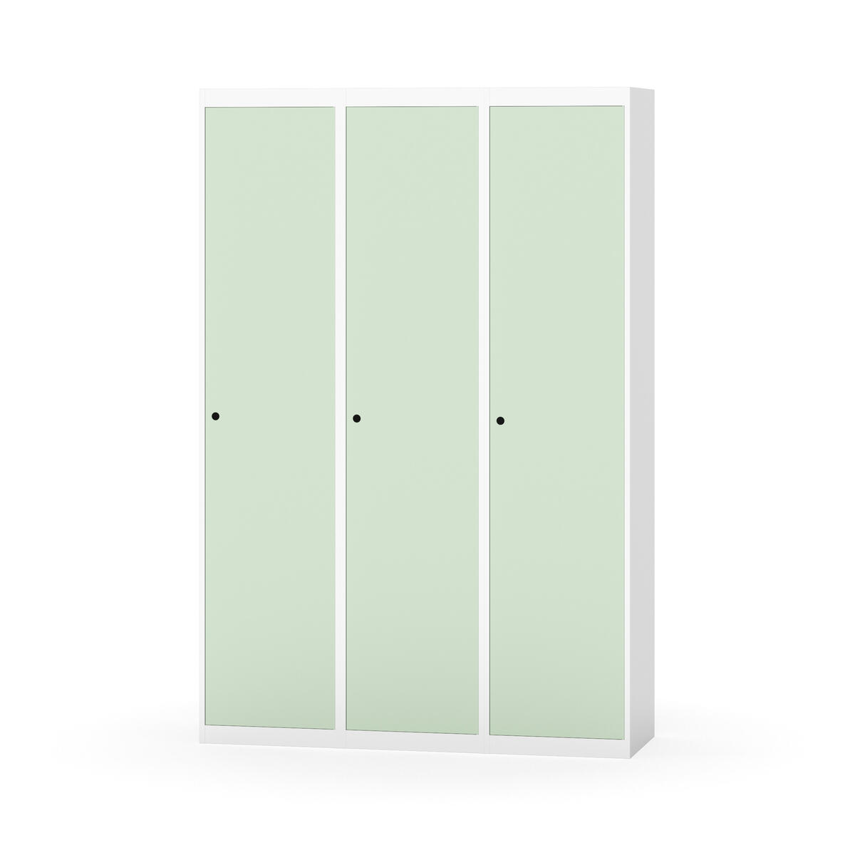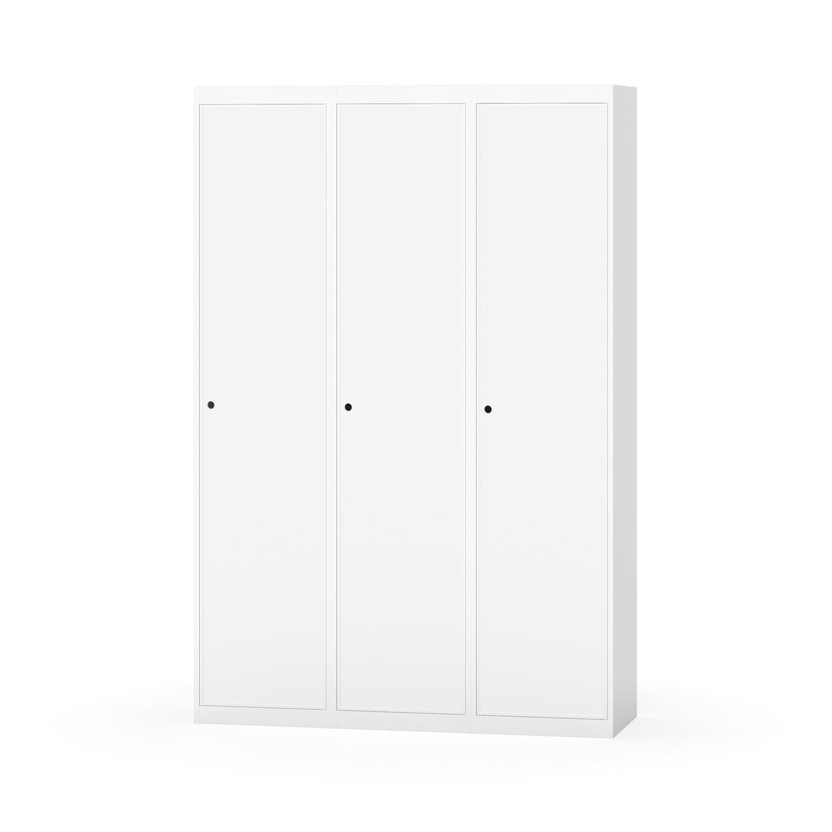 Klädskåp med helsvetsad stomme. Välj mellan plåt eller laminatdörr. Plåtdörren är försedd med dörrstopp i stål och infälld förstärkning kring låshålet. Laminatdörr infälld i stålram försedd med dörrstopp i stål. Dörrar är öppningsbara 90 grader. Inredning: Hyllplan och klädstång med två ankarkrokar. Slät golvyta utan tröskel. Ventilation genom hål i tak-/bottenplåt. Observera att lås och underrede beställs på separata artikelnummer. Lås kommer att vara monterade på skåp vid leverans. Valt underrede monteras på plats.