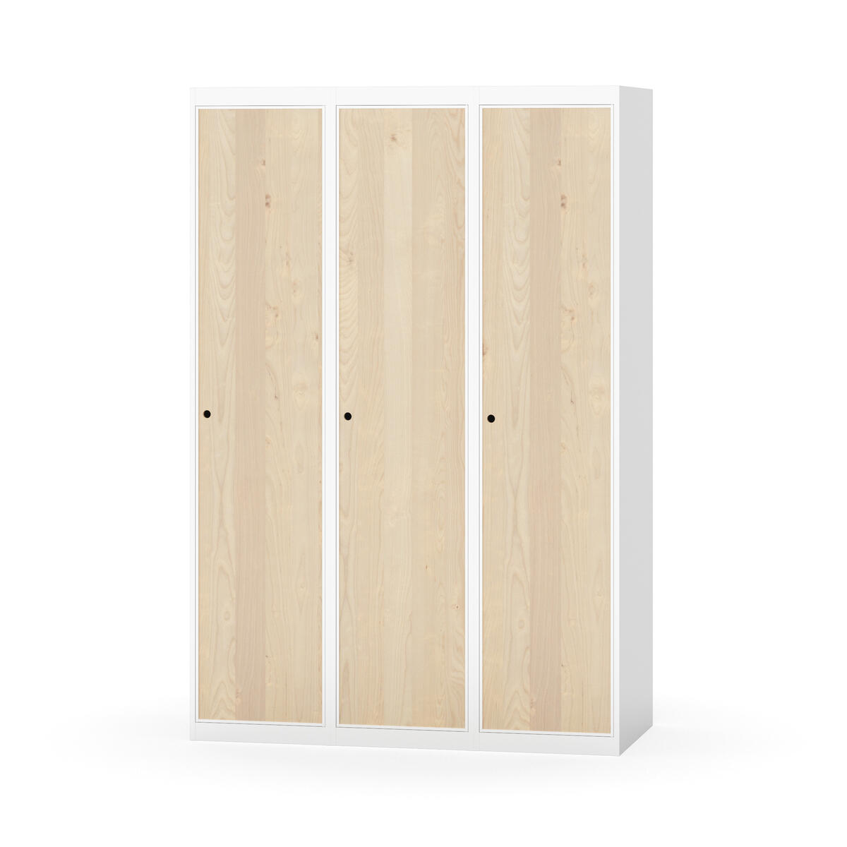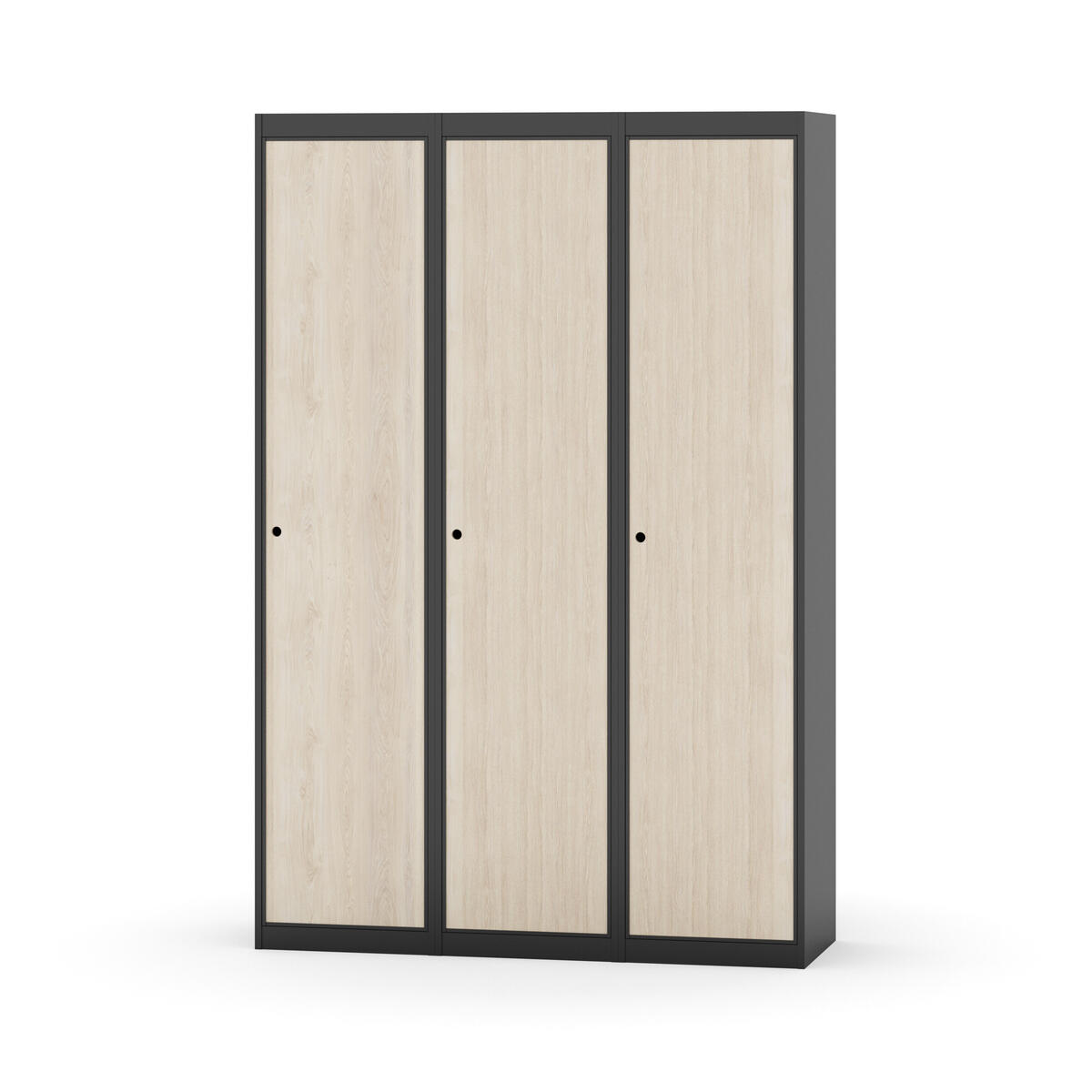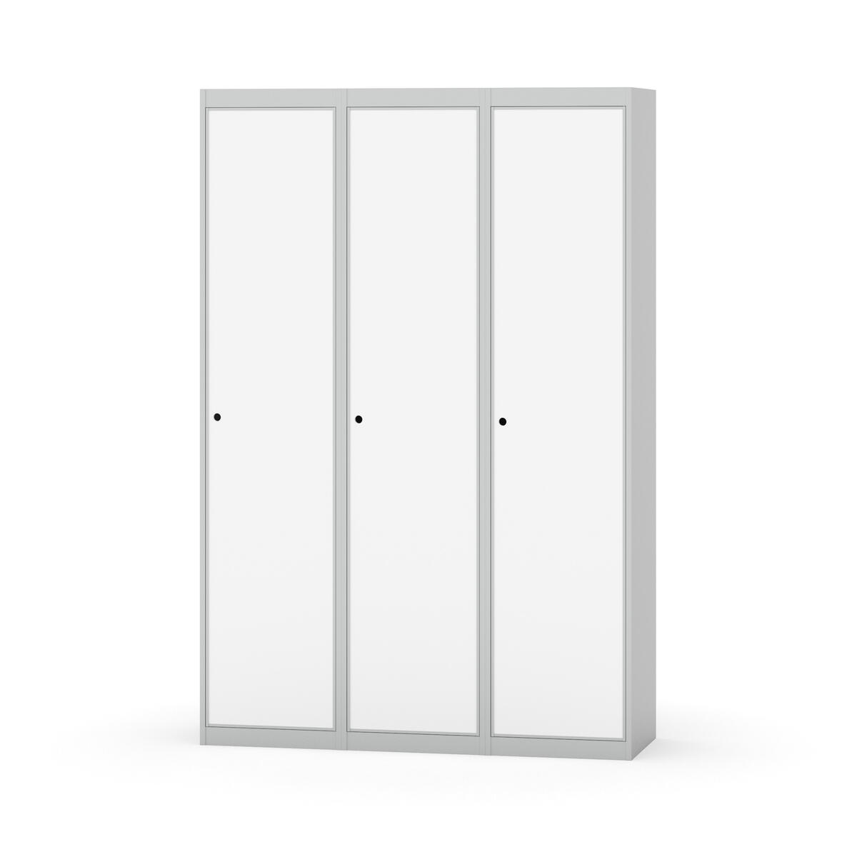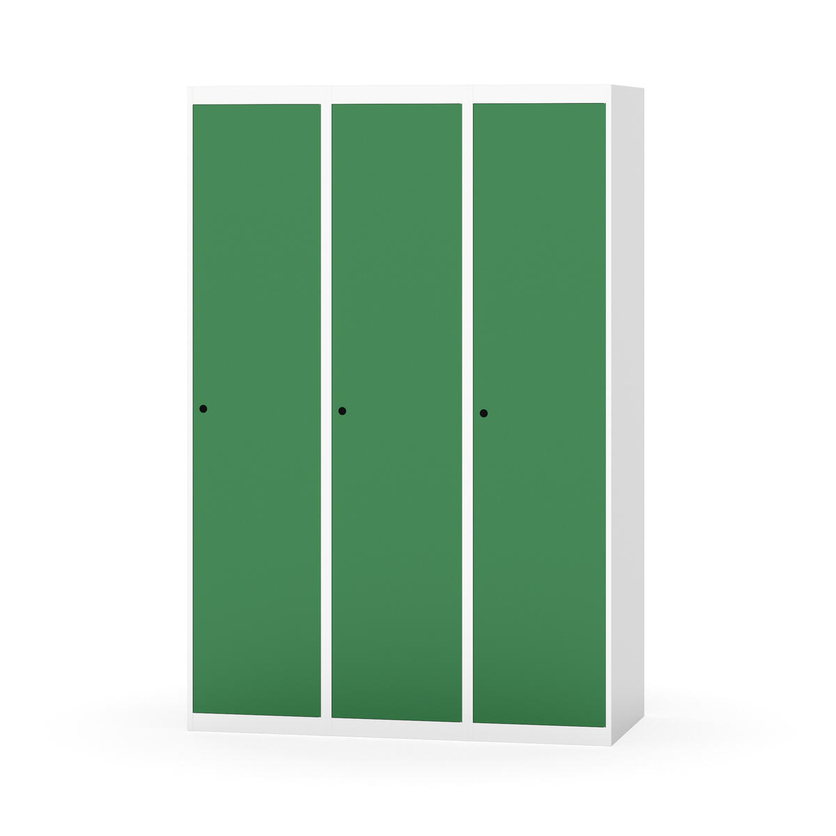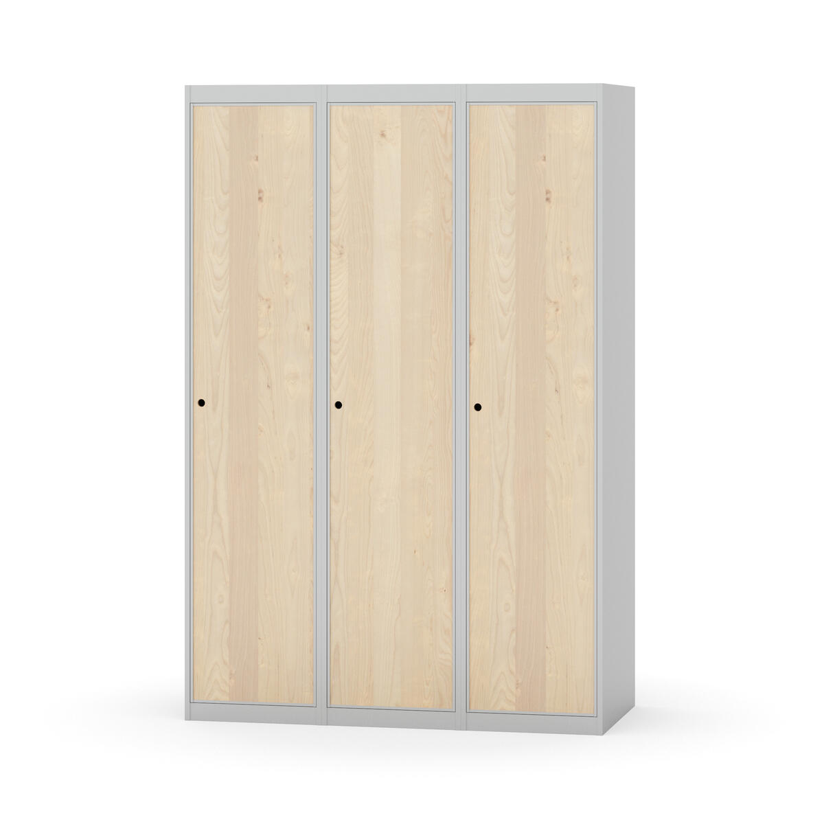 Klädskåp med helsvetsad stomme. Välj mellan plåt eller laminatdörr. Plåtdörren är försedd med dörrstopp i stål och infälld förstärkning kring låshålet. Laminatdörr infälld i stålram försedd med dörrstopp i stål. Dörrar är öppningsbara 90 grader. Inredning: Hyllplan och klädstång med två ankarkrokar. Slät golvyta utan tröskel. Ventilation genom hål i tak-/bottenplåt. Observera att lås och underrede beställs på separata artikelnummer. Lås kommer att vara monterade på skåp vid leverans. Valt underrede monteras på plats.