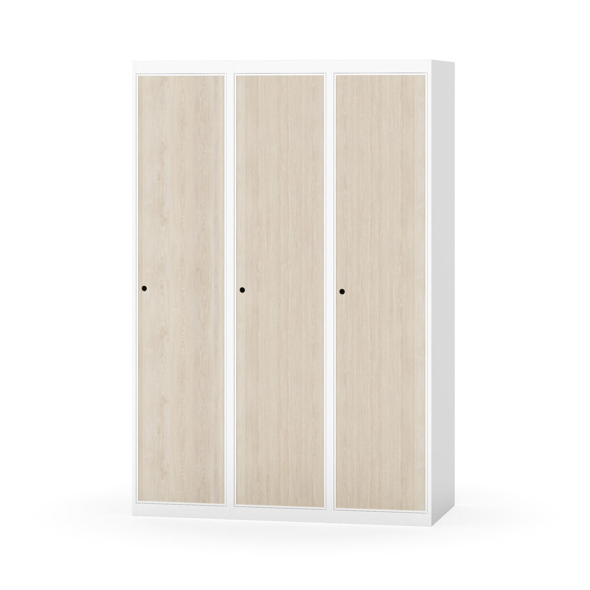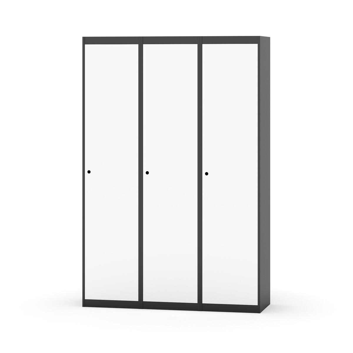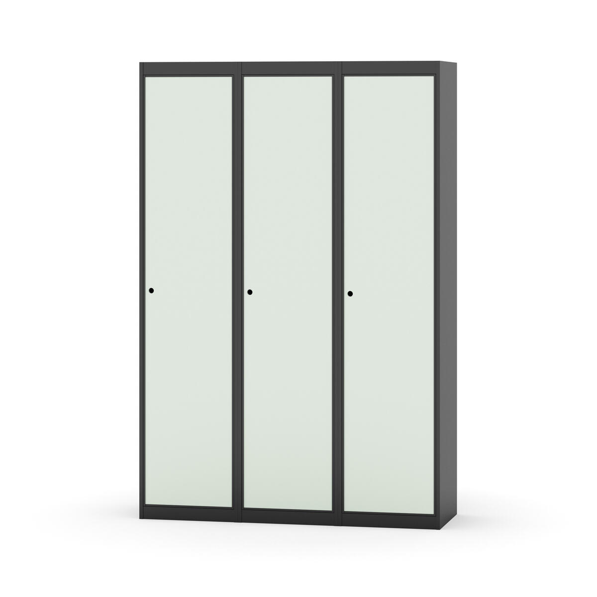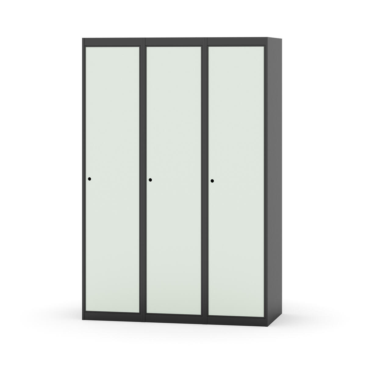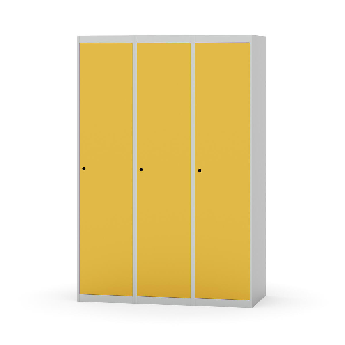Klädskåp med helsvetsad stomme. Välj mellan plåt eller laminatdörr. Plåtdörren är försedd med dörrstopp i stål och infälld förstärkning kring låshålet. Laminatdörr infälld i stålram försedd med dörrstopp i stål. Dörrar är öppningsbara 90 grader. Inredning: Hyllplan och klädstång med två ankarkrokar. Slät golvyta utan tröskel. Ventilation genom hål i tak-/bottenplåt. Observera att lås och underrede beställs på separata artikelnummer. Lås kommer att vara monterade på skåp vid leverans. Valt underrede monteras på plats.