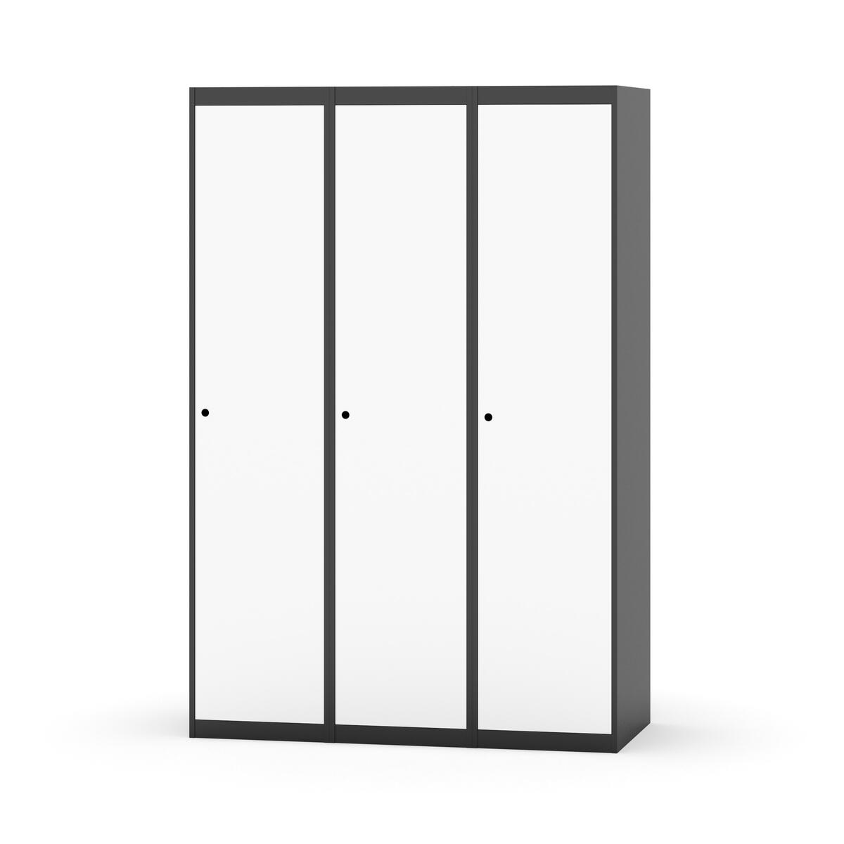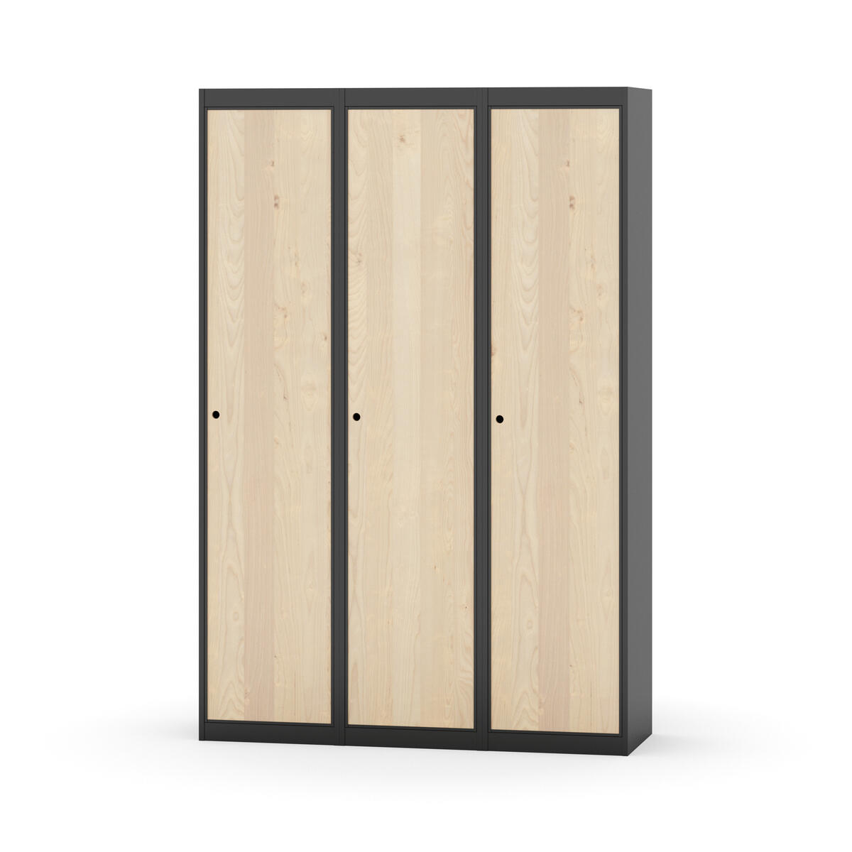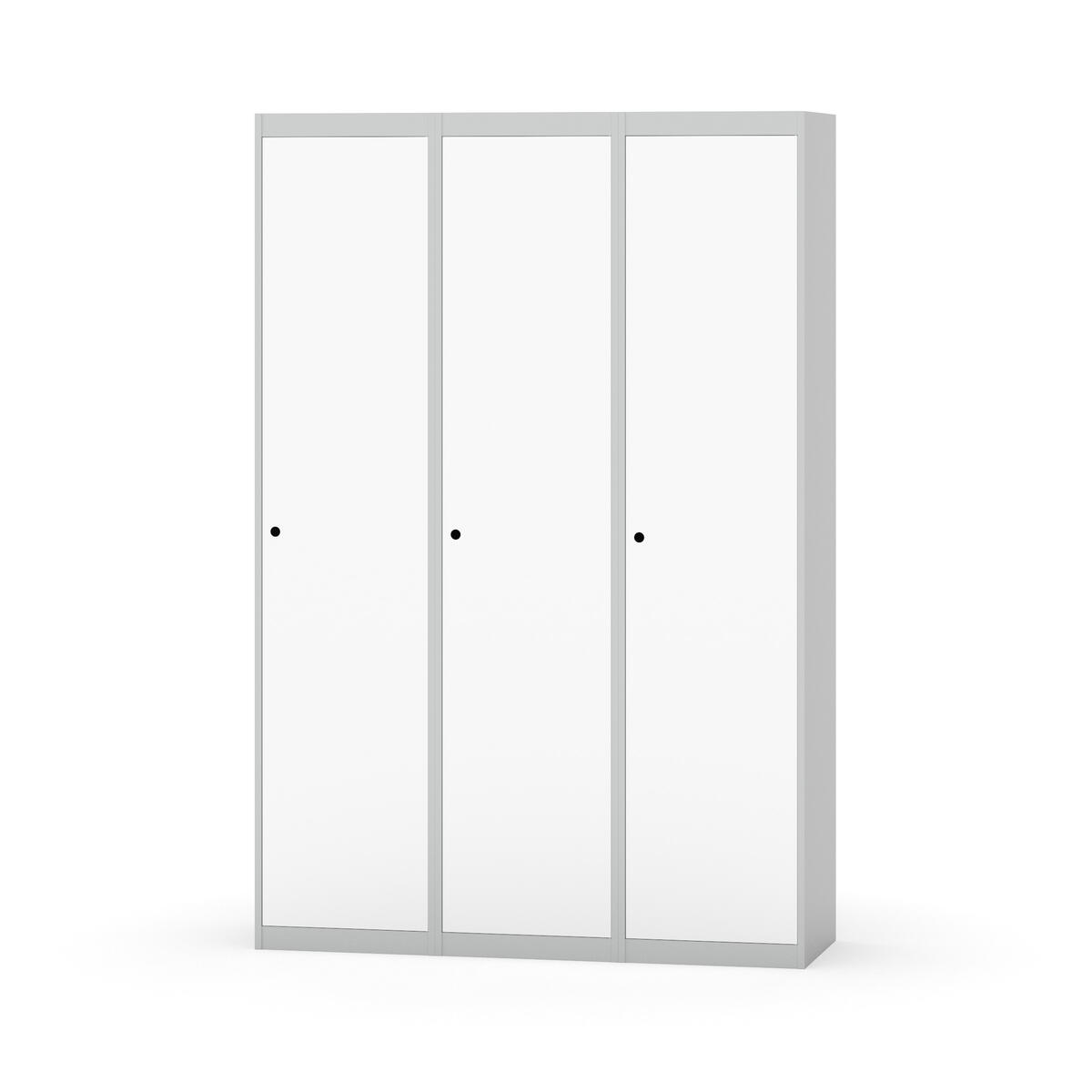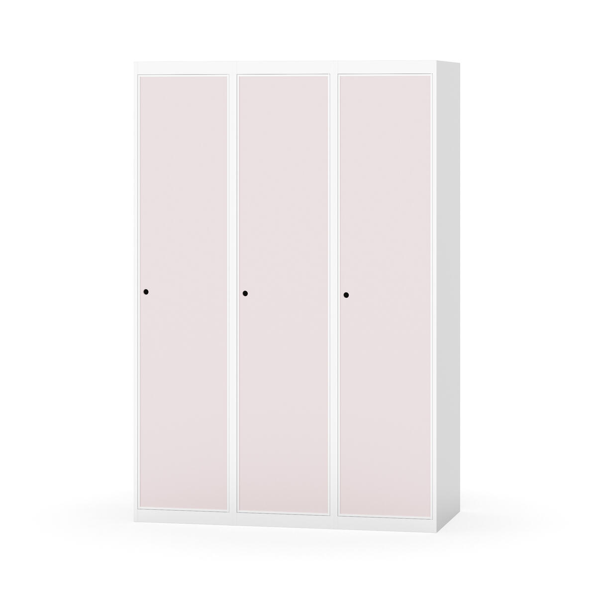 Klädskåp med helsvetsad stomme. Välj mellan plåt eller laminatdörr. Plåtdörren är försedd med dörrstopp i stål och infälld förstärkning kring låshålet. Laminatdörr infälld i stålram försedd med dörrstopp i stål. Dörrar är öppningsbara 90 grader. Inredning: Klädstång med ankarkrok. Slät golvyta utan tröskel. Ventilation genom hål i tak-/bottenplåt. Observera att lås och underrede beställs på separata artikelnummer. Lås kommer att vara monterade på skåp vid leverans. Valt underrede monteras på plats.