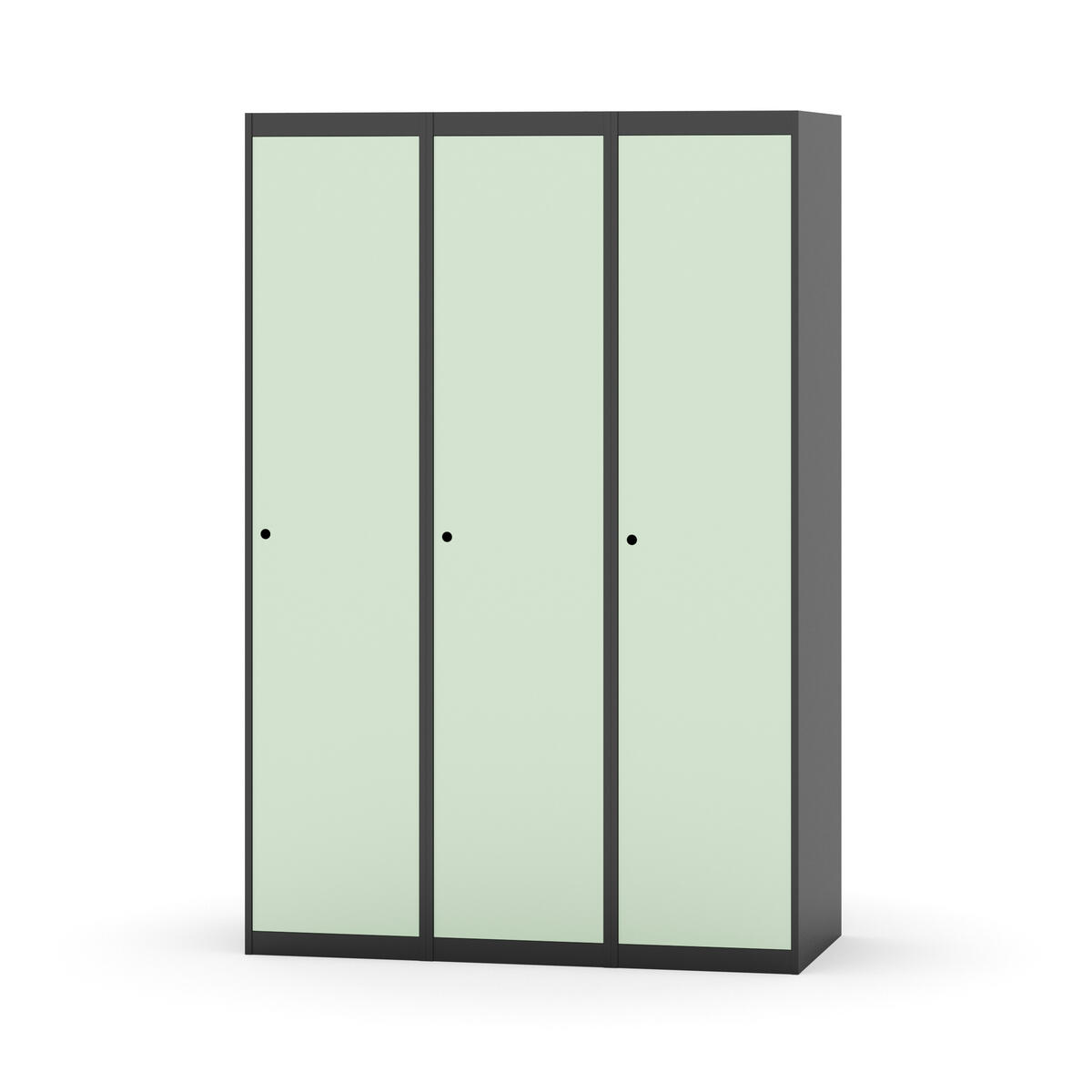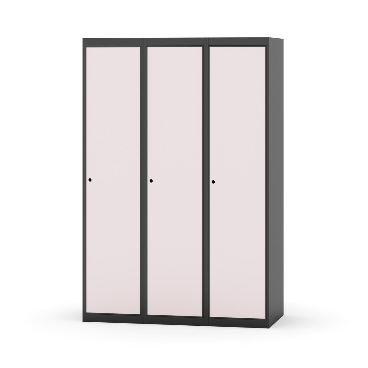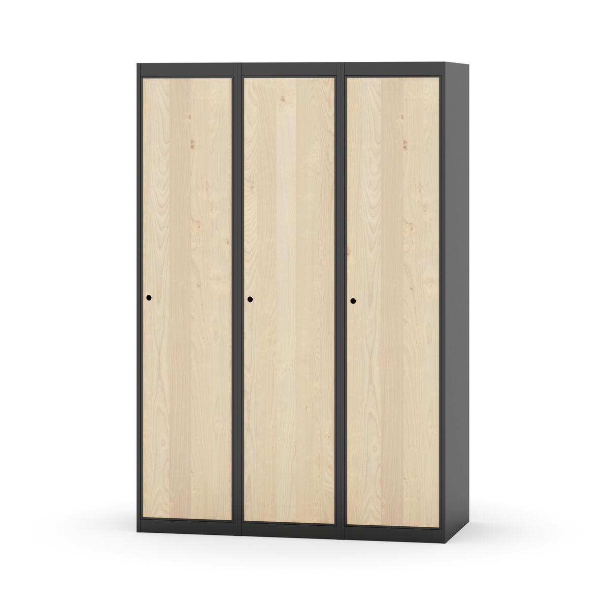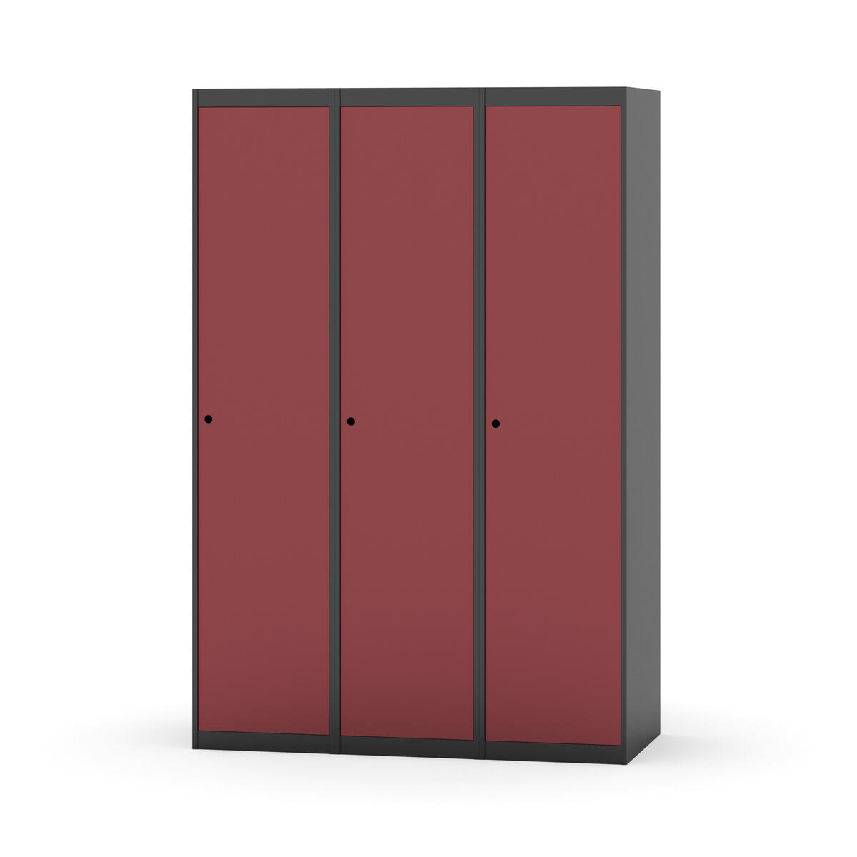 Klädskåp med helsvetsad stomme. Välj mellan plåt eller laminatdörr. Plåtdörren är försedd med dörrstopp i stål och infälld förstärkning kring låshålet. Laminatdörr infälld i stålram försedd med dörrstopp i stål. Dörrar är öppningsbara 90 grader. Inredning: Klädstång med ankarkrok. Slät golvyta utan tröskel. Ventilation genom hål i tak-/bottenplåt. Observera att lås och underrede beställs på separata artikelnummer. Lås kommer att vara monterade på skåp vid leverans. Valt underrede monteras på plats.