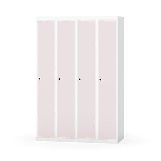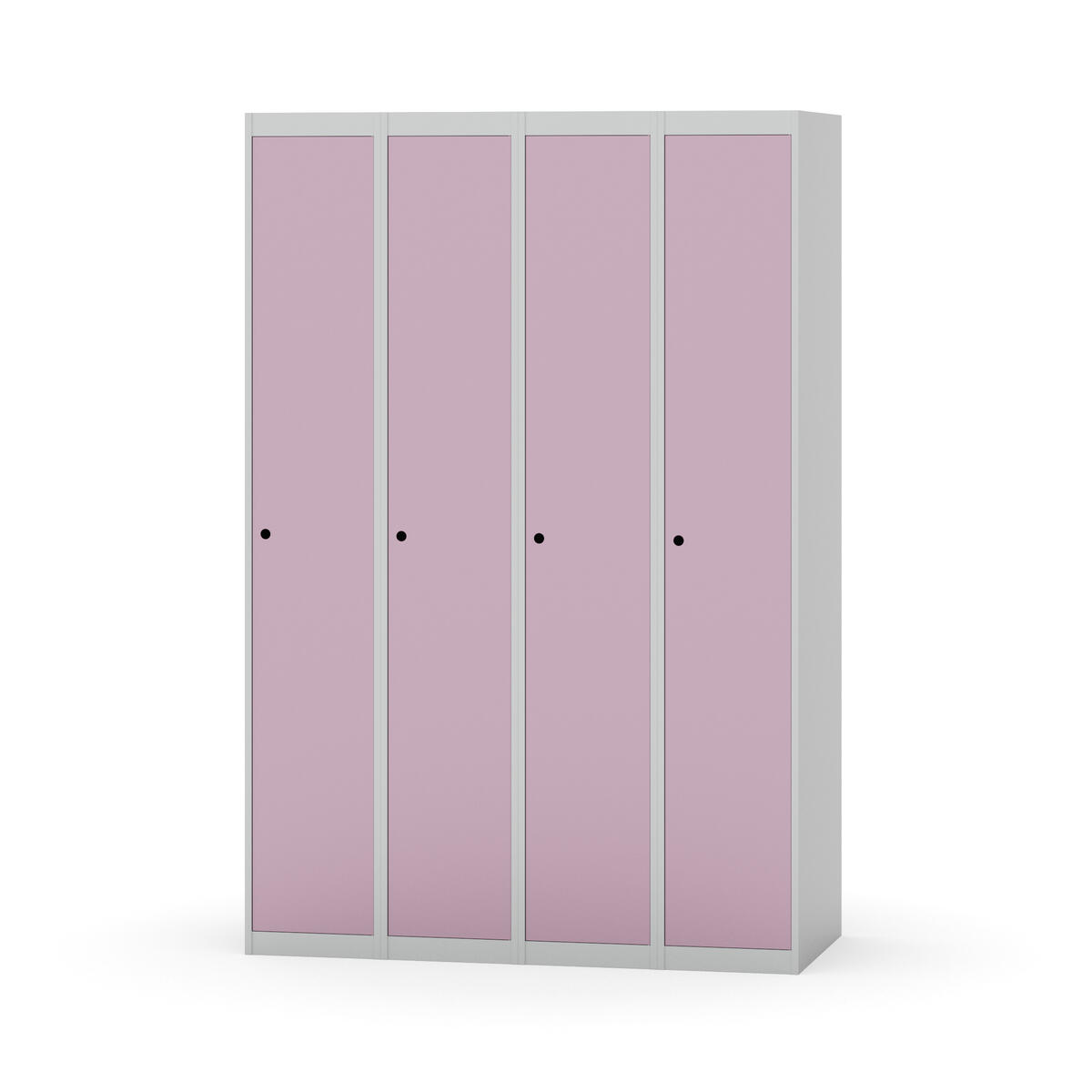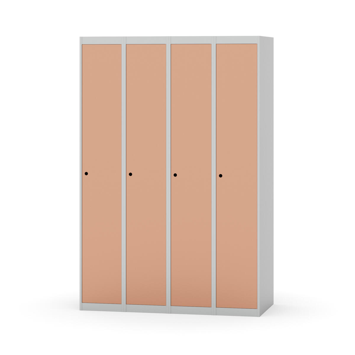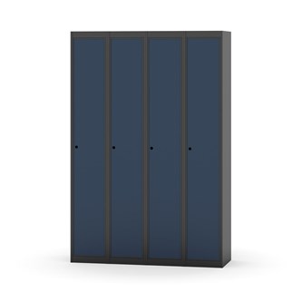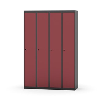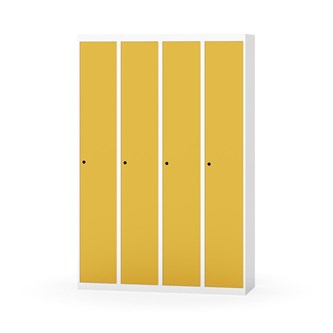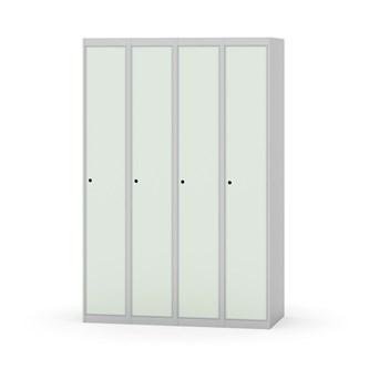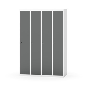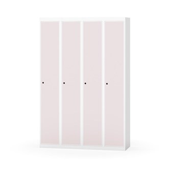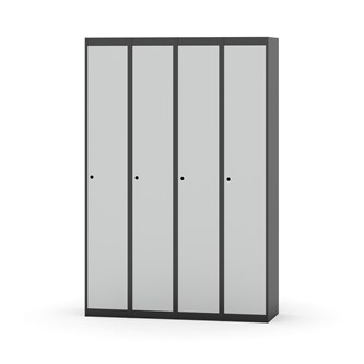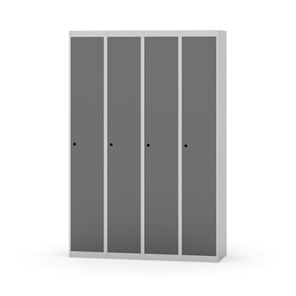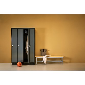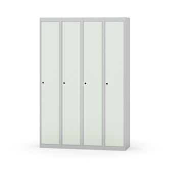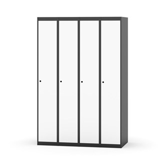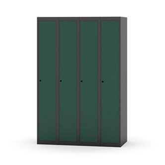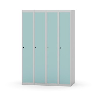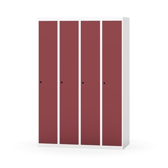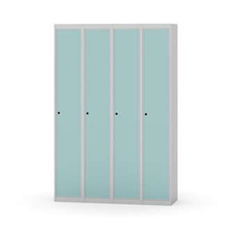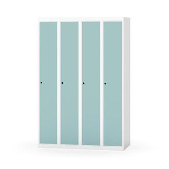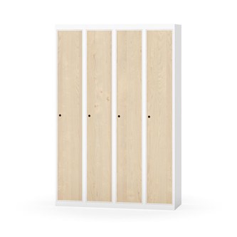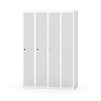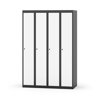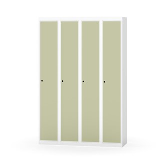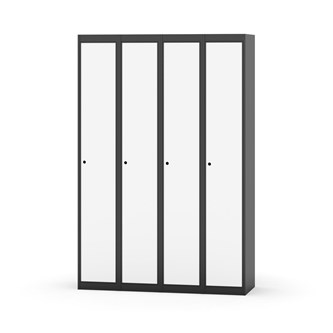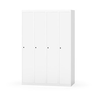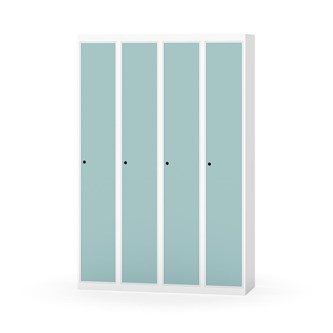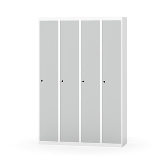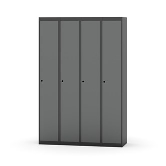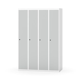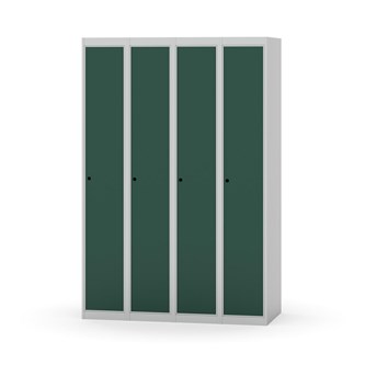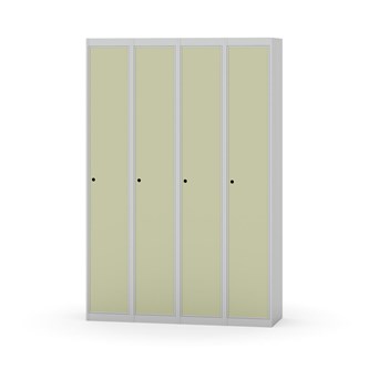 Klädskåp med helsvetsad stomme. Välj mellan plåt eller laminatdörr. Plåtdörren är försedd med dörrstopp i stål och infälld förstärkning kring låshålet. Laminatdörr infälld i stålram försedd med dörrstopp i stål. Dörrar är öppningsbara 90 grader. Inredning: Klädstång med ankarkrok. Slät golvyta utan tröskel. Ventilation genom hål i tak-/bottenplåt. Observera att lås och underrede beställs på separata artikelnummer. Lås kommer att vara monterade på skåp vid leverans. Valt underrede monteras på plats.