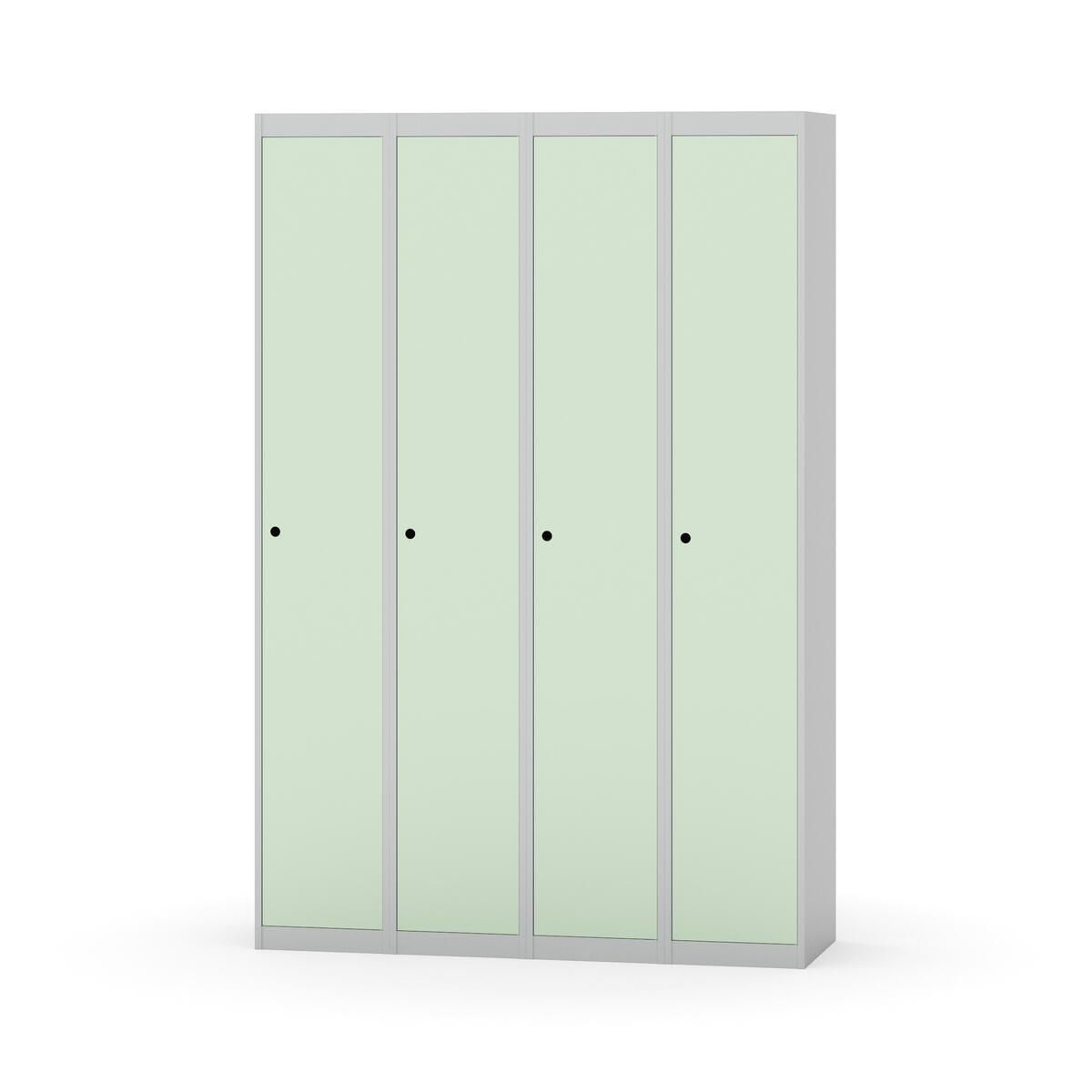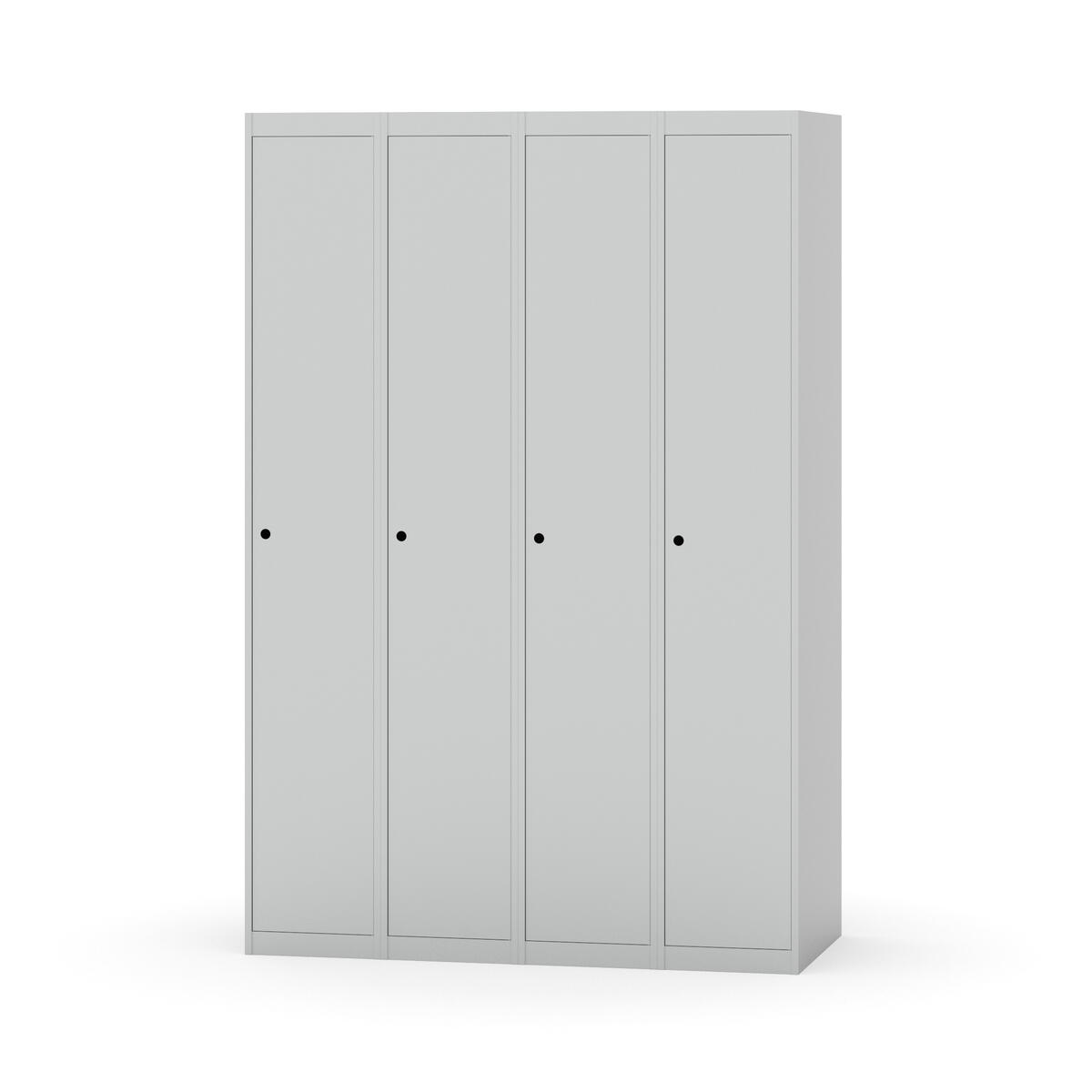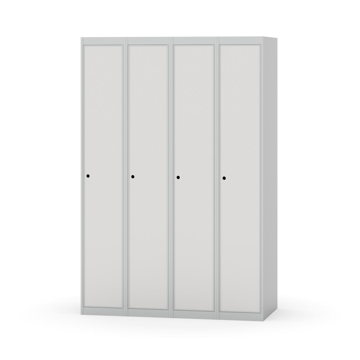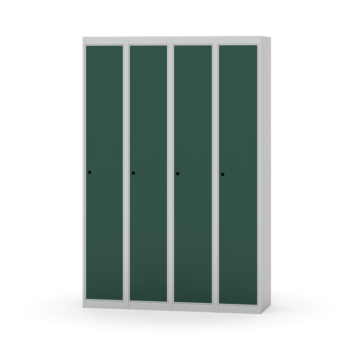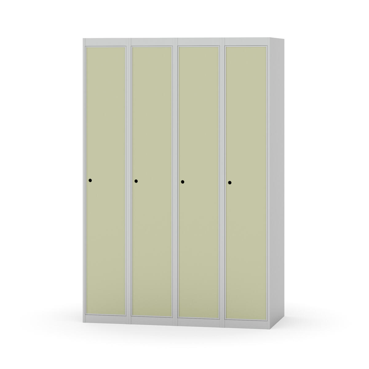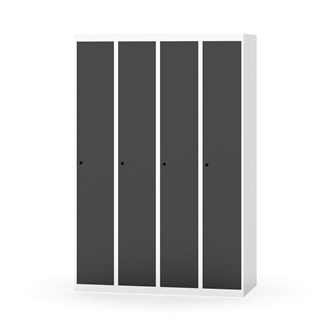 Klädskåp med helsvetsad stomme. Välj mellan plåt eller laminatdörr. Plåtdörren är försedd med dörrstopp i stål och infälld förstärkning kring låshålet. Laminatdörr infälld i stålram försedd med dörrstopp i stål. Dörrar är öppningsbara 90 grader. Inredning: Klädstång med ankarkrok. Slät golvyta utan tröskel. Ventilation genom hål i tak-/bottenplåt. Observera att lås och underrede beställs på separata artikelnummer. Lås kommer att vara monterade på skåp vid leverans. Valt underrede monteras på plats.