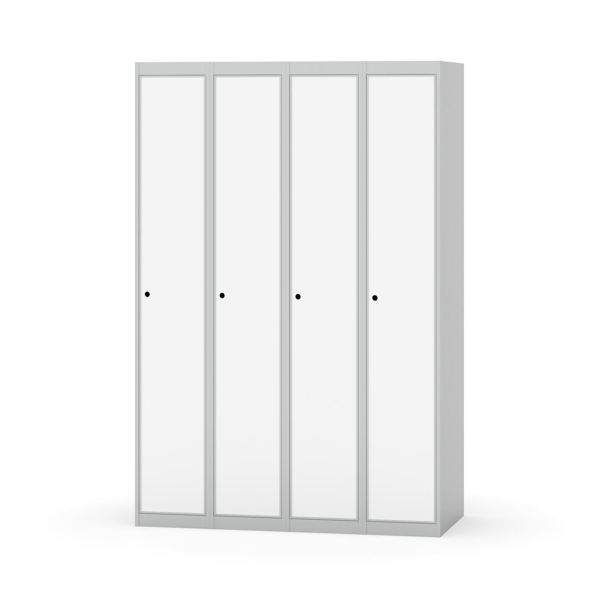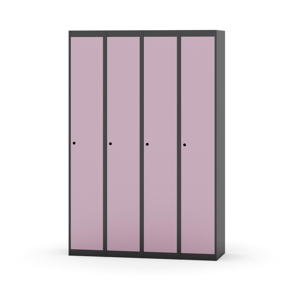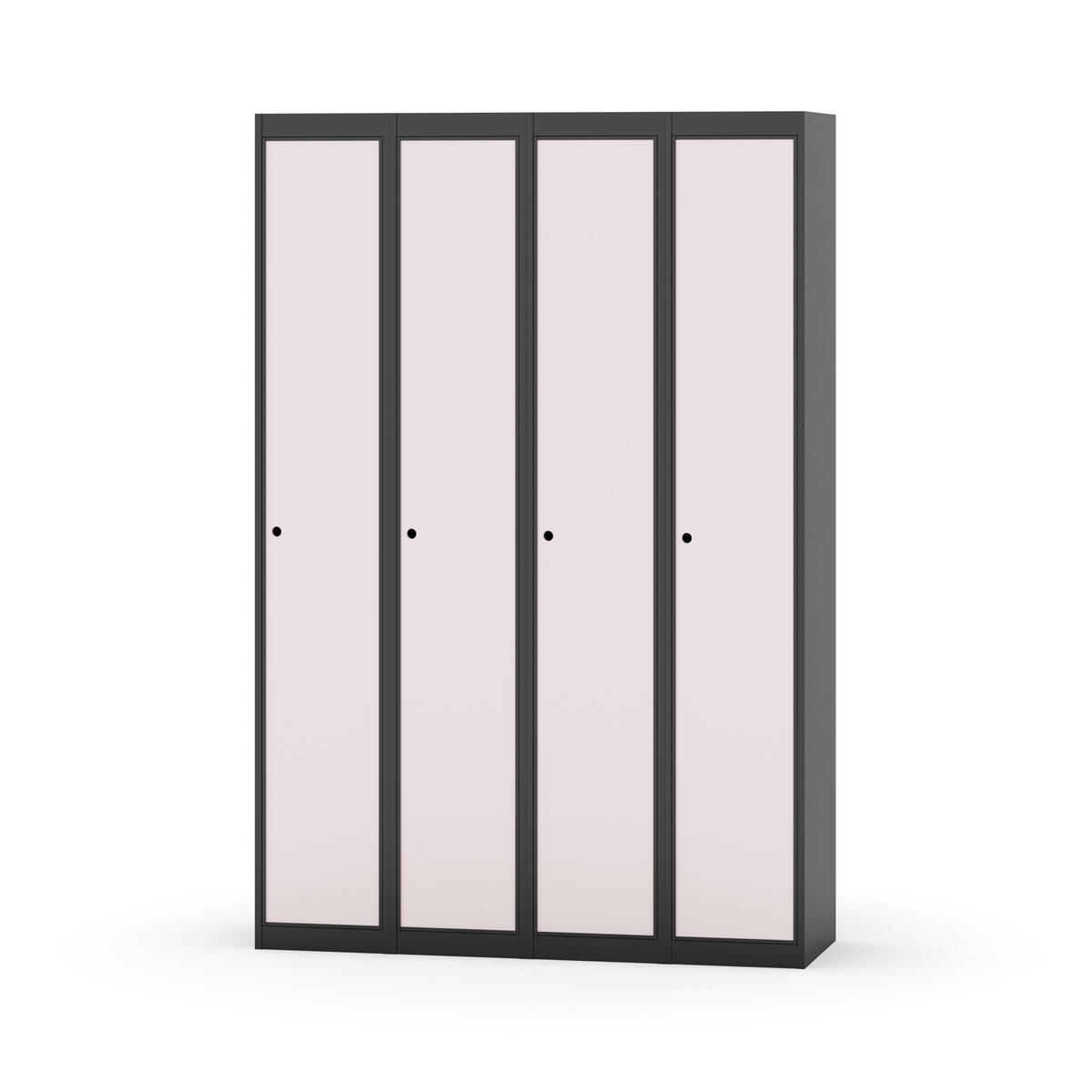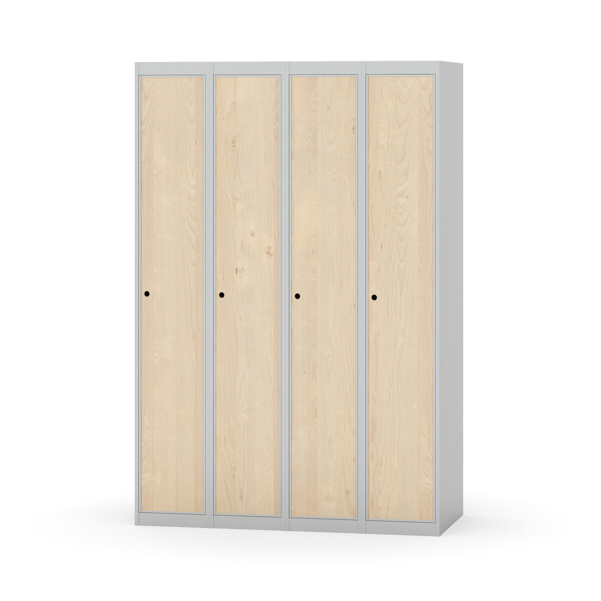 Klädskåp med helsvetsad stomme. Välj mellan plåt eller laminatdörr. Plåtdörren är försedd med dörrstopp i stål och infälld förstärkning kring låshålet. Laminatdörr infälld i stålram försedd med dörrstopp i stål. Dörrar är öppningsbara 90 grader. Inredning: Klädstång med ankarkrok. Slät golvyta utan tröskel. Ventilation genom hål i tak-/bottenplåt. Observera att lås och underrede beställs på separata artikelnummer. Lås kommer att vara monterade på skåp vid leverans. Valt underrede monteras på plats.
