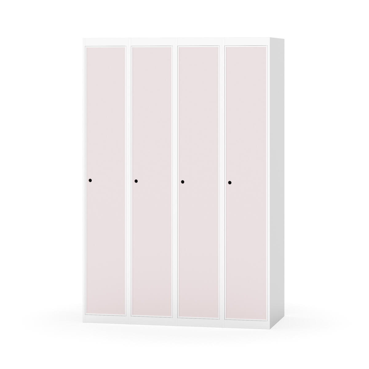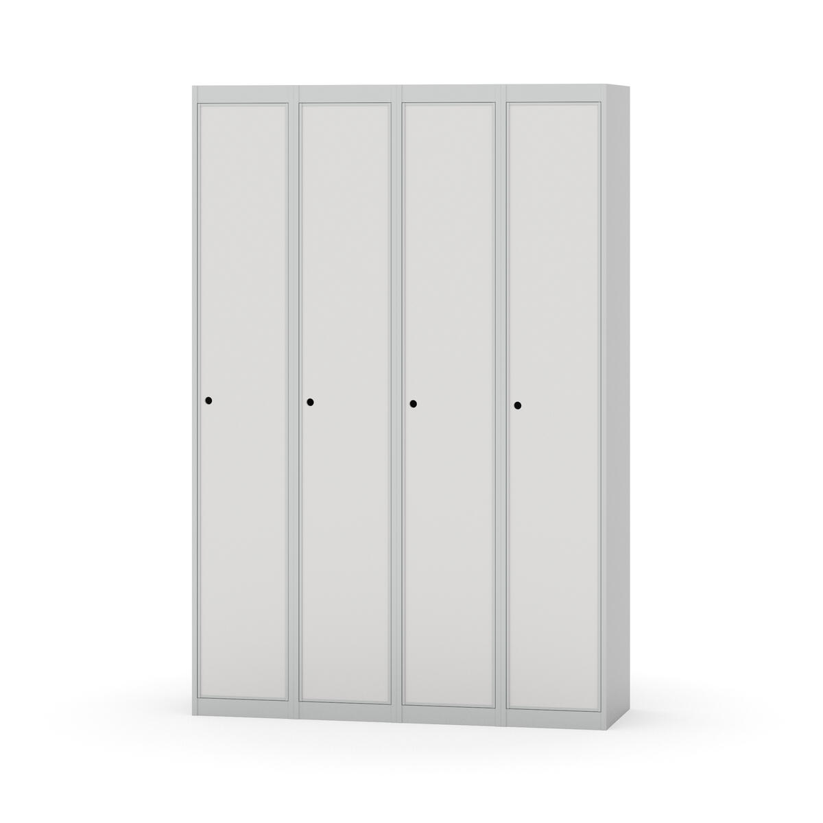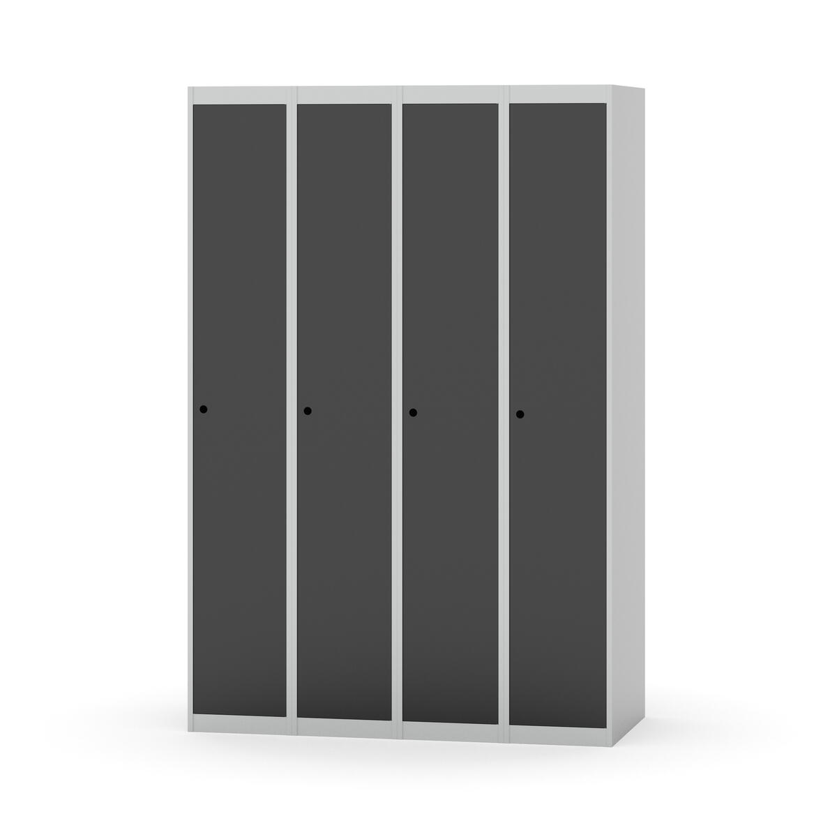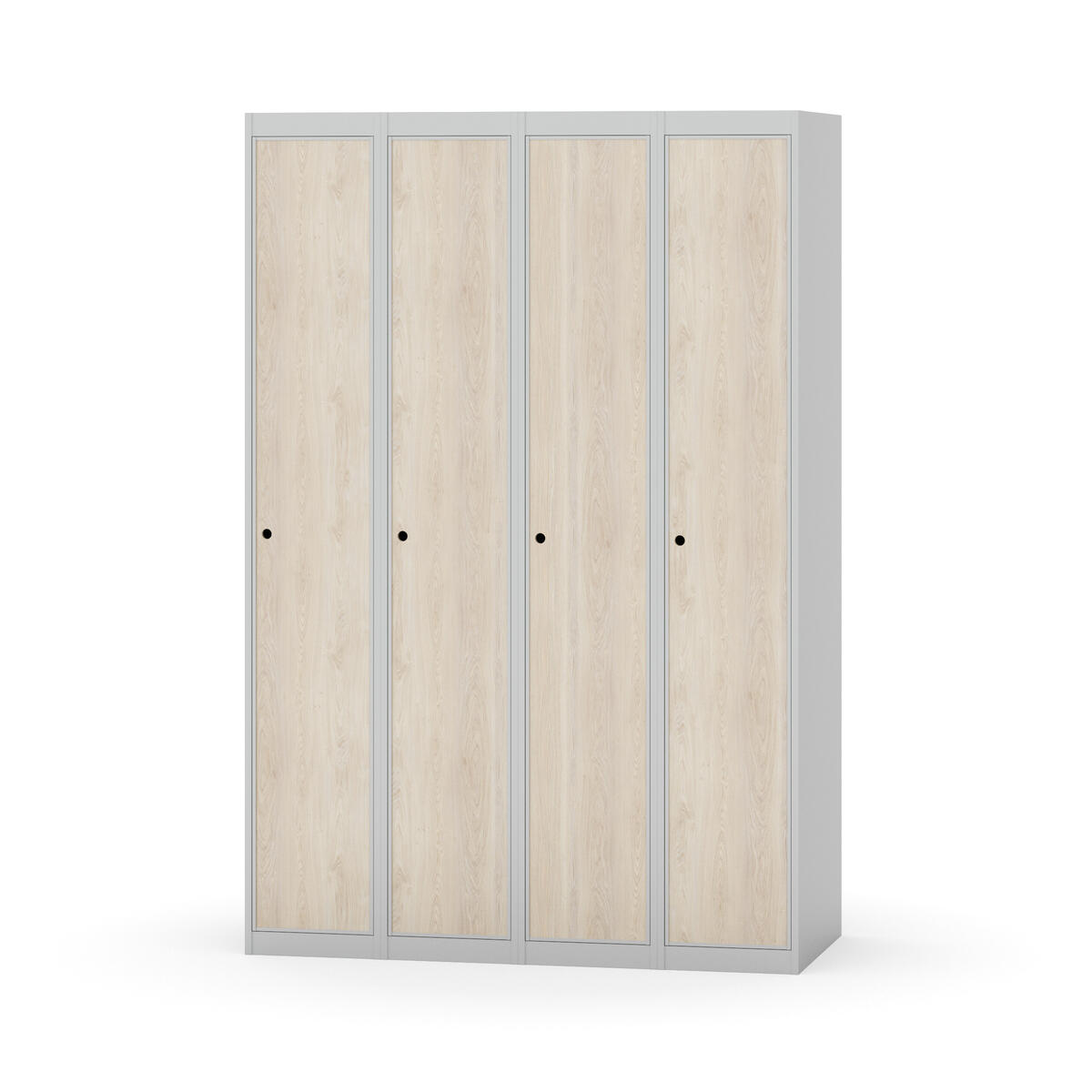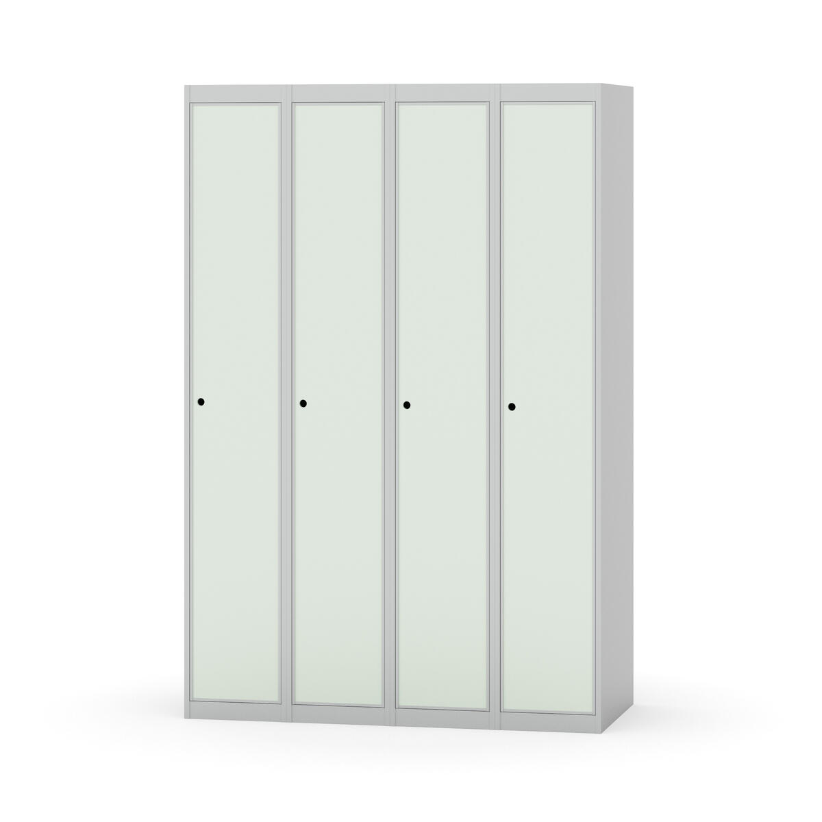 Klädskåp med helsvetsad stomme. Välj mellan plåt eller laminatdörr. Plåtdörren är försedd med dörrstopp i stål och infälld förstärkning kring låshålet. Laminatdörr infälld i stålram försedd med dörrstopp i stål. Dörrar är öppningsbara 90 grader. Inredning: Klädstång med ankarkrok. Slät golvyta utan tröskel. Ventilation genom hål i tak-/bottenplåt. Observera att lås och underrede beställs på separata artikelnummer. Lås kommer att vara monterade på skåp vid leverans. Valt underrede monteras på plats.