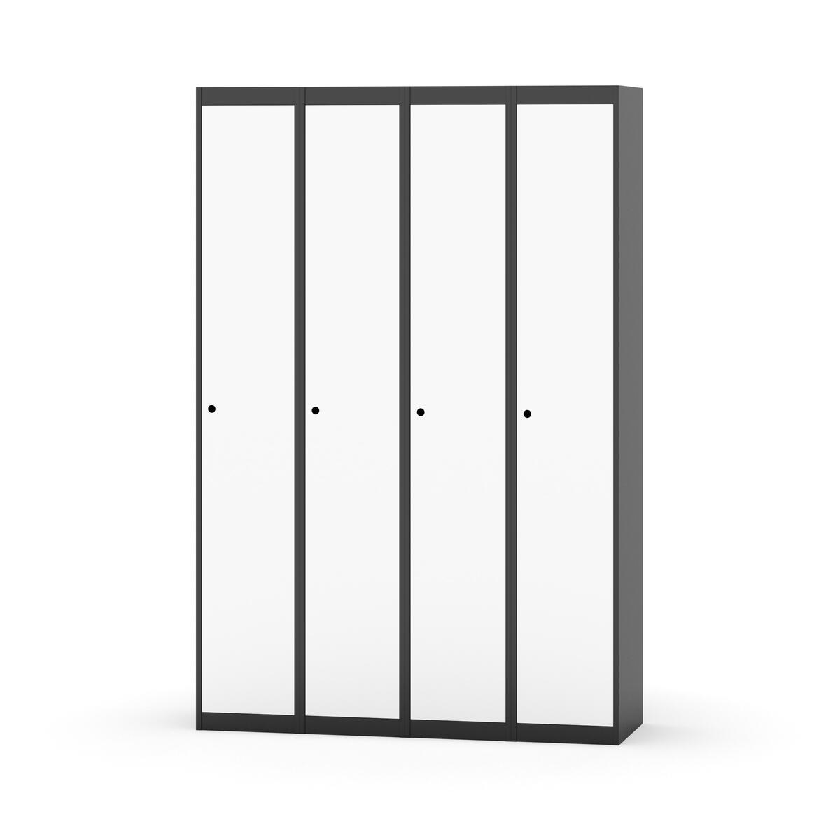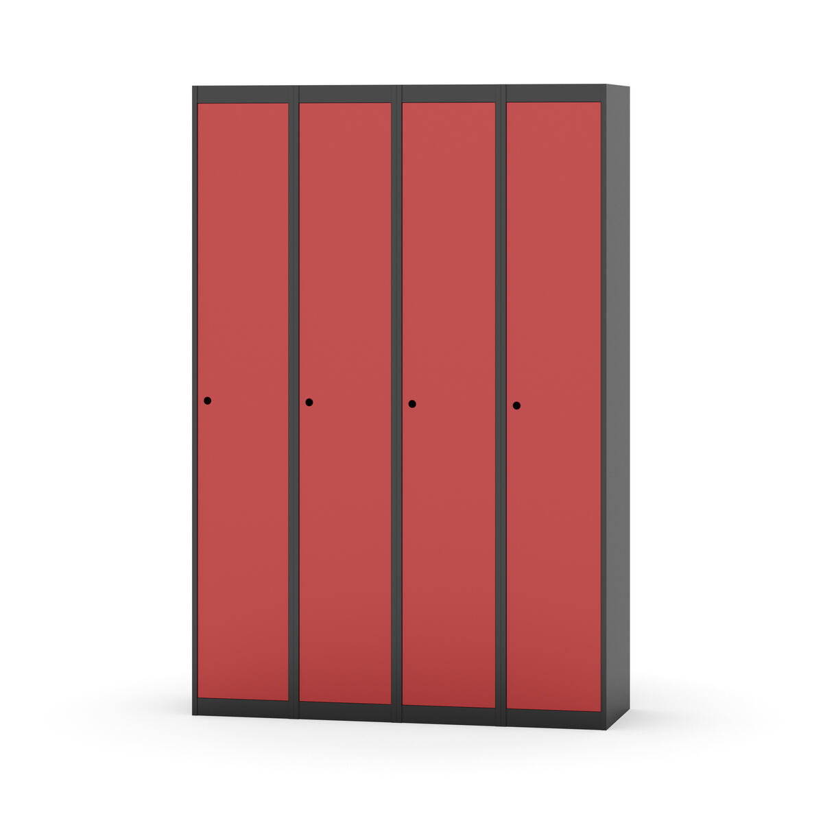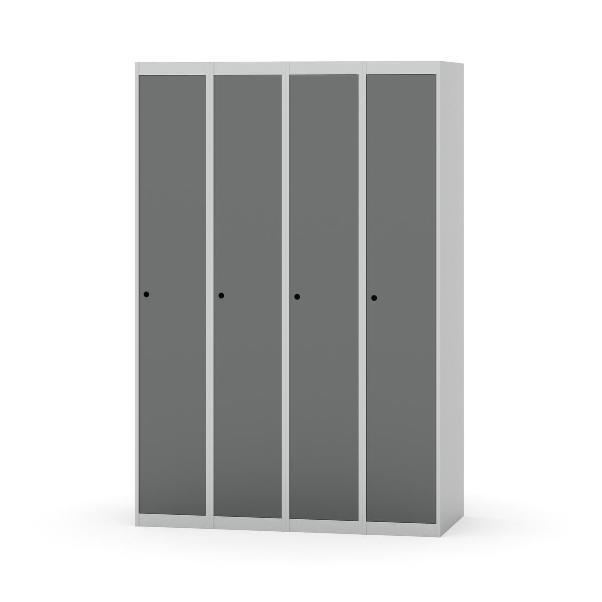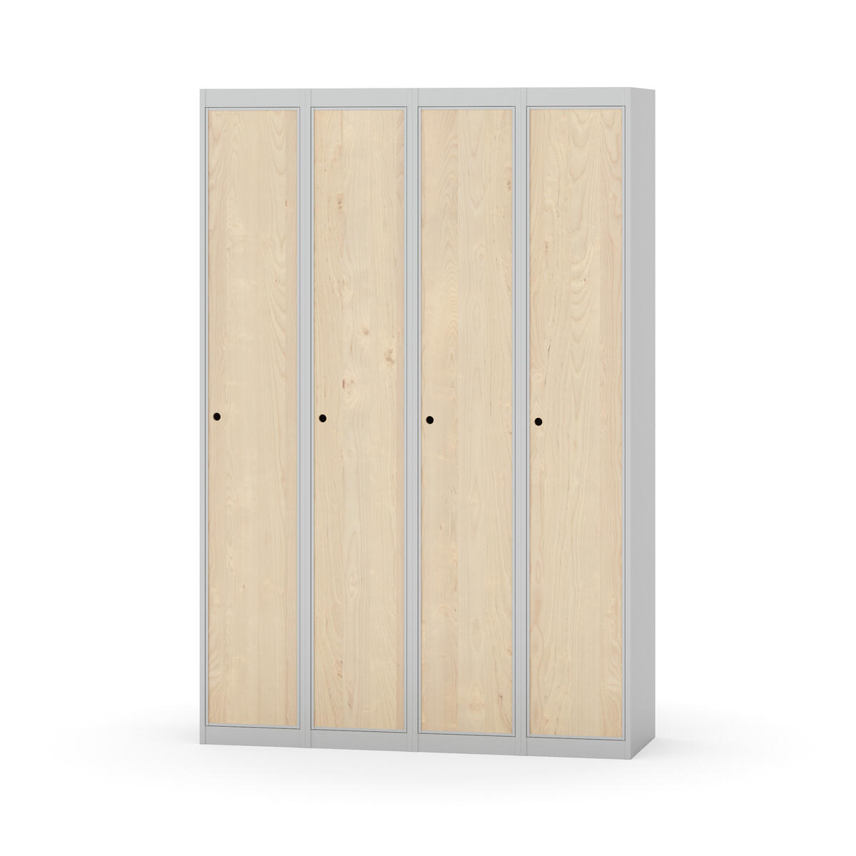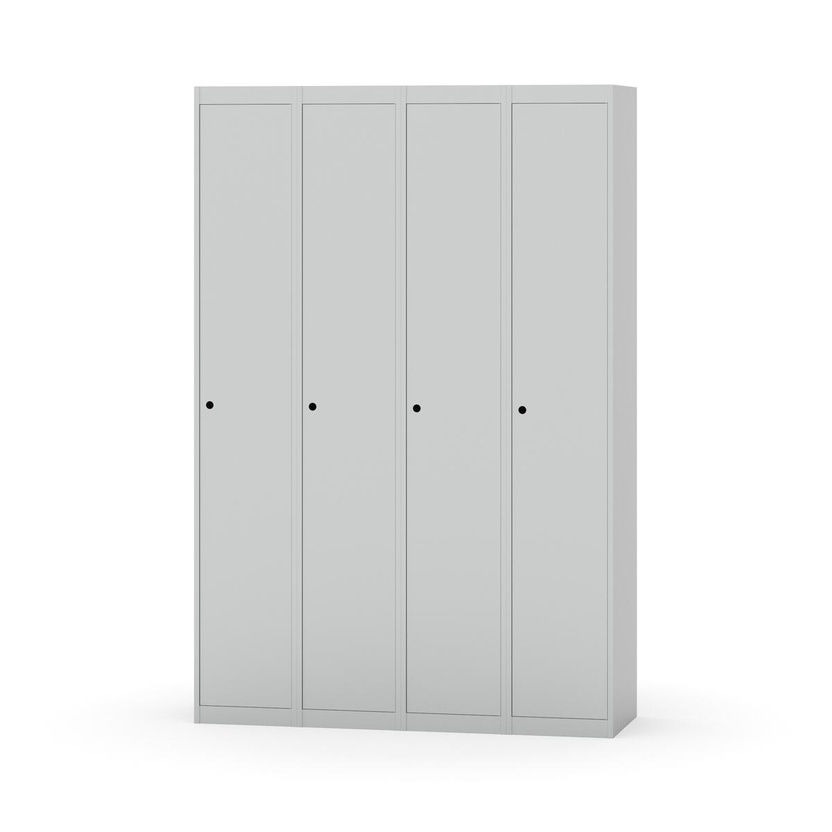 Klädskåp med helsvetsad stomme. Välj mellan plåt eller laminatdörr. Plåtdörren är försedd med dörrstopp i stål och infälld förstärkning kring låshålet. Laminatdörr infälld i stålram försedd med dörrstopp i stål. Dörrar är öppningsbara 90 grader. Inredning: Klädstång med ankarkrok. Slät golvyta utan tröskel. Ventilation genom hål i tak-/bottenplåt. Observera att lås och underrede beställs på separata artikelnummer. Lås kommer att vara monterade på skåp vid leverans. Valt underrede monteras på plats.