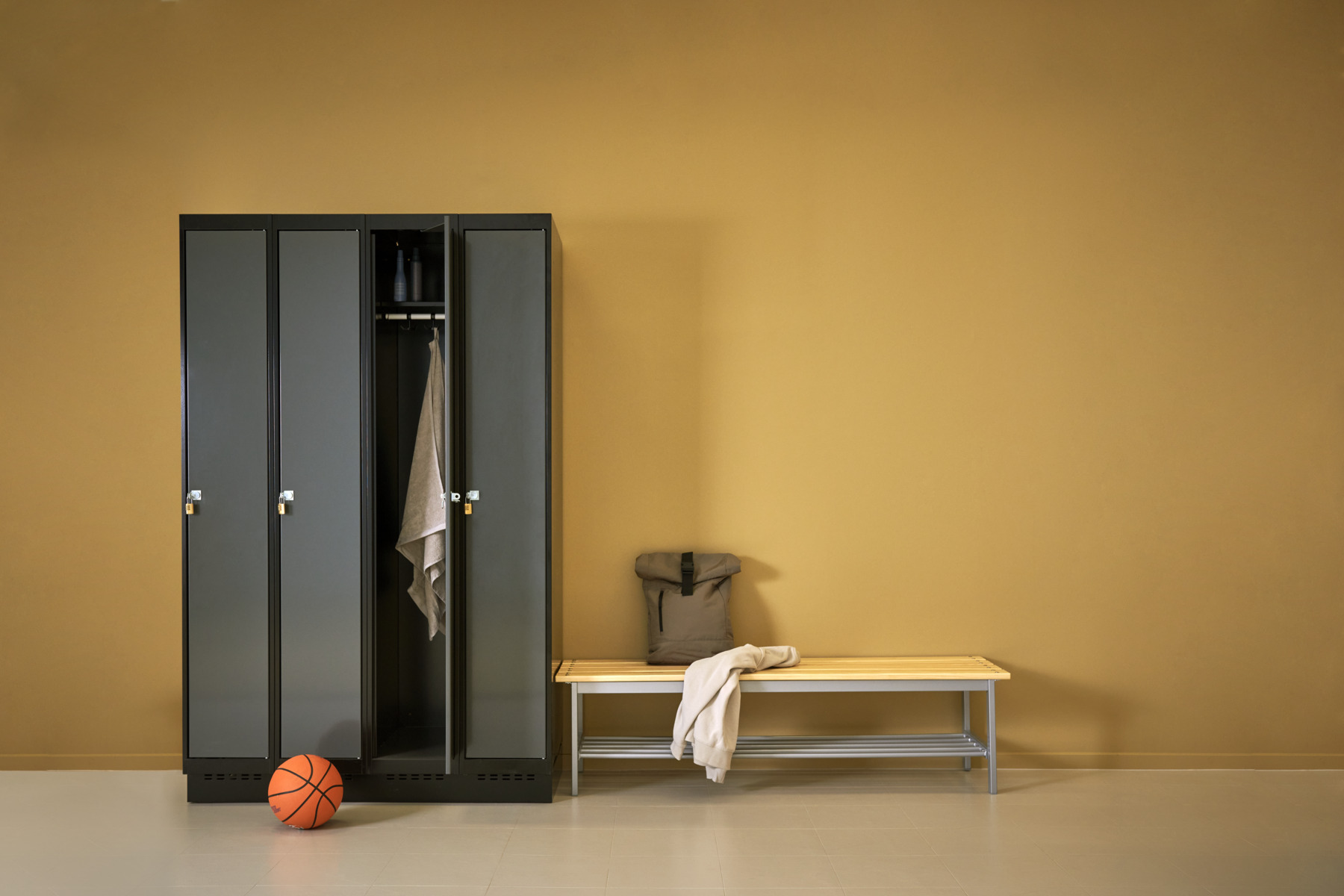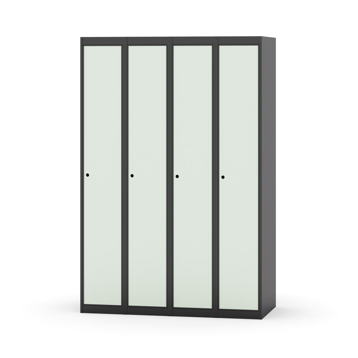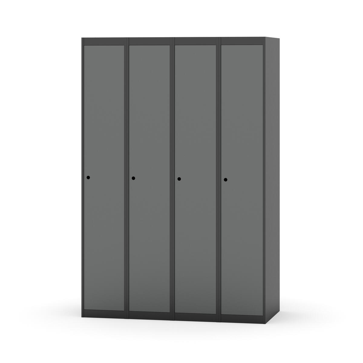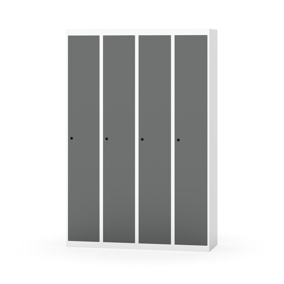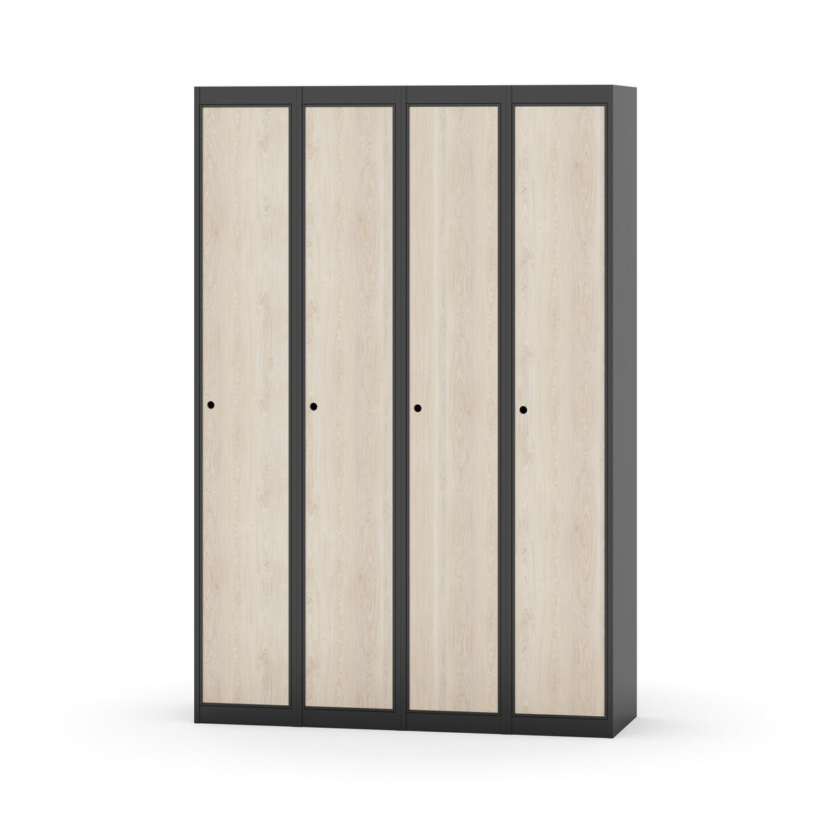 Klädskåp med helsvetsad stomme. Välj mellan plåt eller laminatdörr. Plåtdörren är försedd med dörrstopp i stål och infälld förstärkning kring låshålet. Laminatdörr infälld i stålram försedd med dörrstopp i stål. Dörrar är öppningsbara 90 grader. Inredning: Klädstång med ankarkrok. Slät golvyta utan tröskel. Ventilation genom hål i tak-/bottenplåt. Observera att lås och underrede beställs på separata artikelnummer. Lås kommer att vara monterade på skåp vid leverans. Valt underrede monteras på plats.