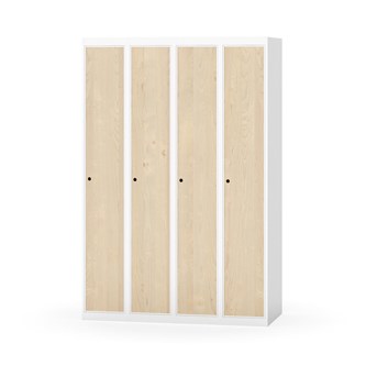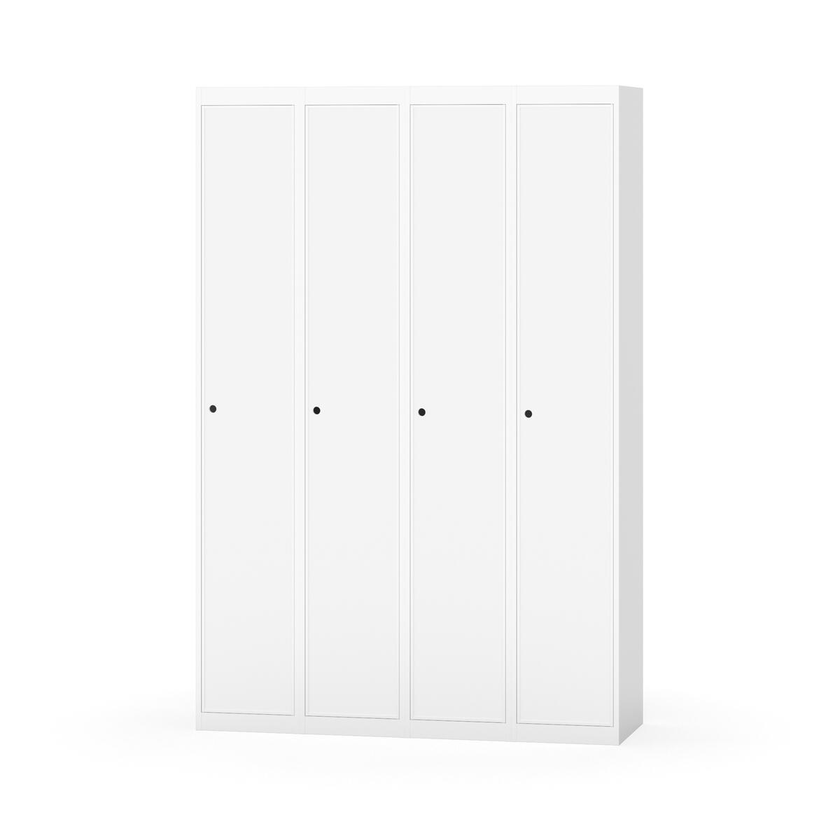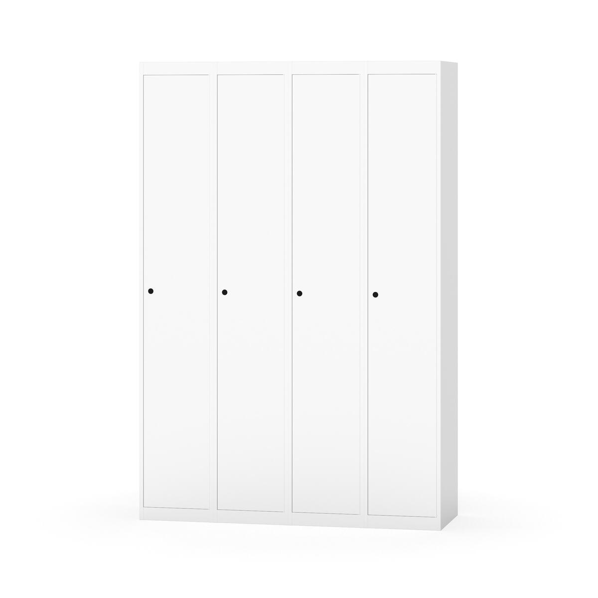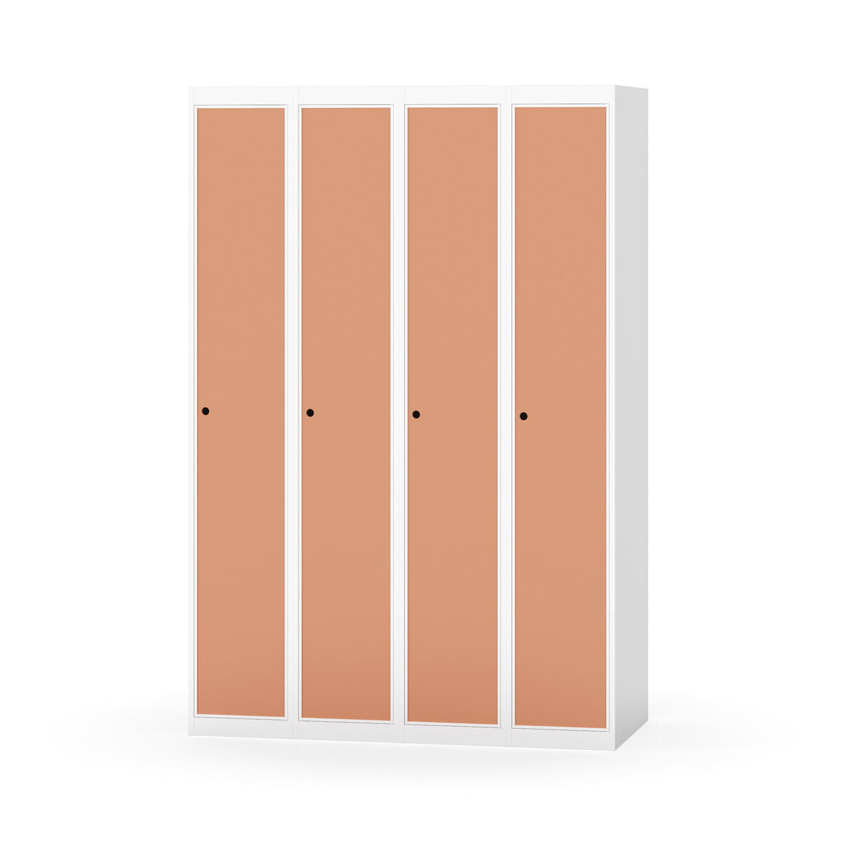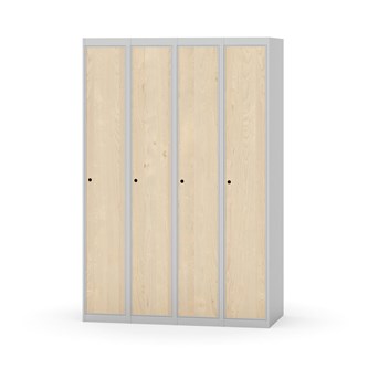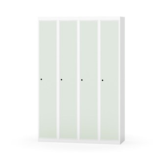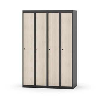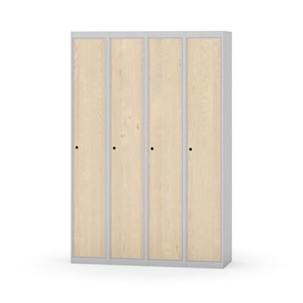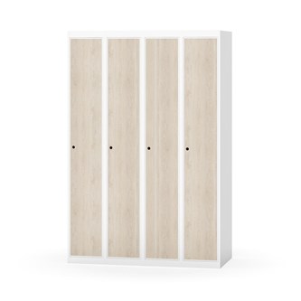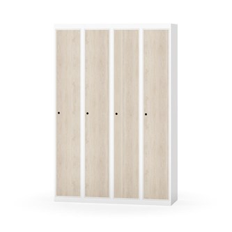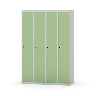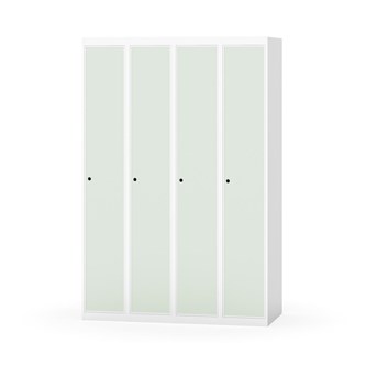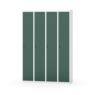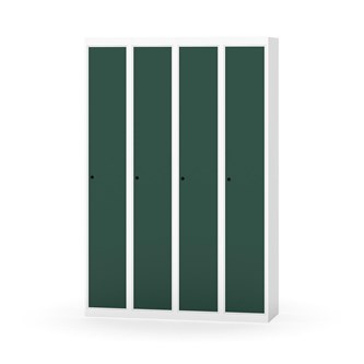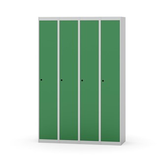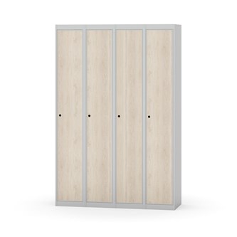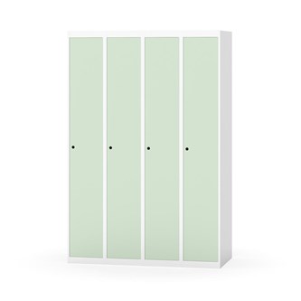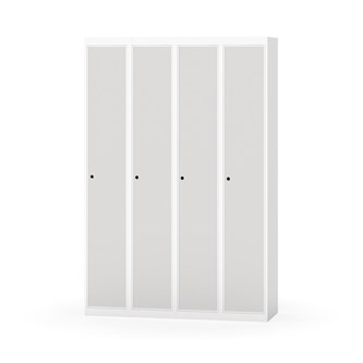 Klädskåp med helsvetsad stomme. Välj mellan plåt eller laminatdörr. Plåtdörren är försedd med dörrstopp i stål och infälld förstärkning kring låshålet. Laminatdörr infälld i stålram försedd med dörrstopp i stål. Dörrar är öppningsbara 90 grader. Inredning: Hyllplan och klädstång med två ankarkrokar. Slät golvyta utan tröskel. Ventilation genom hål i tak-/bottenplåt. Observera att lås och underrede beställs på separata artikelnummer. Lås kommer att vara monterade på skåp vid leverans. Valt underrede monteras på plats.