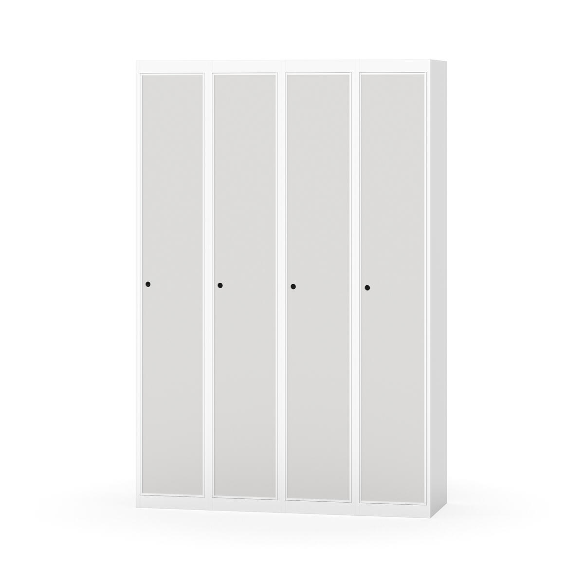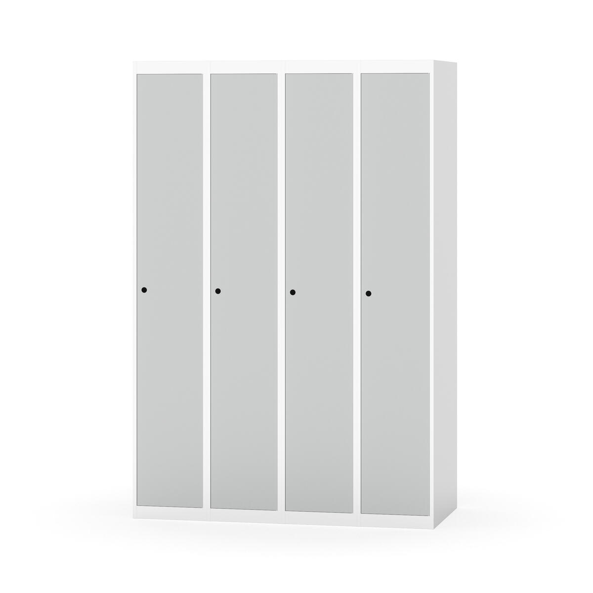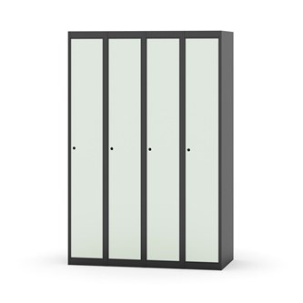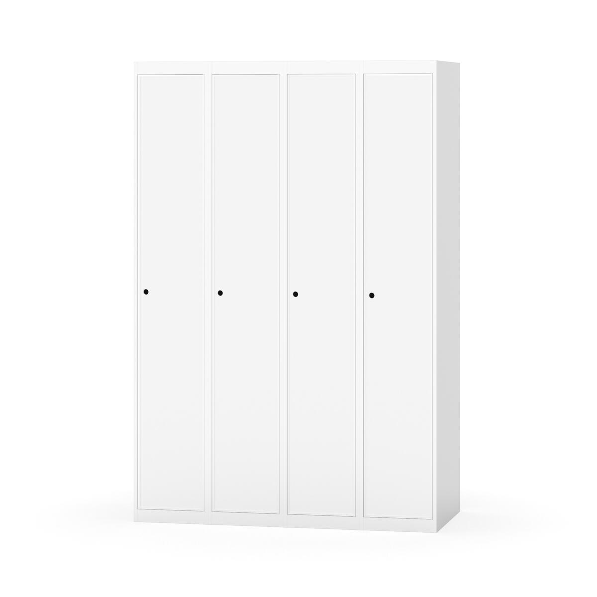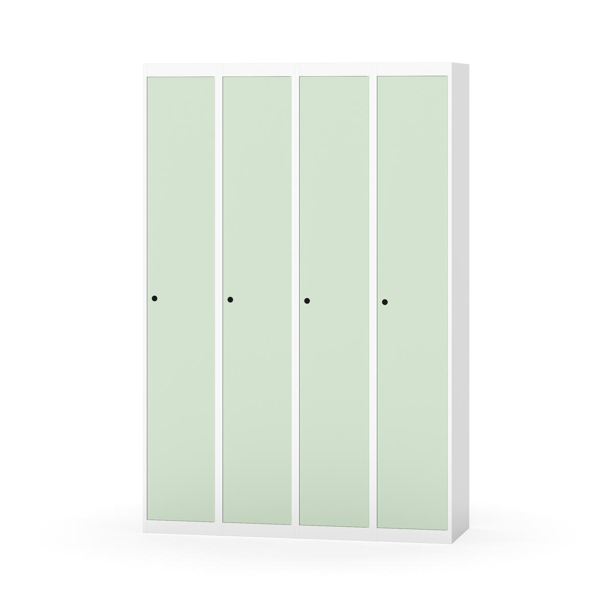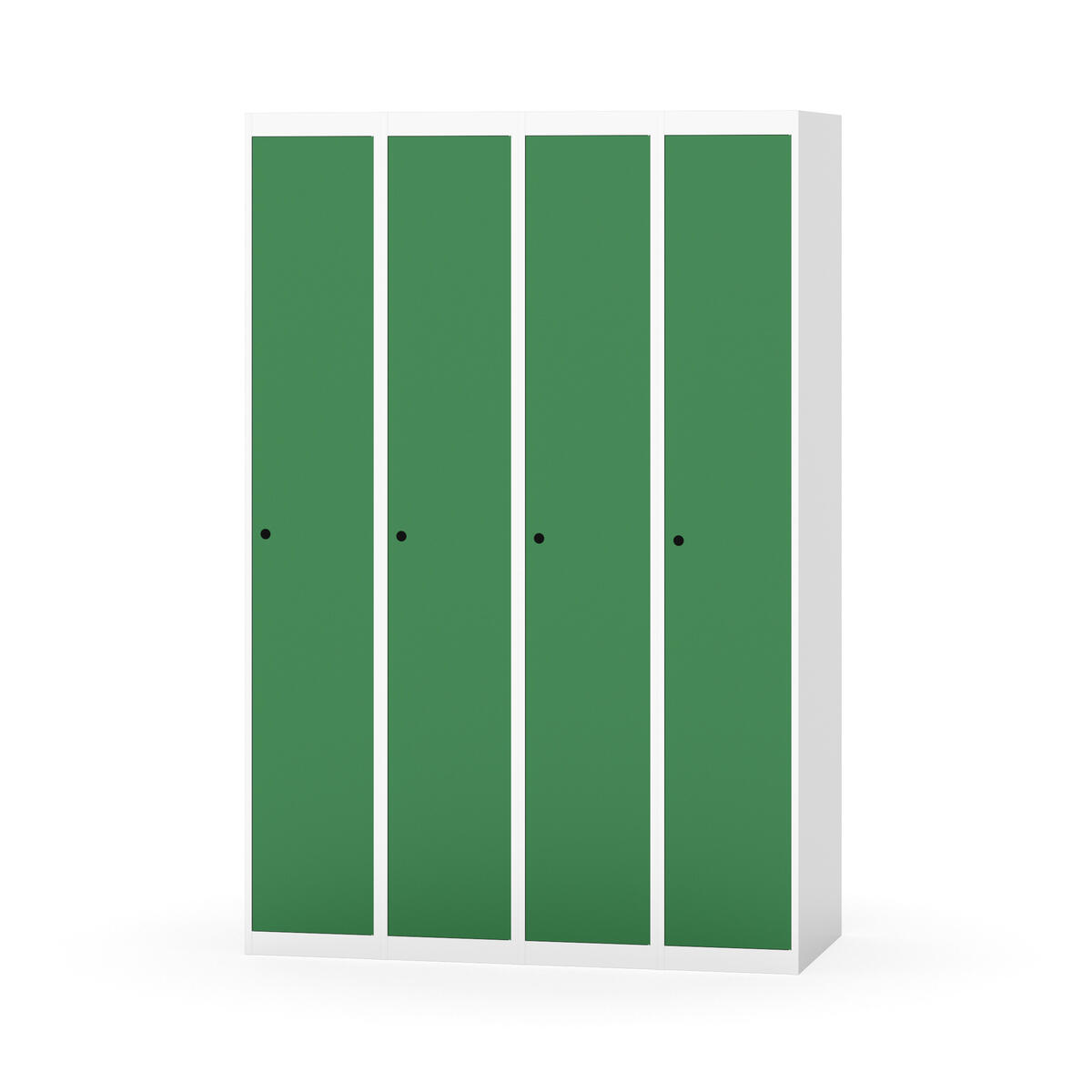 Klädskåp med helsvetsad stomme. Välj mellan plåt eller laminatdörr. Plåtdörren är försedd med dörrstopp i stål och infälld förstärkning kring låshålet. Laminatdörr infälld i stålram försedd med dörrstopp i stål. Dörrar är öppningsbara 90 grader. Inredning: Hyllplan och klädstång med två ankarkrokar. Slät golvyta utan tröskel. Ventilation genom hål i tak-/bottenplåt. Observera att lås och underrede beställs på separata artikelnummer. Lås kommer att vara monterade på skåp vid leverans. Valt underrede monteras på plats.