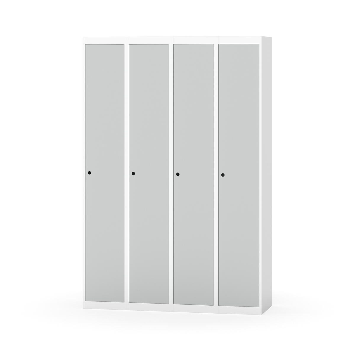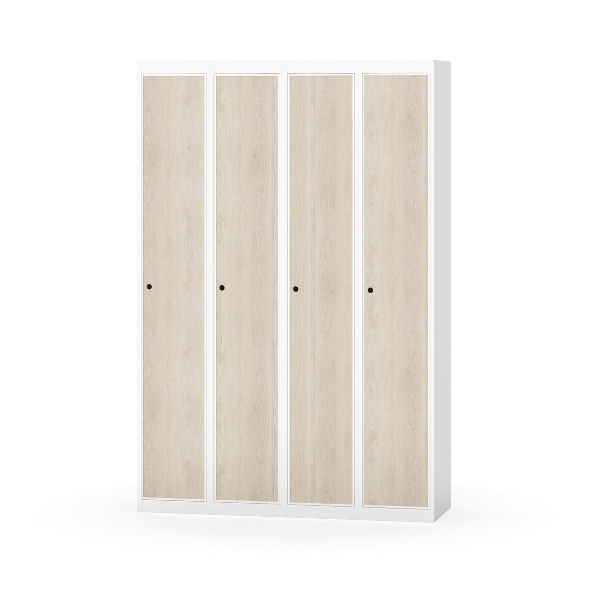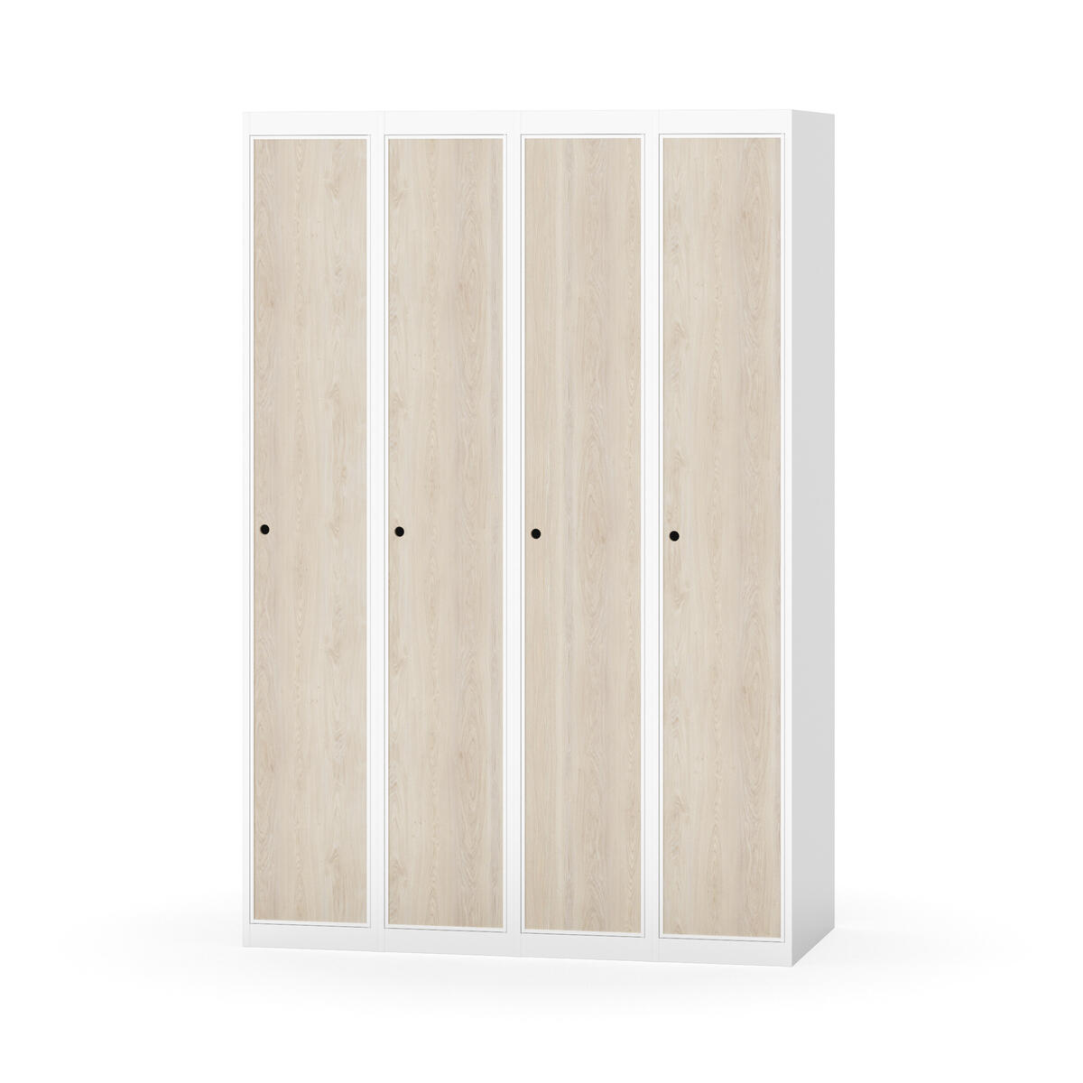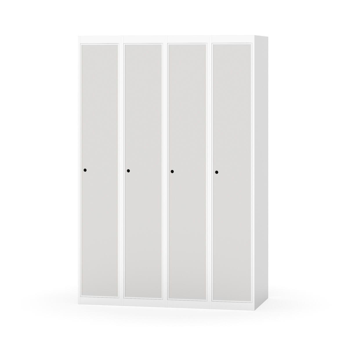 Klädskåp med helsvetsad stomme. Välj mellan plåt eller laminatdörr. Plåtdörren är försedd med dörrstopp i stål och infälld förstärkning kring låshålet. Laminatdörr infälld i stålram försedd med dörrstopp i stål. Dörrar är öppningsbara 90 grader. Inredning: Hyllplan och klädstång med två ankarkrokar. Slät golvyta utan tröskel. Ventilation genom hål i tak-/bottenplåt. Observera att lås och underrede beställs på separata artikelnummer. Lås kommer att vara monterade på skåp vid leverans. Valt underrede monteras på plats.